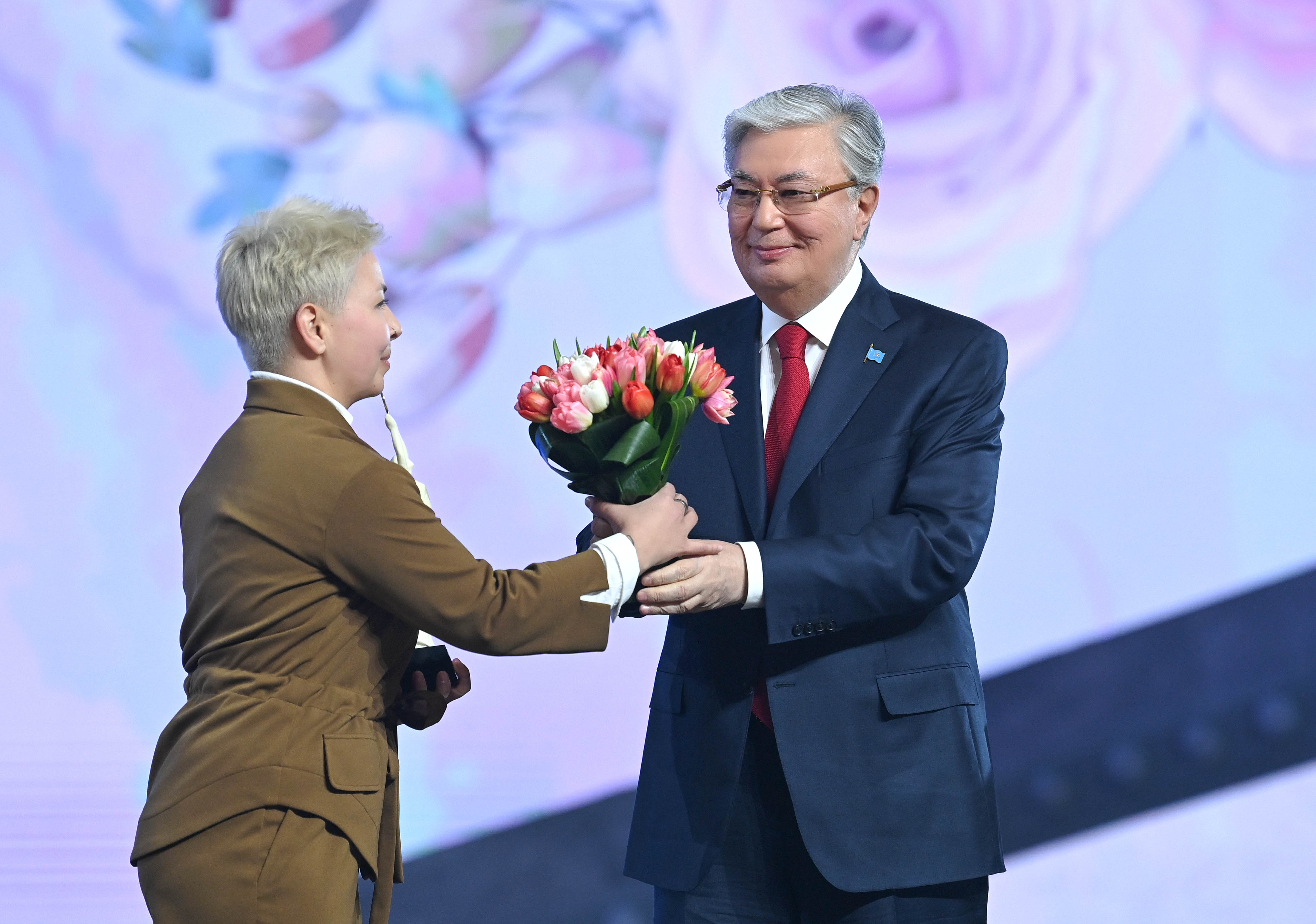 Президент салтанатты жиынға қатысқан әйелдер қауымын мерекемен құттықтап, сөз сөйледі.
