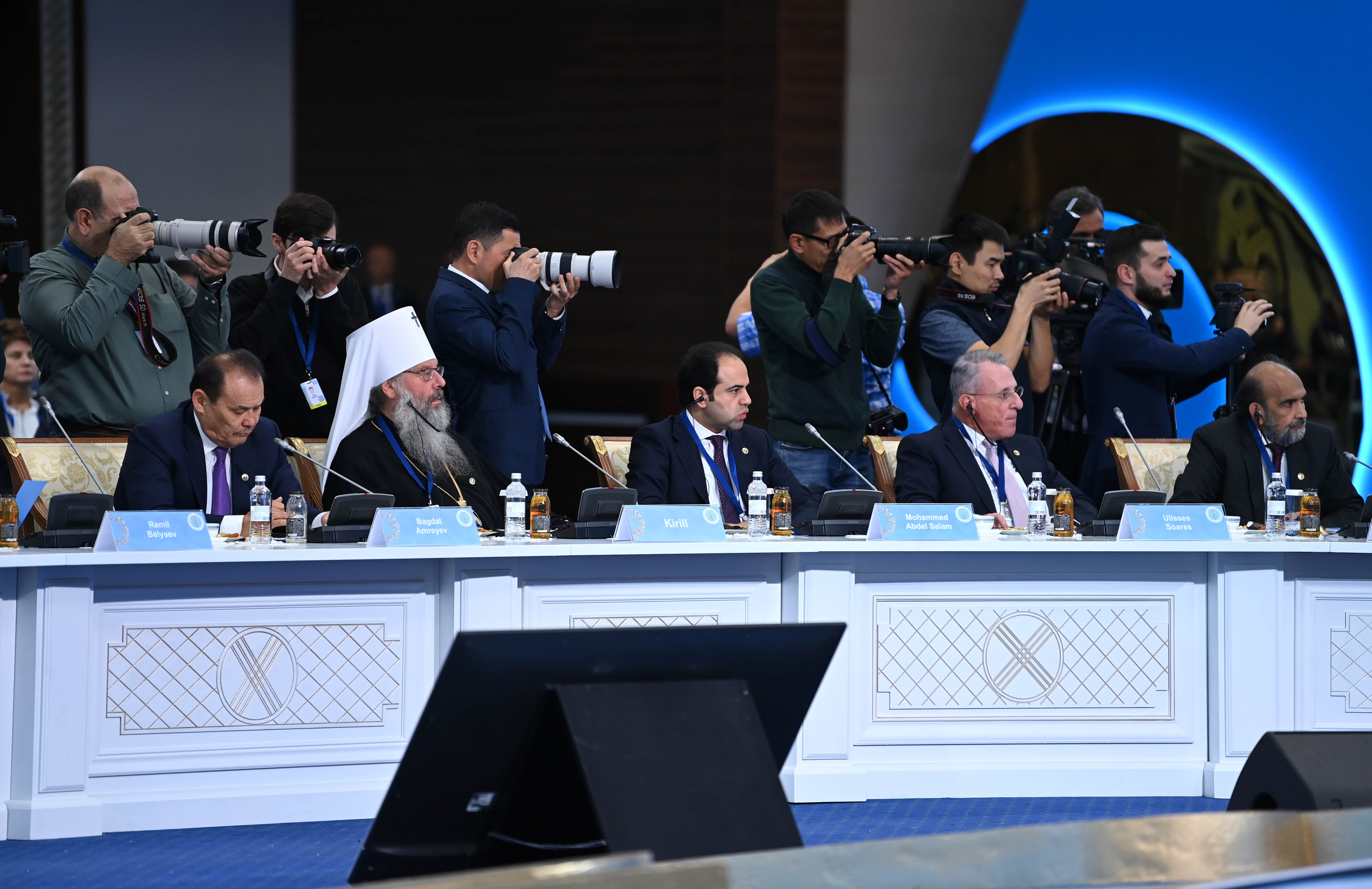 Әлемдік және дәстүрлі діндер көшбасшыларының VII съезі дұға жасау үшін бір минуттық үнсіздіктен басталды.