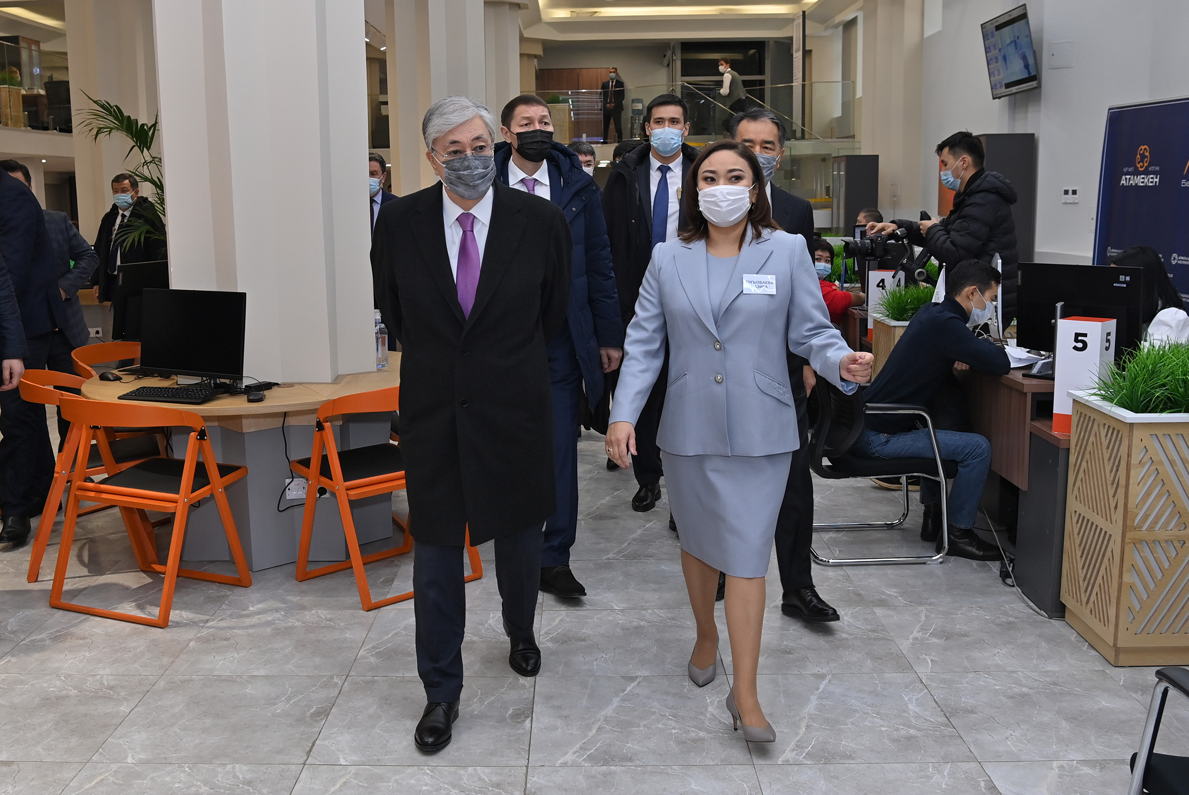 Президент қызмет көрсету залын аралап көріп, орталықтың күнделікті атқарып жатқан жұмыстарымен танысты. Мемлекет басшысына мекеменің республика бойынша әзірге жалғыз әлеуметтік орын екені және осы тәжірибені ел көлемінде қолданысқа енгізу қарастырылып жатқаны жөнінде мәлімет берілді.