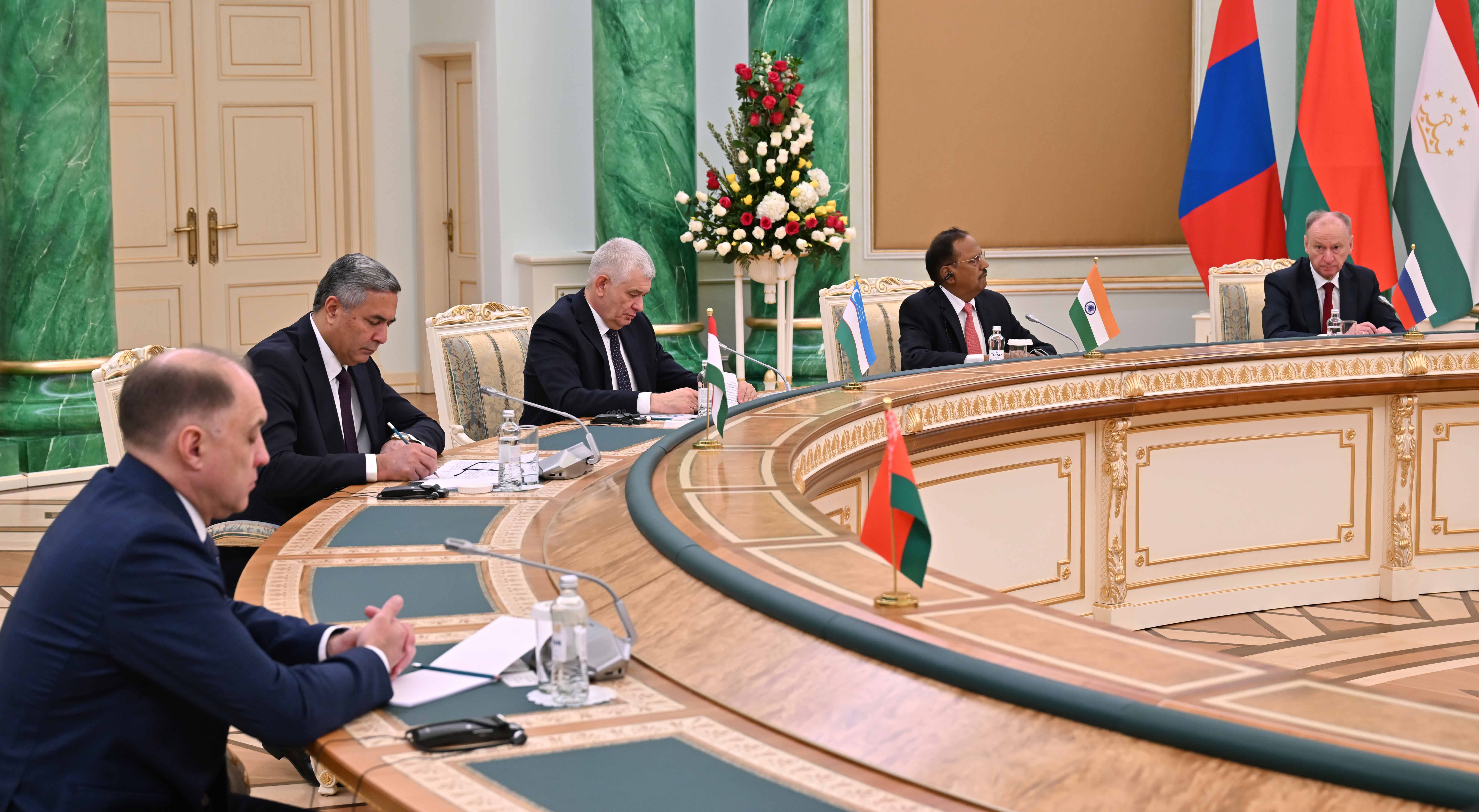 Жиында Ресей Федерациясы Қауіпсіздік кеңесінің хатшысы Николай Патрушев, Қытай Халық Республикасының Қоғамдық қауіпсіздік министрі Ван Сяохун , Үндістан Премьер-министрінің Ұлттық қауіпсіздік жөніндегі кеңесшісі Аджит Довал, Өзбекстан Республикасының Президенті жанындағы Қауіпсіздік кеңесінің хатшысы Виктор Махмудов, Қырғыз Республикасы Қауіпсіздік кеңесінің хатшысы Марат Иманкулов, Тәжікстан Республикасы Қауіпсіздік кеңесінің хатшысы Насрулло Махмудзода, Пәкістан Ислам Республикасы Үкіметінің Ұлттық қауіпсіздік бөлімшесінің хатшысы Вакар Ахмад, Иран Ислам Республикасының Ұлттық қауіпсіздік жөніндегі жоғары кеңесінің хатшысы Али Акбар Ахмадиан Бабаки; бақылаушы мемлекеттердің өкілдері: Моңғолия Ұлттық қауіпсіздік кеңесінің хатшысы Бямбажаргал Алтангэрэл, Беларусь Республикасы Қауіпсіздік кеңесінің мемлекеттік хатшысы Александр Вольфович сөз сөйледі.
