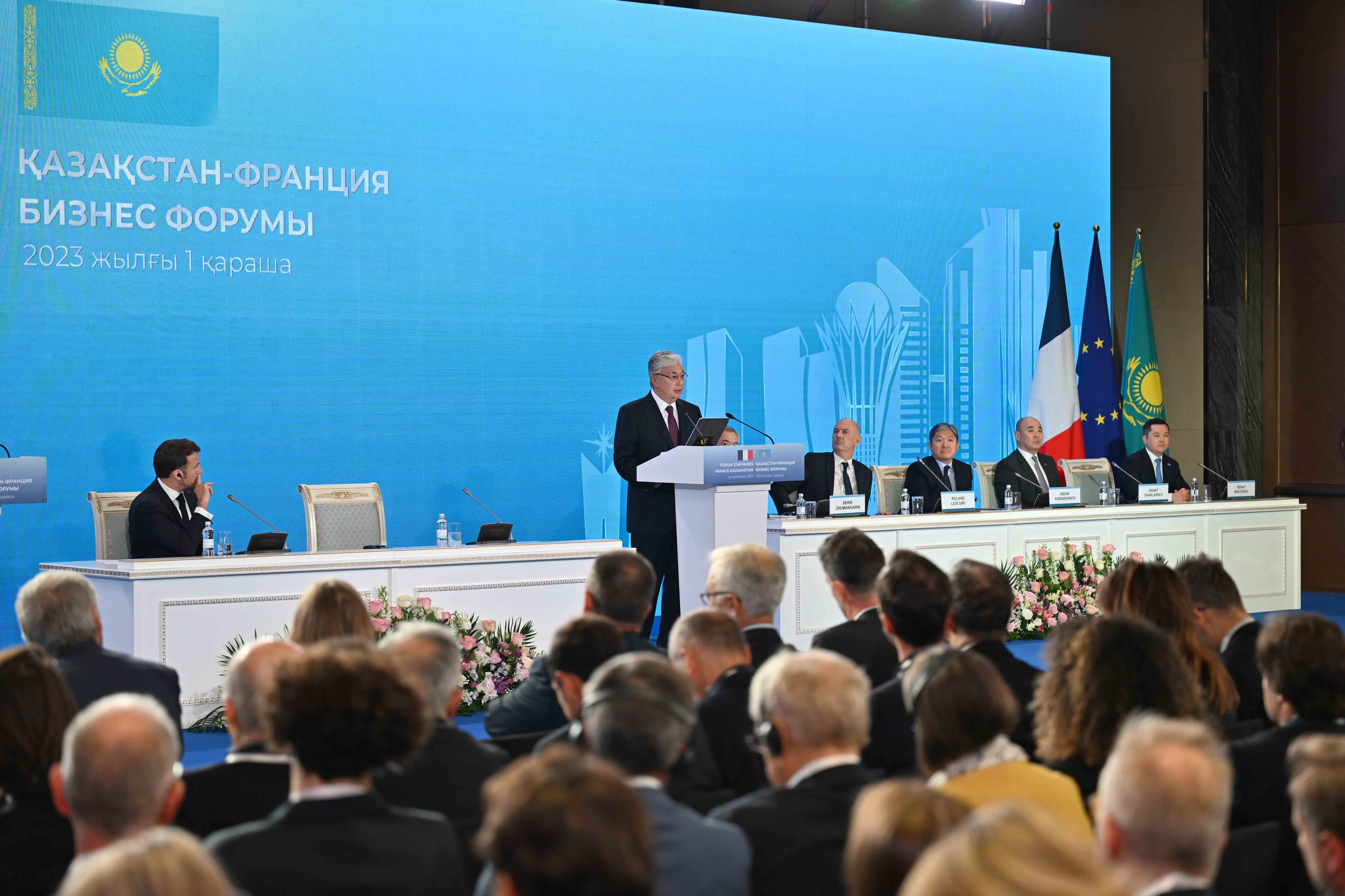 Мемлекет басшысы Қасым-Жомарт Тоқаев пен Франция Президенті Эмманюэль Макрон қазақ-француз бизнес-форумының ашылуына қатысты.