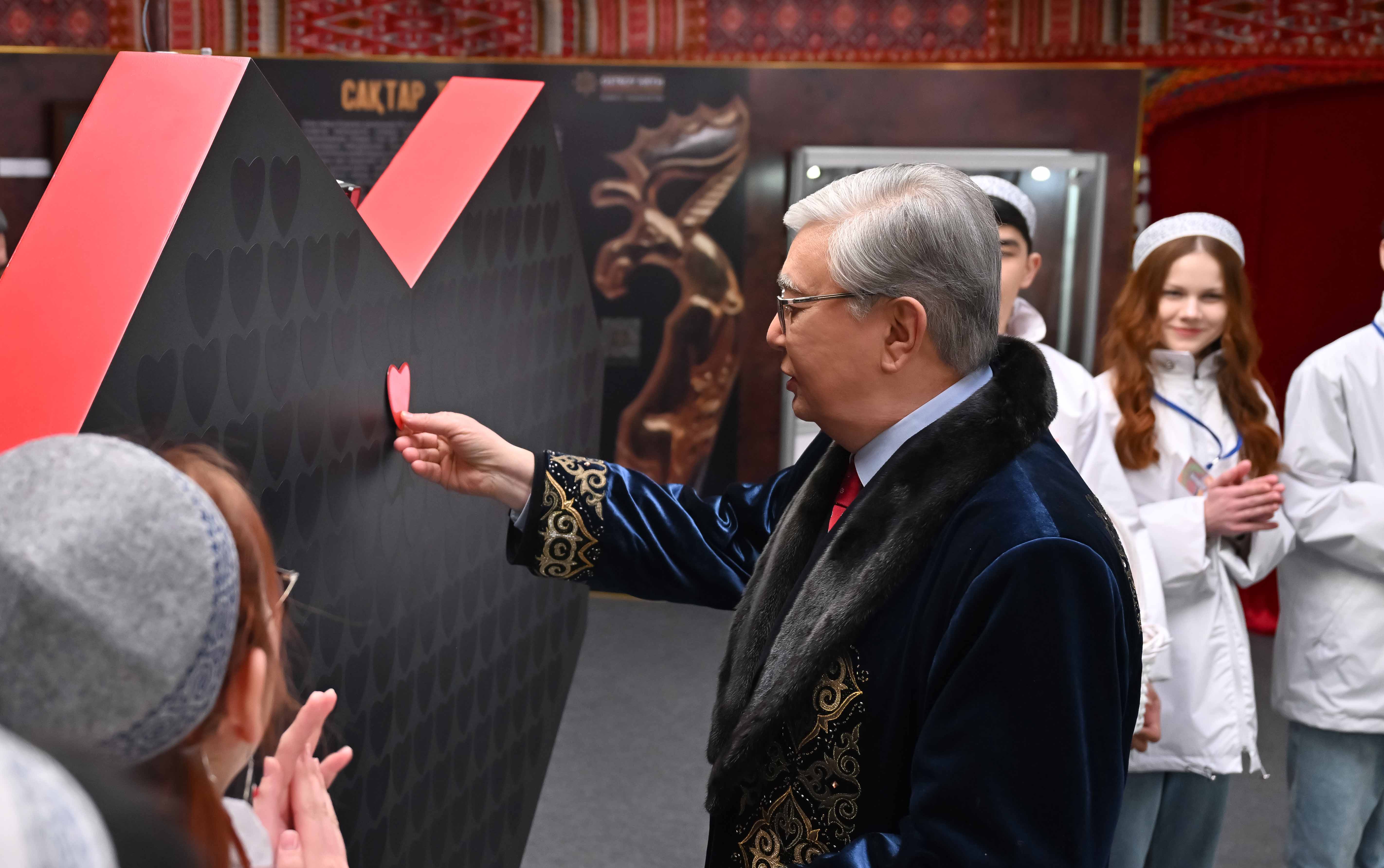 Бұдан кейін Мемлекет басшысы «Жүрек жылуы» қайырымдылық акциясына қатысты. Акцияның мәні – наурыз айы бойына халықтың әлеуметтік осал топтарына қамқорлық көрсетіп, көпбалалы отбасылардан, мүмкіндігі шектеулі жандардан, зейнеткерлерден келіп түскен хаттарда жазылған өтініш-тілектерді орындау.