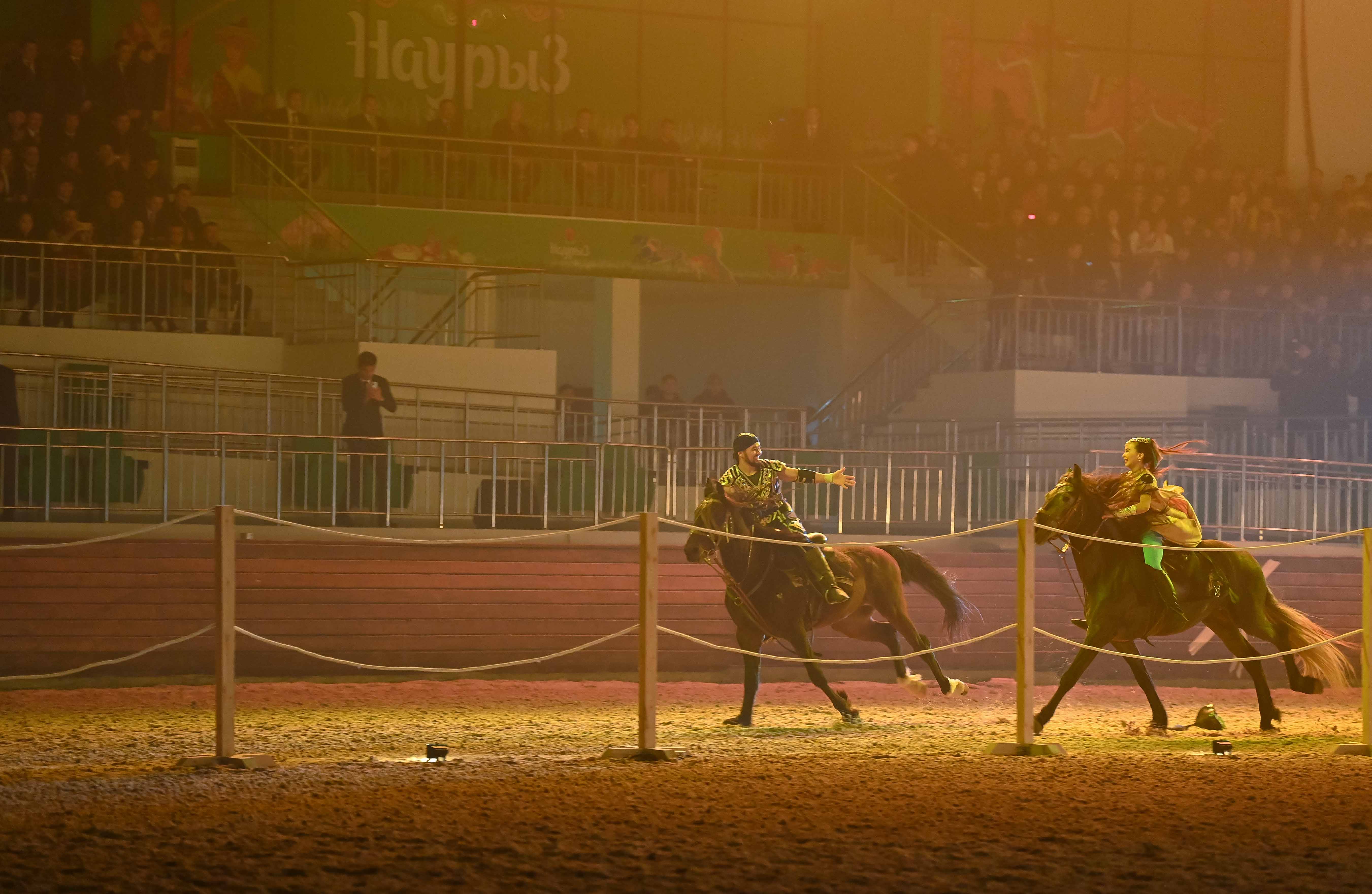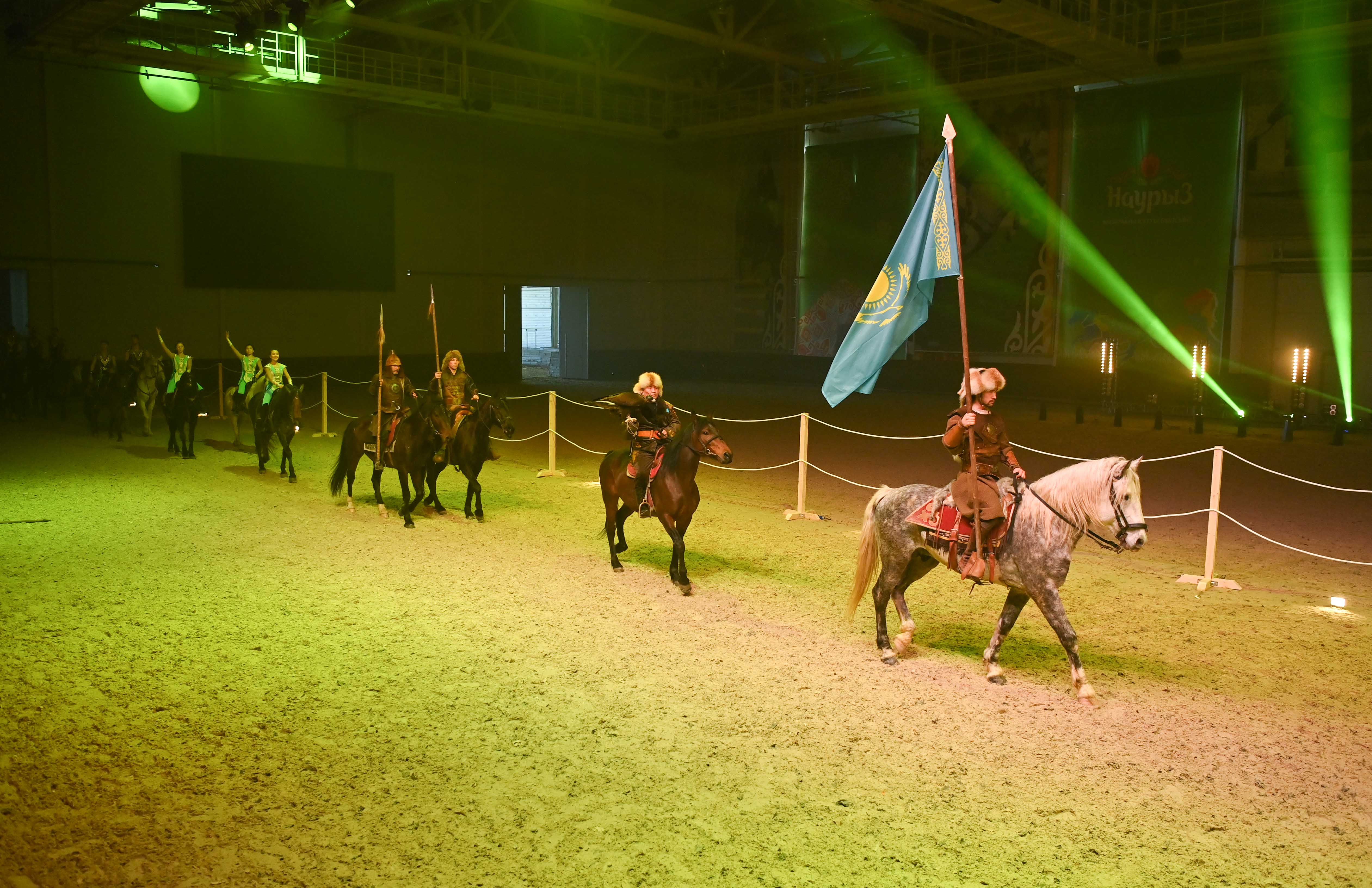 Сондай-ақ Мемлекет басшысы Nomad Stunts тобының өнерін тамашалады. Каскадерлер аударыспақ, қыз қуу, теңге ілу, садақ ату сияқты ұлттық ойын түрлері мен көшпенділердің әскери шеруін көрсетті.