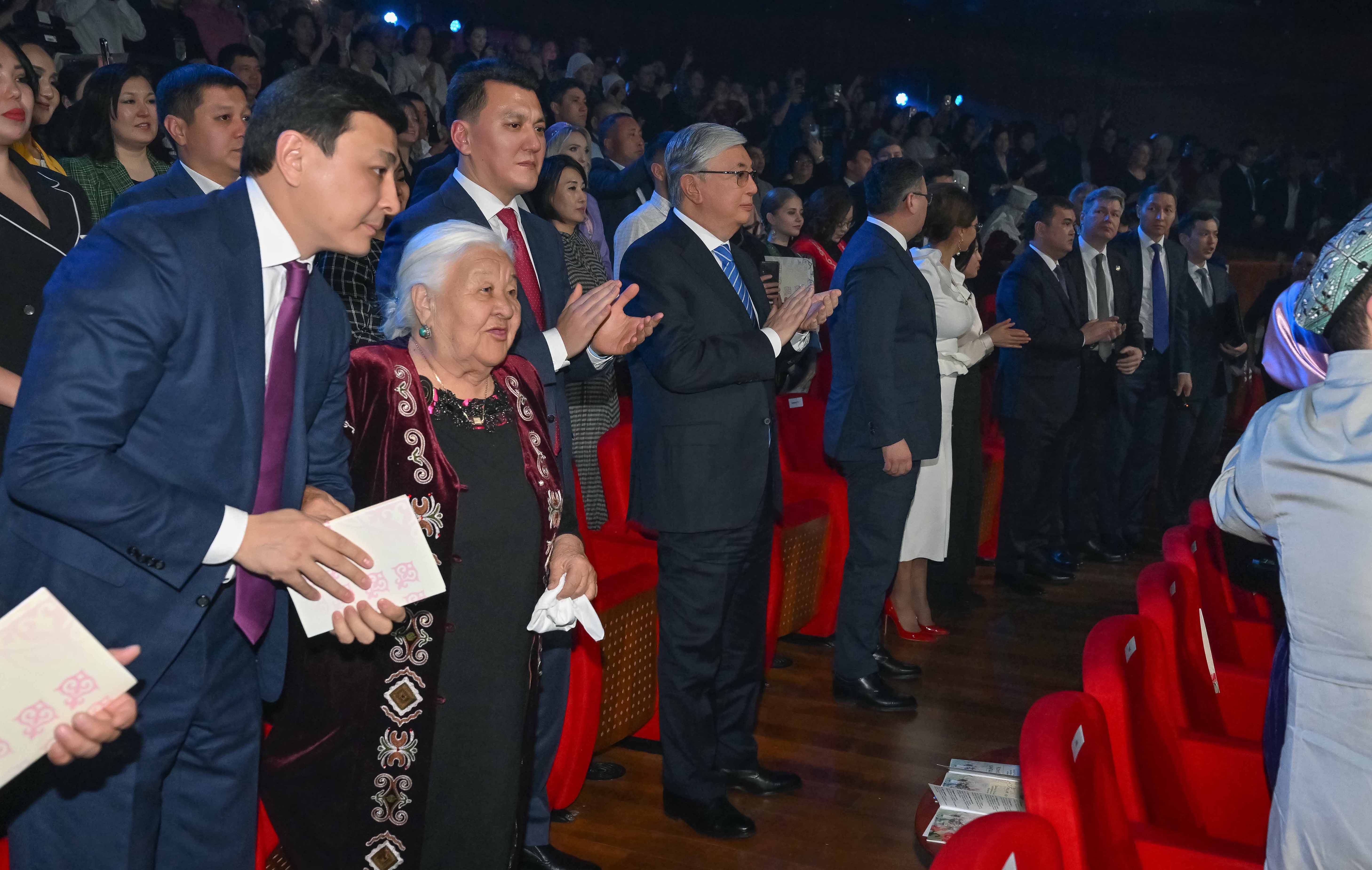 Сонымен қатар Мемлекет басшысы Шәмші Қалдаяқовтың шығармашылығына арналған отандық өнер жұлдыздарының концертін тамашалады.