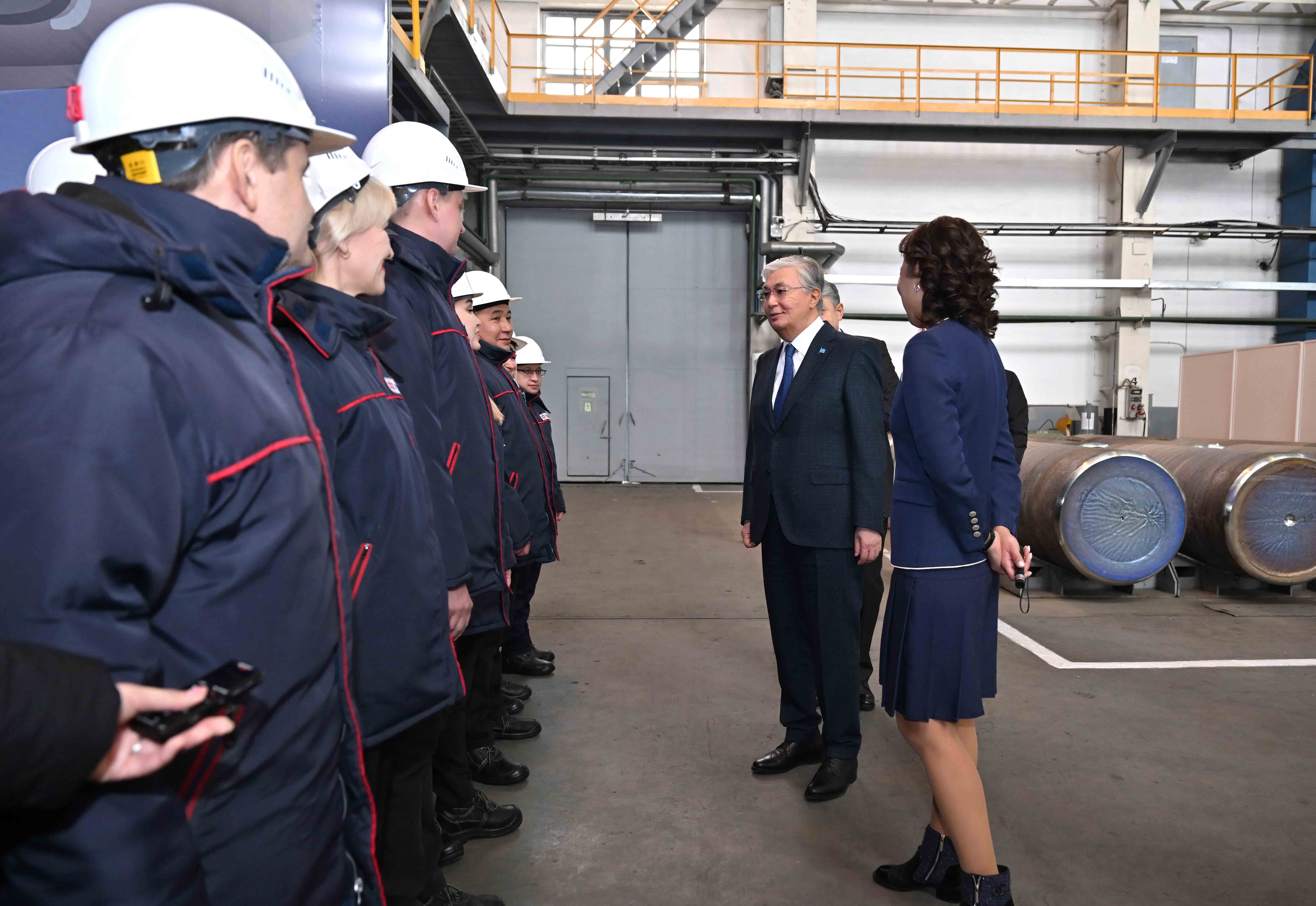 Сонымен қатар Қасым-Жомарт Тоқаев өндіріс цехтарын аралап көріп, комбинат жұмысшыларымен әңгімелесті.