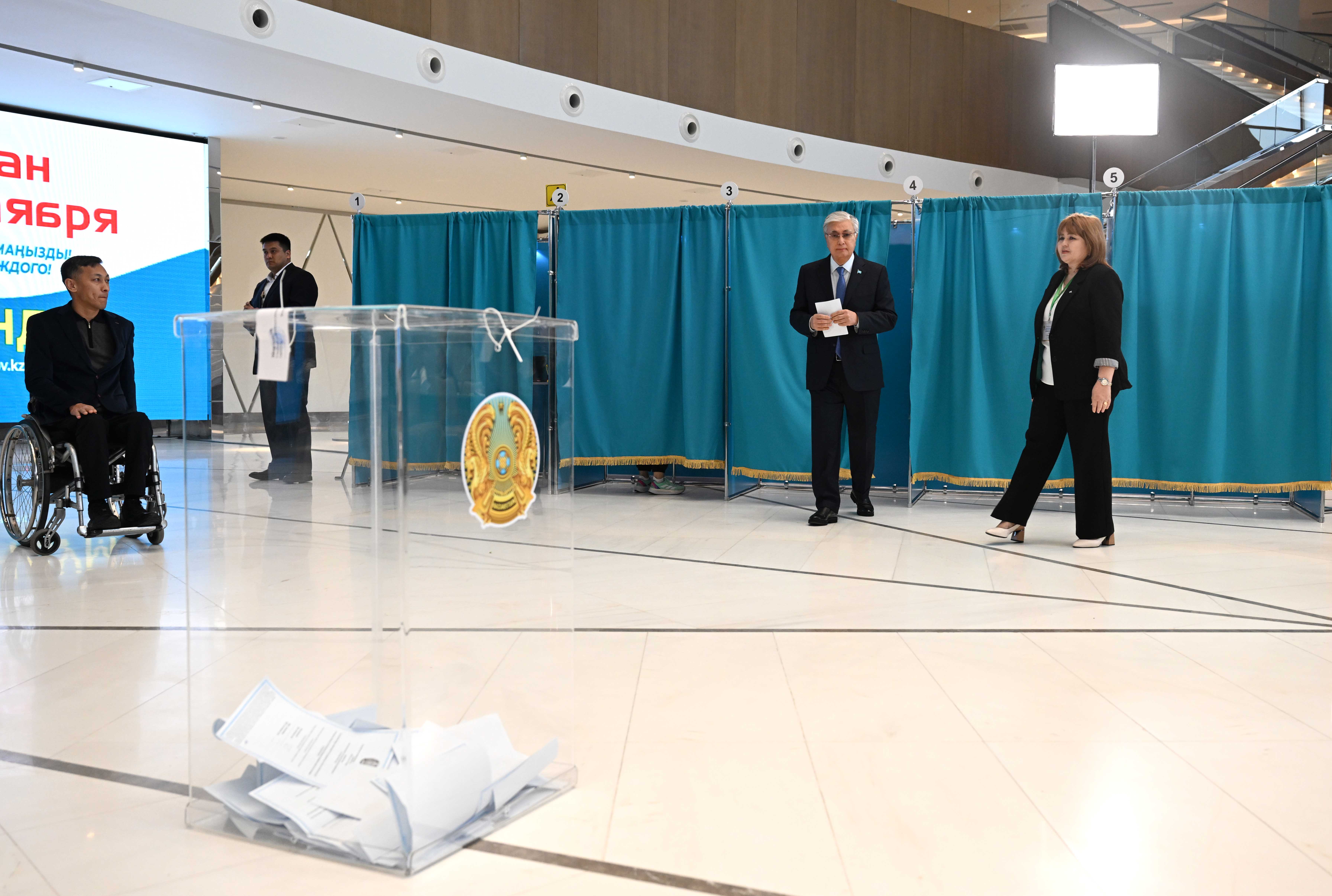 Қасым-Жомарт Тоқаев Президент орталығында орналасқан №211 референдум учаскесіне барып, АЭС құрылысына қатысты республикалық референдумда дауыс берді.