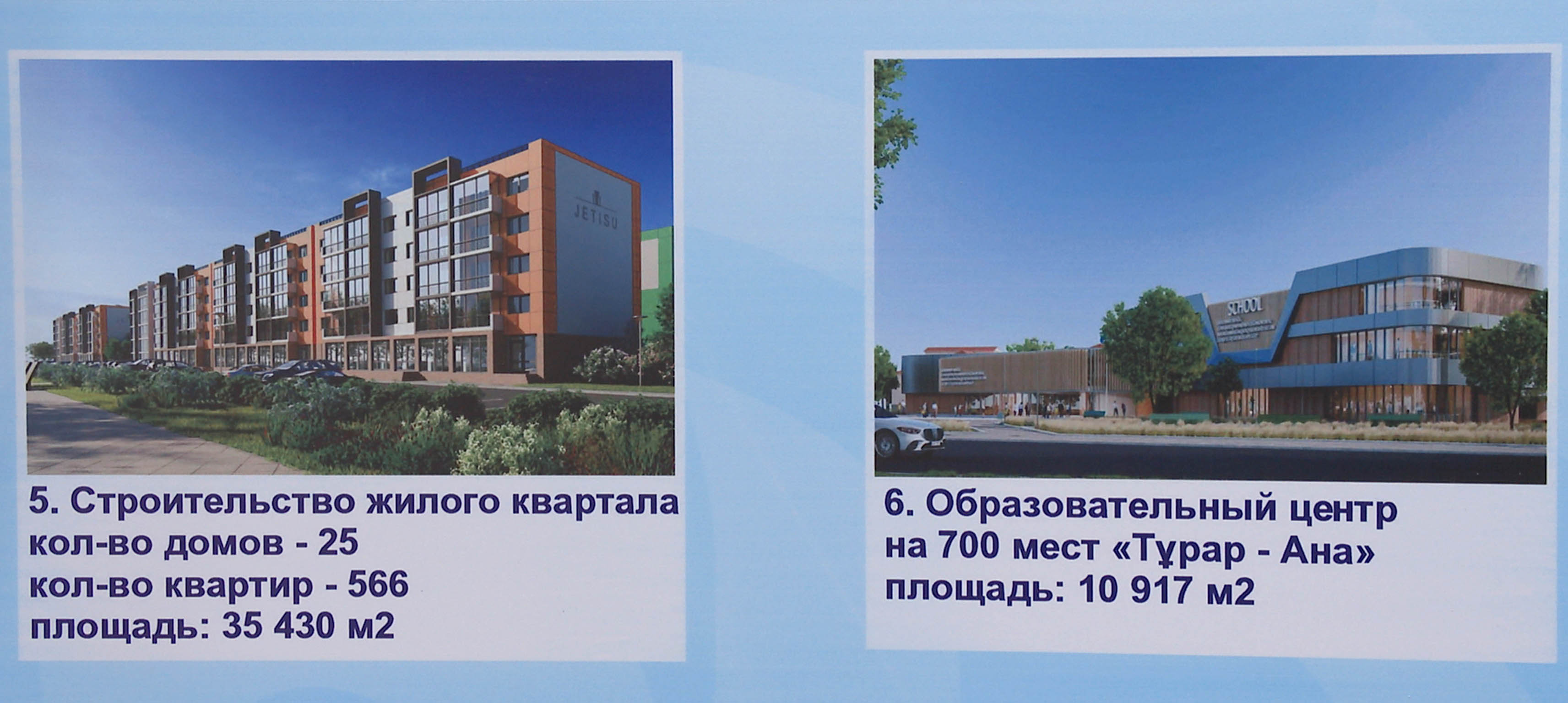Талдықорған қаласының әкімі Ернат Бәзілдің айтуынша, осы шағын ауданда былтыр аумағы 44,1 мың шаршы метр болатын 509 пәтерлі 14 үйдің құрылысы аяқталған. Ал биыл жыл соңына дейін 783 пәтерлі тағы 21 үйді аяқтау жоспарланып отыр. Қала басшылығы қалған 218 пәтерлі 6 үйдің құрылысын келесі жылы аяқтайтынын жеткізді. Жыл соңына дейін Талдықорған қаласы бойынша жалпы көлемі 155,2 мың шаршы метрді құрайтын 2 065 пәтер пайдалануға беріледі. Сондай-ақ 2024 жылы 2 375 пәтер салу жоспарланған. Бұдан бөлек, Қаратал өзенінің оң жағалауын дамыту қарастырылған.