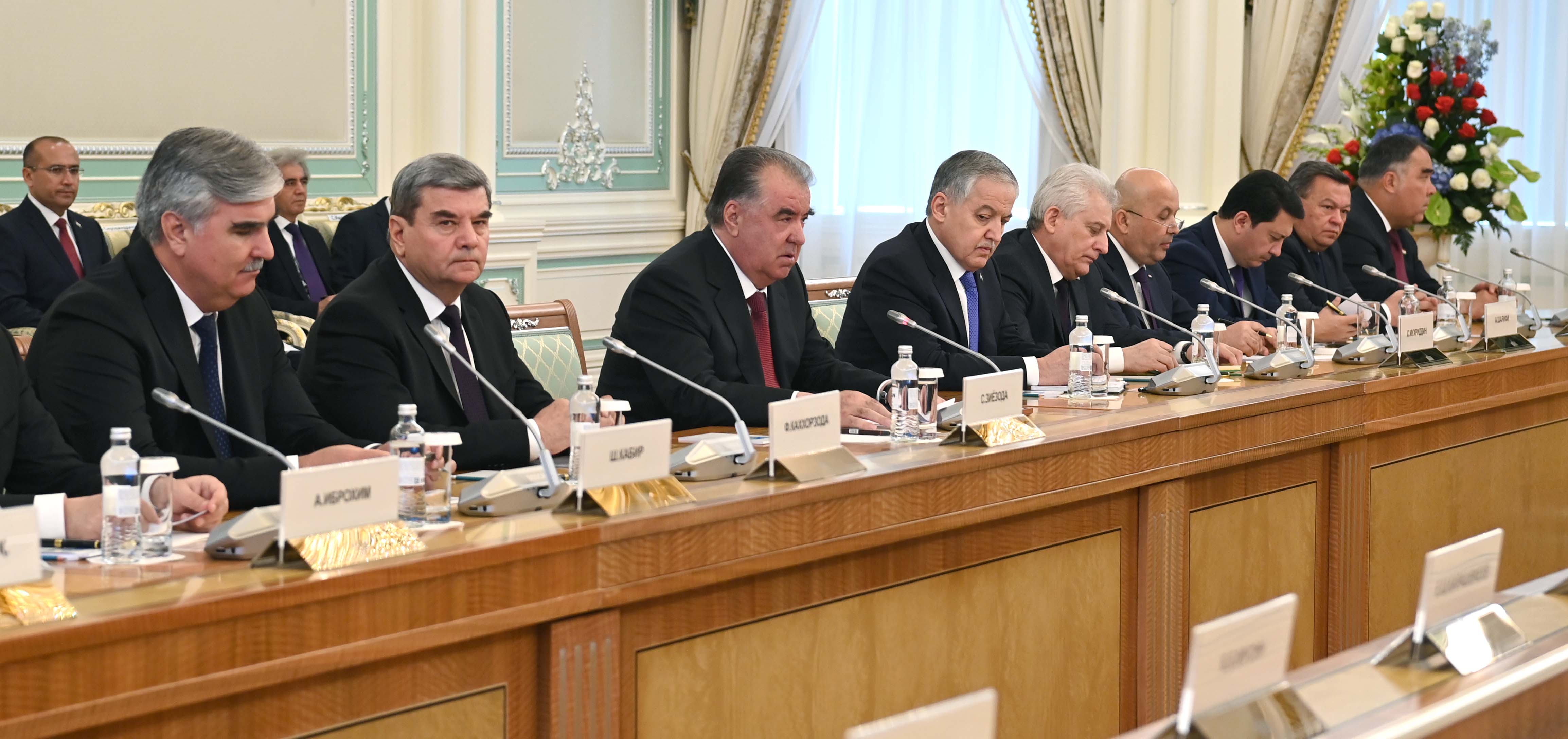 Шағын құрамда өткен кездесуден кейін Қасым-Жомарт Тоқаев пен Эмомали Рахмон екі мемлекеттің ресми делегацияларының қатысуымен келіссөз жүргізді.