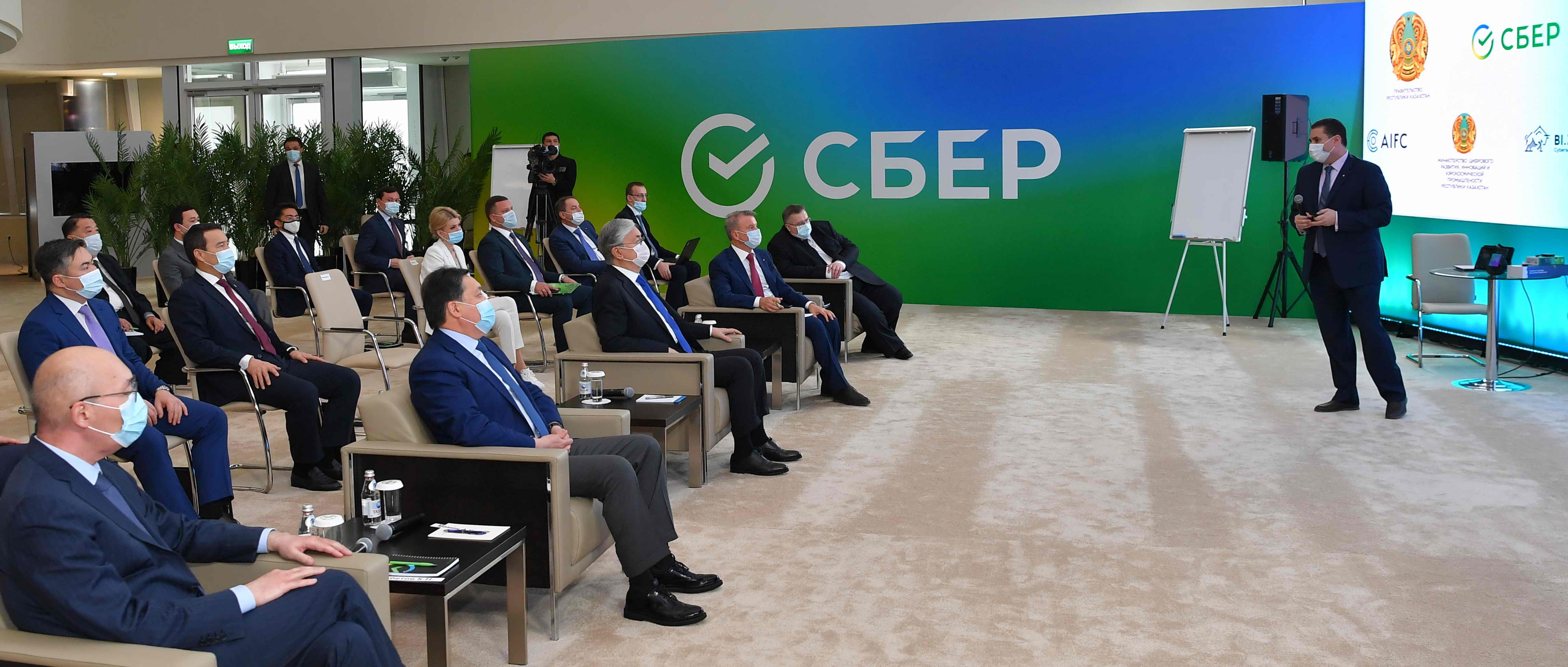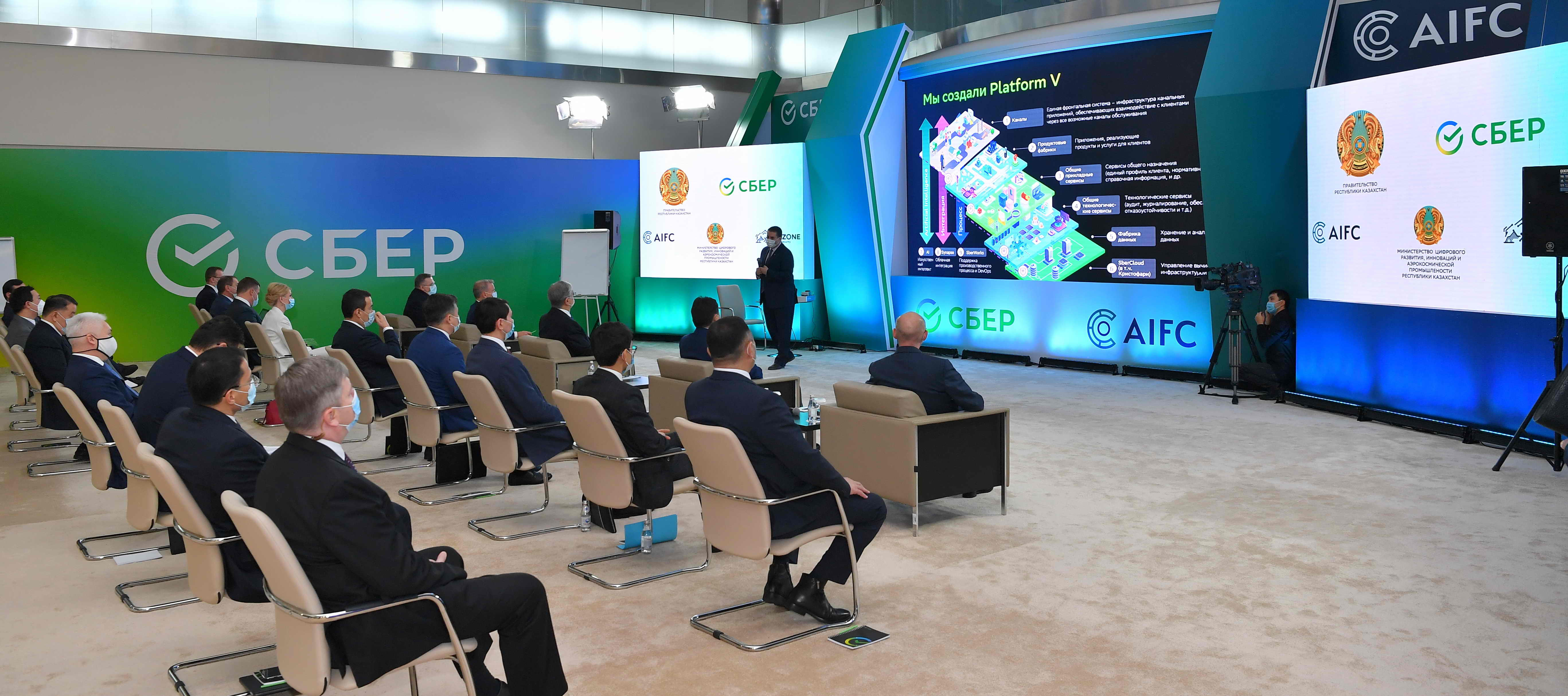 Президенту Казахстана была представлена интерактивная презентация, посвященная внедряемым в России проектам цифровых решений, наработкам в области глубокой комплексной цифровизации и опыту использования экосистемы Sber.