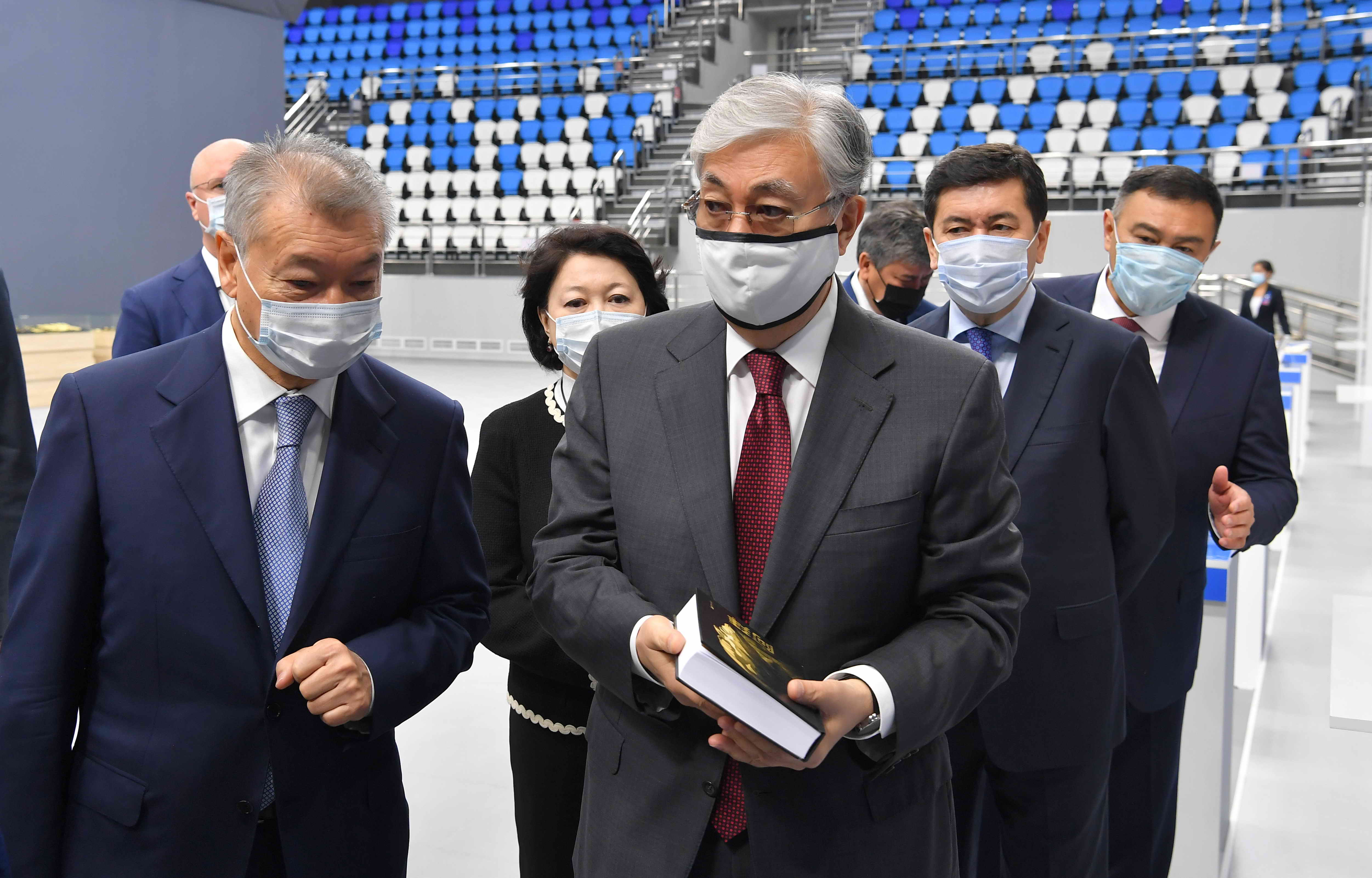 Президент Казахстана в культурно-спортивном комплексе осмотрел выставку, на которой были представлены редкие издания Абая, книги,  опубликованные в рамках серии «Мир Абая», а также многотомный труд доктора филологических наук, профессора Мекемтаса Мырзахметулы, посвященный творчеству поэта.