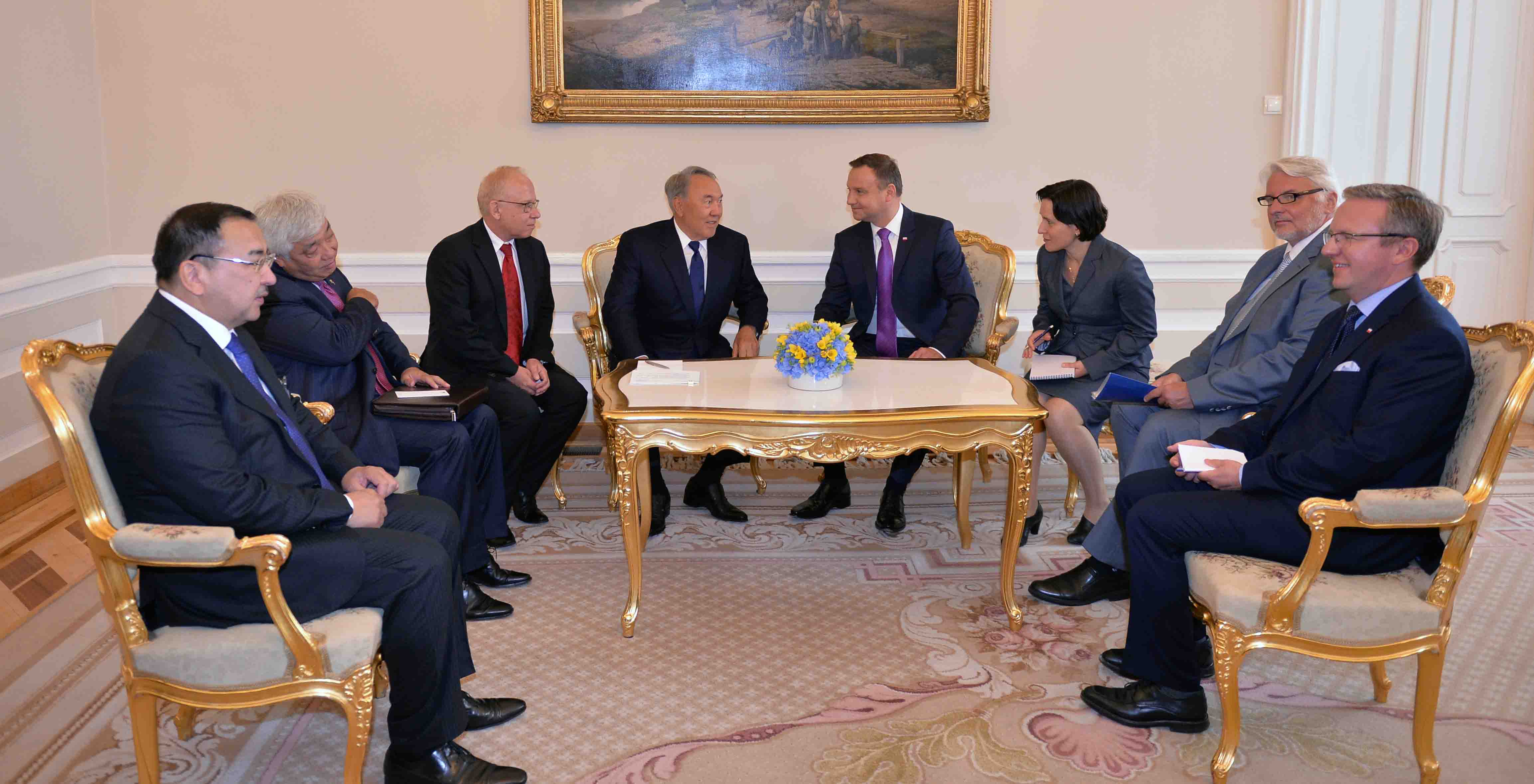 В свою очередь, А.Дуда подчеркнул, что нынешний визит Нурсултана Назарбаева свидетельствует об интенсификации партнерства между странами. Президент Польши обратил внимание на наличие общих интересов у наших государств и широких перспектив углубления двустороннего сотрудничества, в том числе в транспортно-логистической и нефтегазовой сфере.