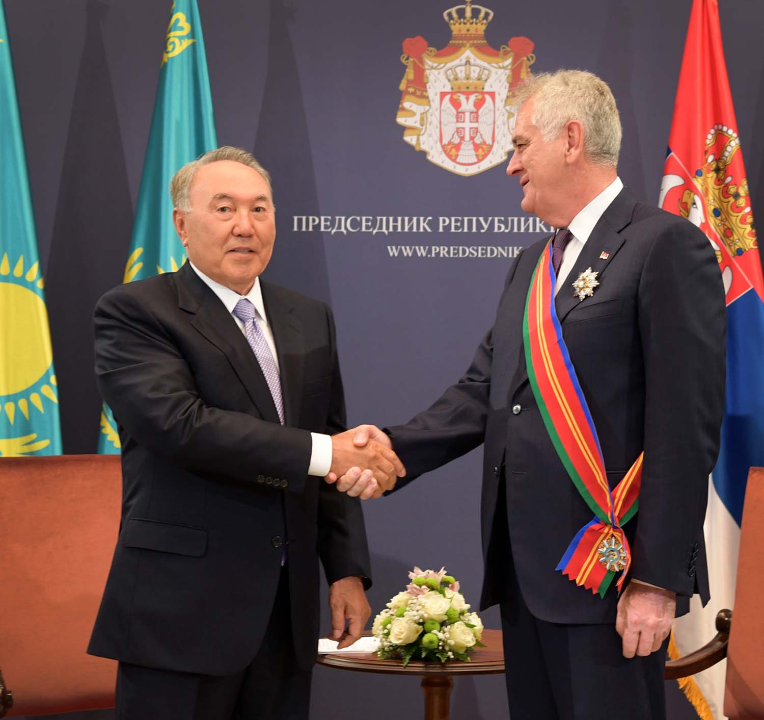 В ходе встречи Нурсултан Назарбаев наградил Президента Сербии Орденом «Достык» I степени за вклад в укрепление дружбы и сотрудничества между государствами.