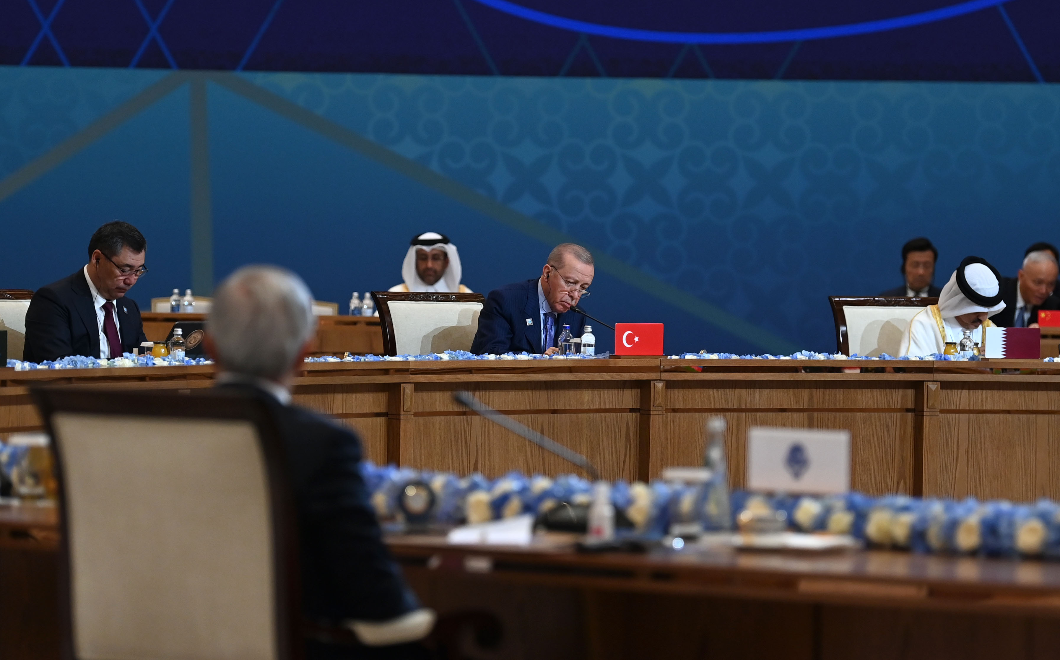 Также на саммите выступили Генеральный секретарь ООН Антониу Гутерриш, Президент Беларуси Александр Лукашенко, исполняющий обязанности Президента Ирана Мохаммед Мохбер, Председатель КНР Си Цзиньпин, Президент Кыргызстана Садыр Жапаров, Премьер-министр Пакистана Шахбаз Шариф, Президент России Владимир Путин, Президент Таджикистана Эмомали Рахмон, Президент Узбекистана Шавкат Мирзиёев, министр иностранных дел Индии Субраманьям Джайшанкар, Президент Монголии Ухнаагийн Хурэлсух, Президент Азербайджана Ильхам Алиев, Председатель Халк Маслахаты Туркменистана Гурбангулы Бердымухамедов, Президент Турции Реджеп Тайип Эрдоган, член Верховного совета ОАЭ, правитель эмирата Рас-Эль-Хайма шейх Сауд бен Сакр аль-Касими.