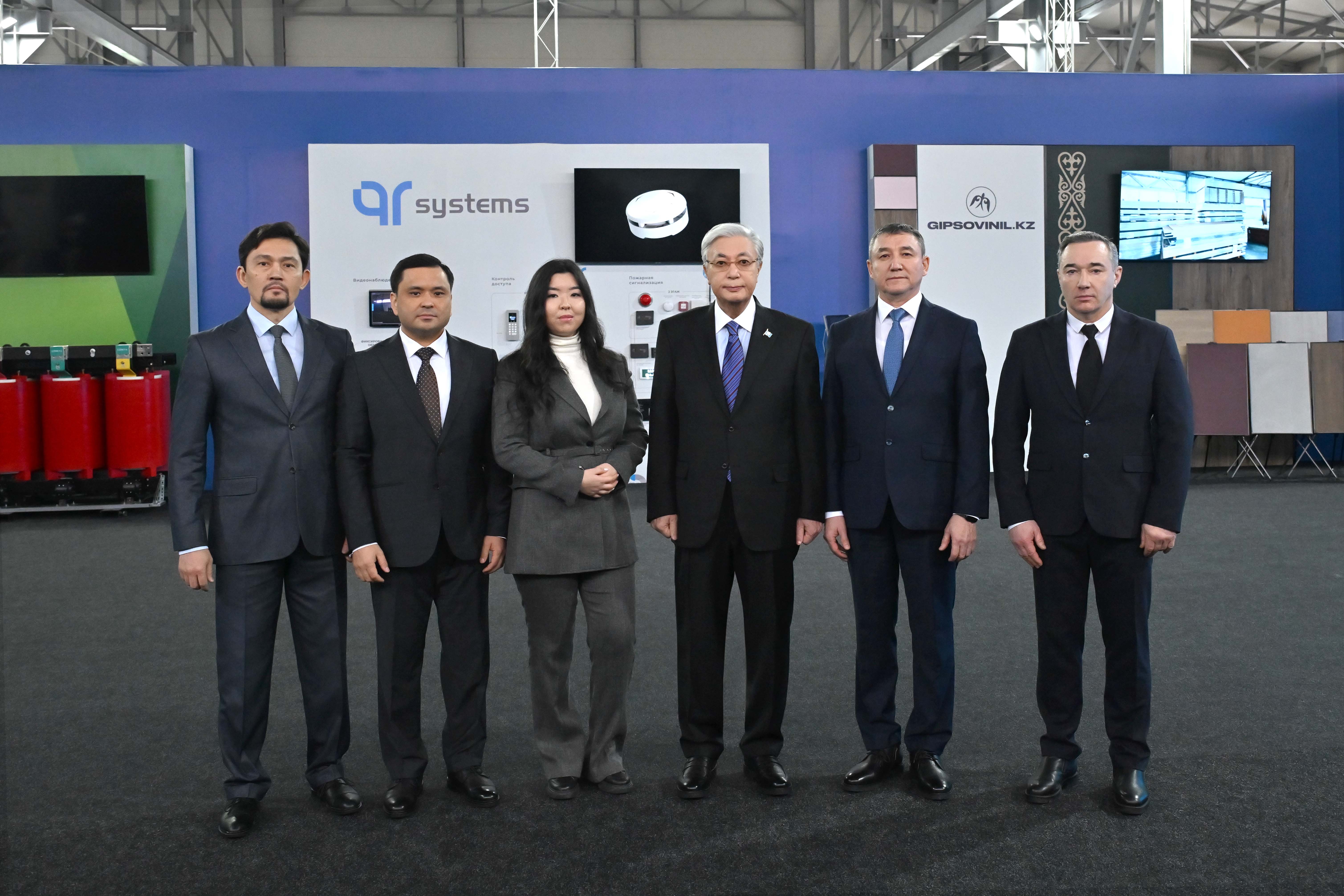 Касым-Жомарту Токаеву показали продукцию заводов «Гипсовинил», специализирующегося на производстве гипсовиниловых панелей, и QR Systems, выпускающего пожарную сигнализацию, видеокамеры и домофоны. На выставке также были представлены «Астанинский электротехнический завод», «Астанинский трубный завод «Арыстан» и предприятие ARGP, производящее строительную и дорожную химию.