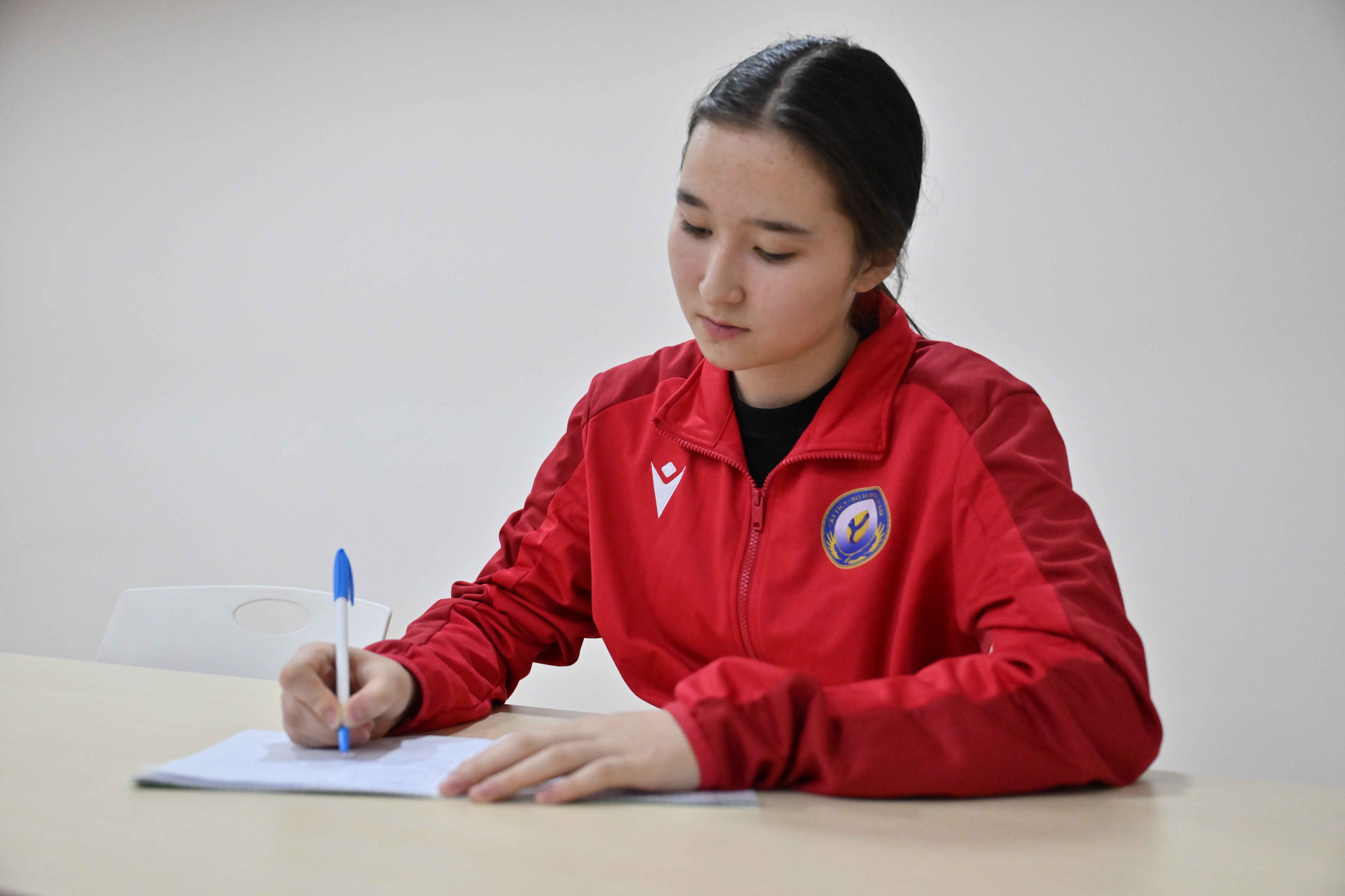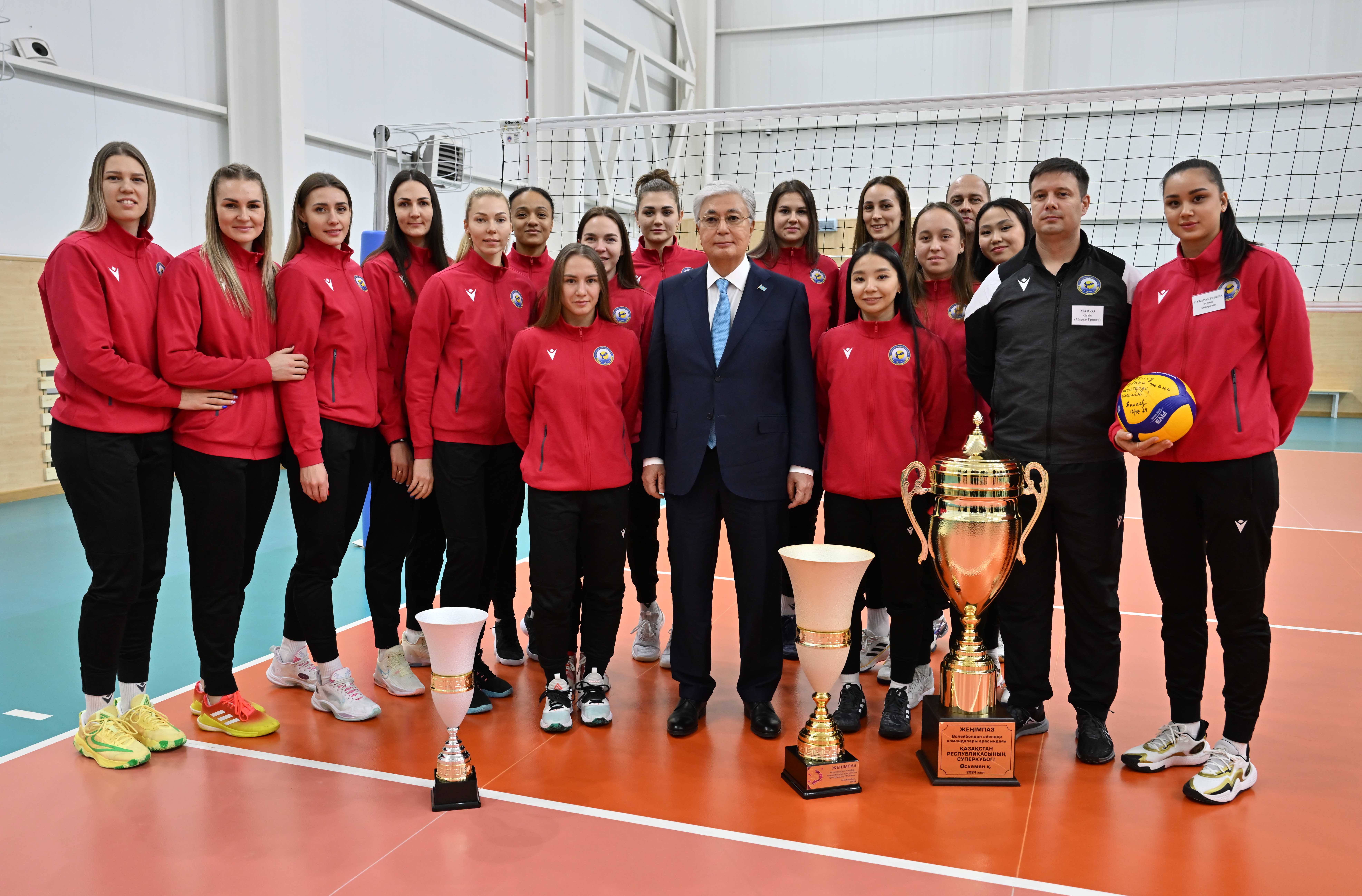 Члены команды поблагодарили Президента Казахстана за создание благоприятных условий и попросили оставить автограф на волейбольном мяче.