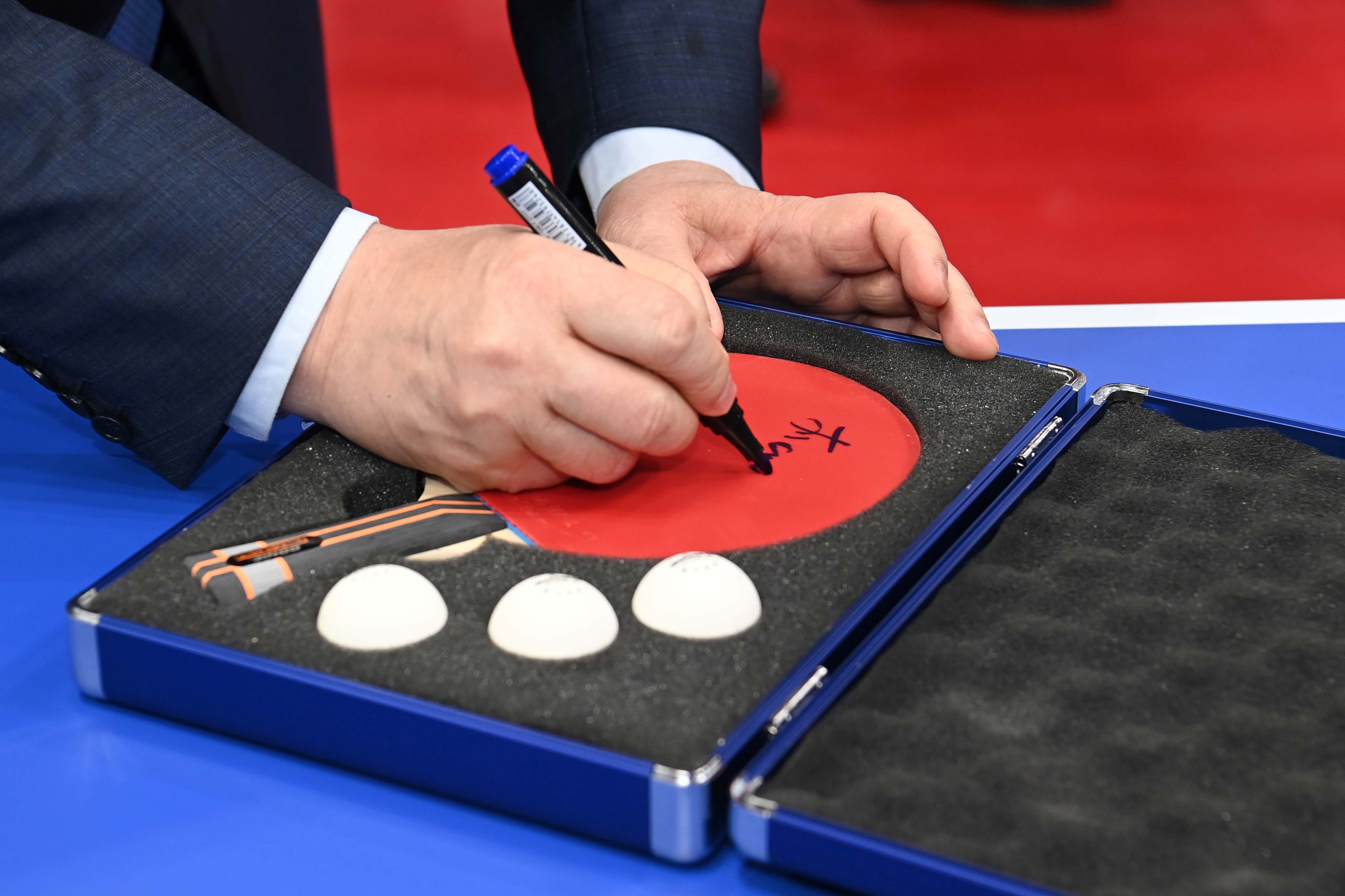 Президент ознакомился с инфраструктурой спортивного комплекса, а также сыграл в настольный теннис с юной спортсменкой.