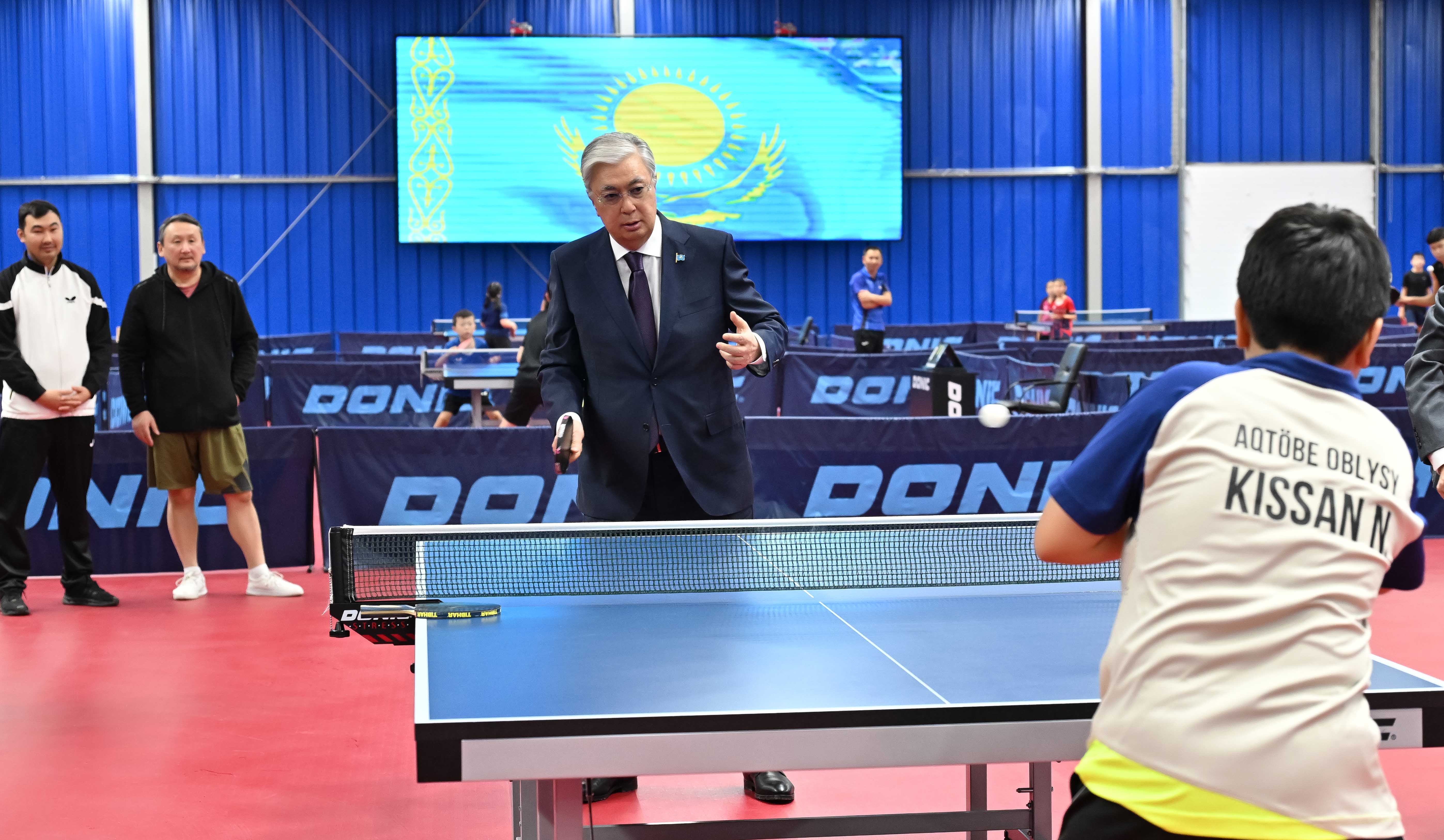 Касым-Жомарт Токаев посетил центр настольного тенниса в Актобе.
