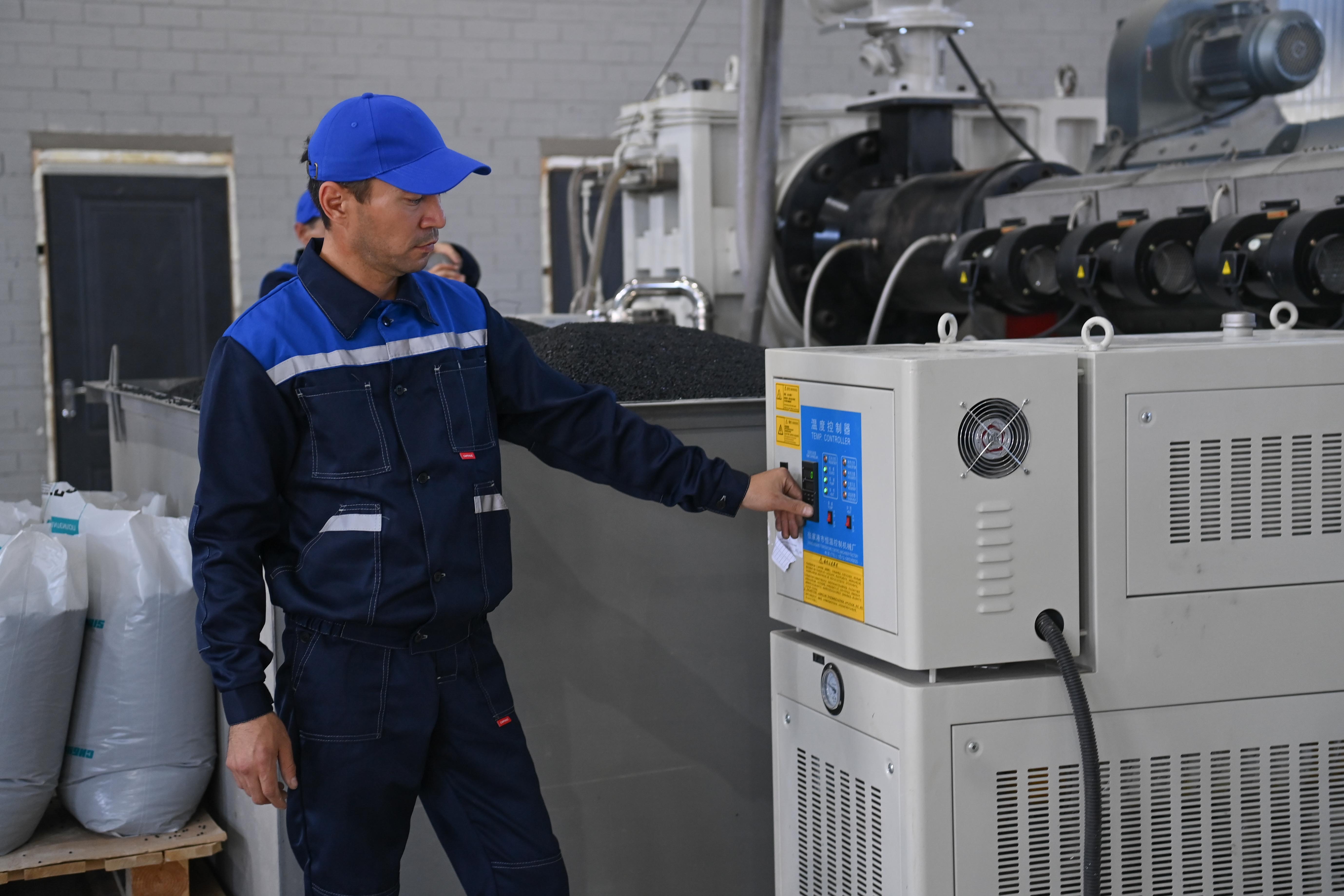 Касым-Жомарт Токаев осмотрел цеха предприятия и ознакомился с продукцией завода. Здесь выпускаются строительные материалы: бетон, фундаментные блоки, кирпичи и плиты. Недавно на заводе запустили линию по производству полиэтиленовых труб большого диаметра, которые используются при монтаже магистральных трубопроводов хозяйственно-питьевого и технического водоснабжения.