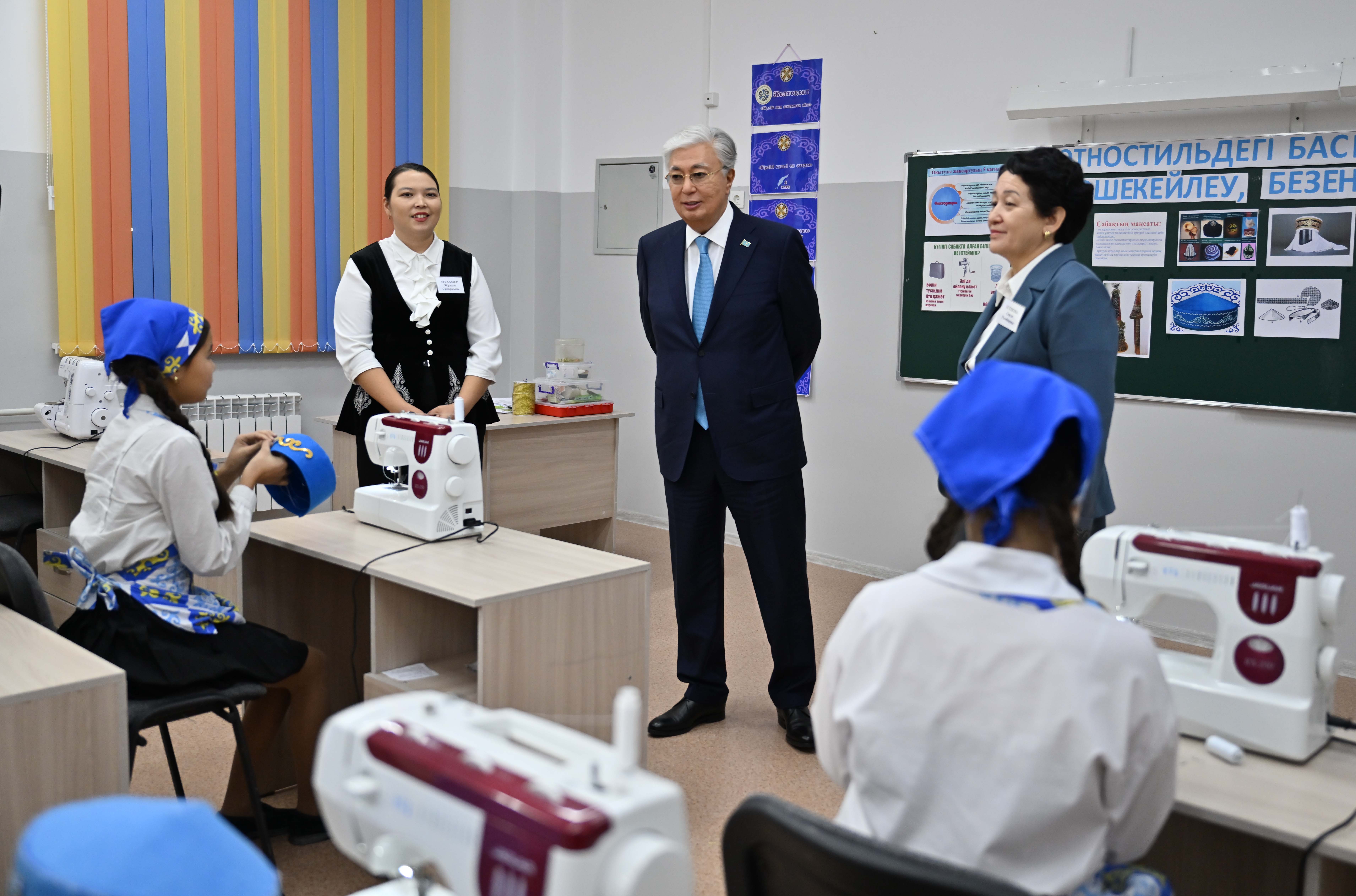 Глава государства посетил среднюю школу в селе Ынтымак