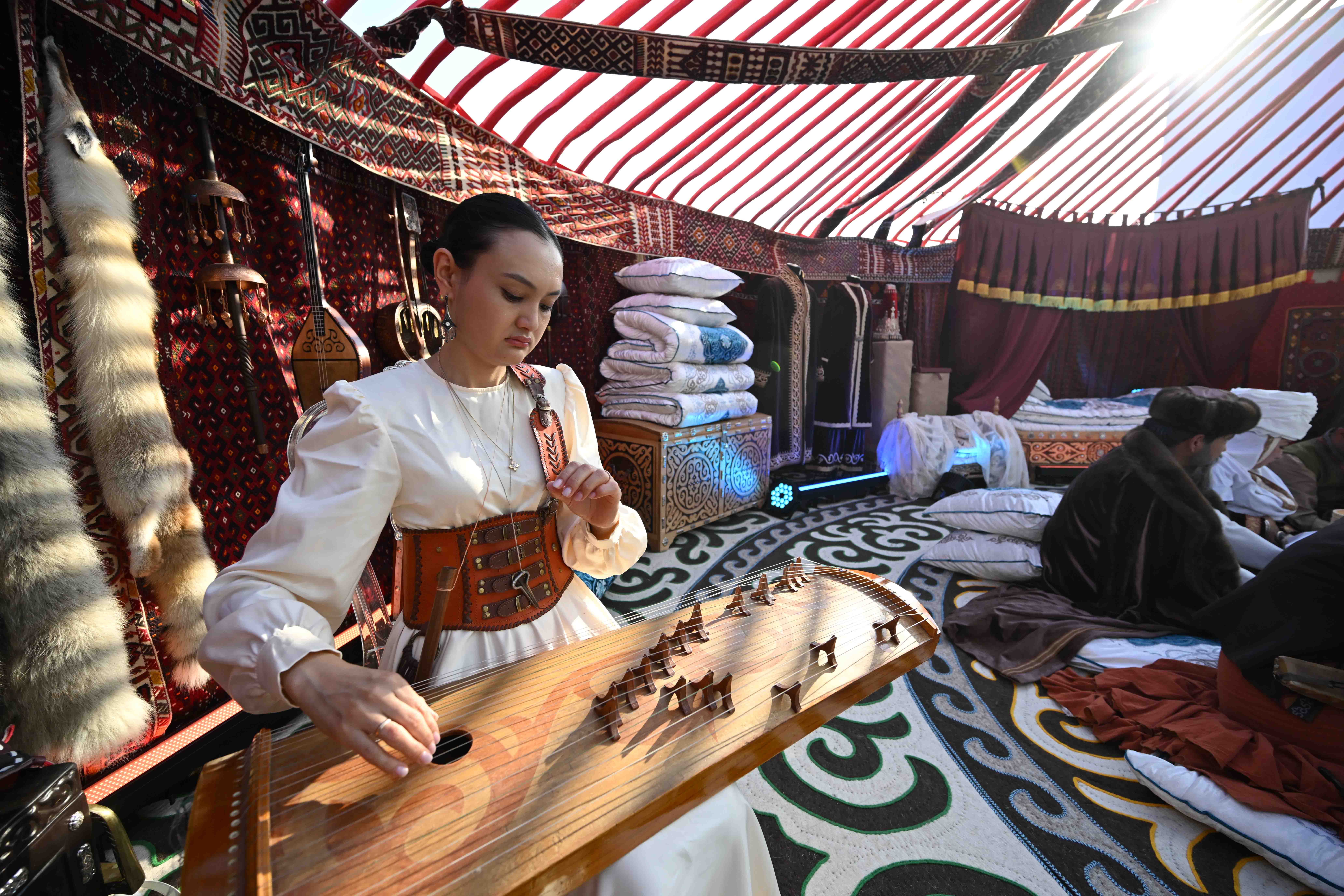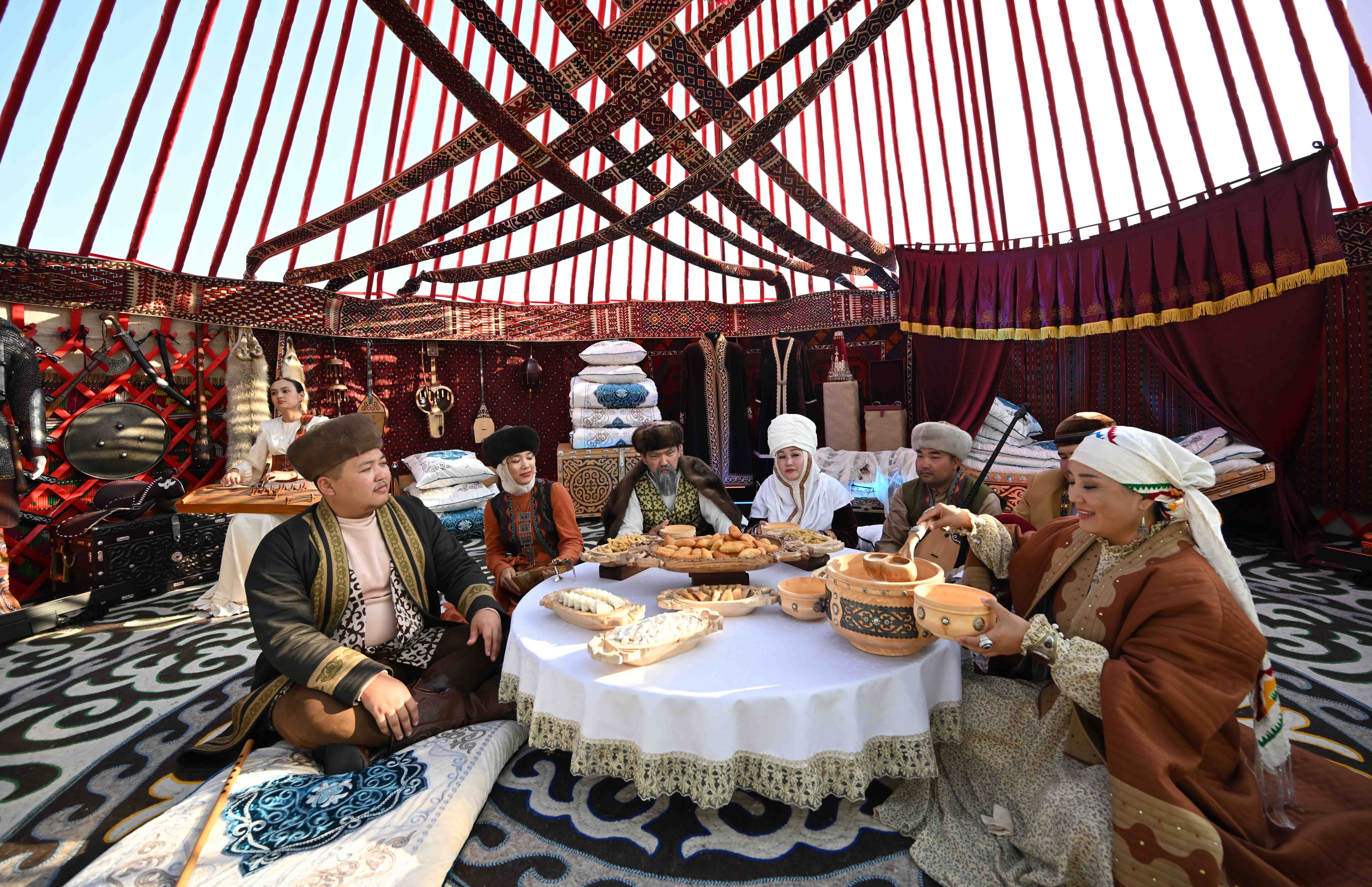 Внимание гостей привлекла экспозиция Казахстана, оформленная в духе национальных традиций. Здесь были установлены казахские юрты, в которых царила атмосфера уюта и гостеприимства.