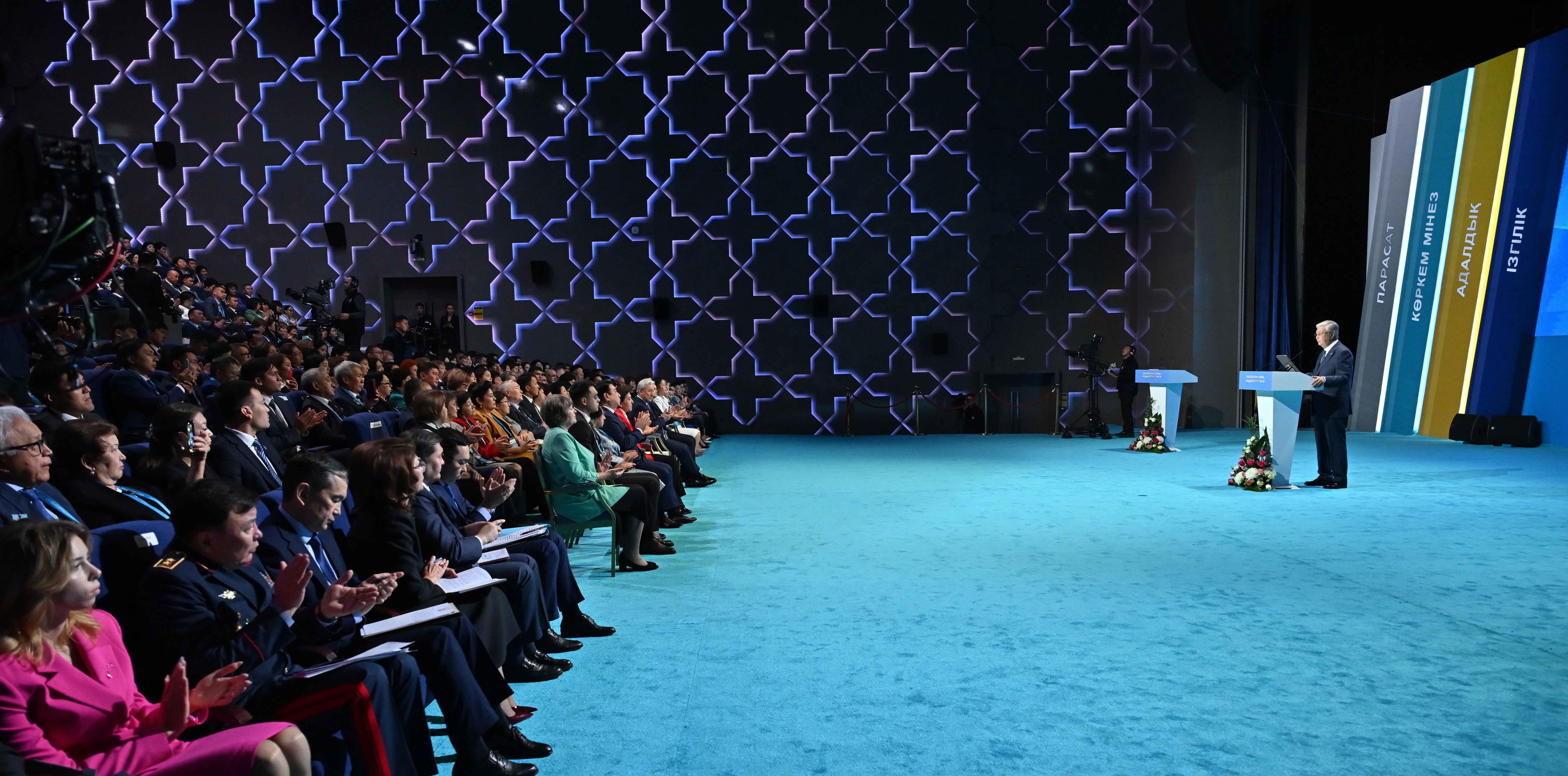 – Как никогда актуально звучит высказывание учителя нации Ахмета Байтурсынова: «Улучшение жизни народа надо начинать именно с дела обучения детей». Образование и наука – главный ключ к успеху. Наша важнейшая задача – воспитание и обучение по передовым стандартам подрастающего поколения. Поэтому на сообщество учителей, то есть на вас, возлагается высочайшая ответственность, – сказал Глава государства.