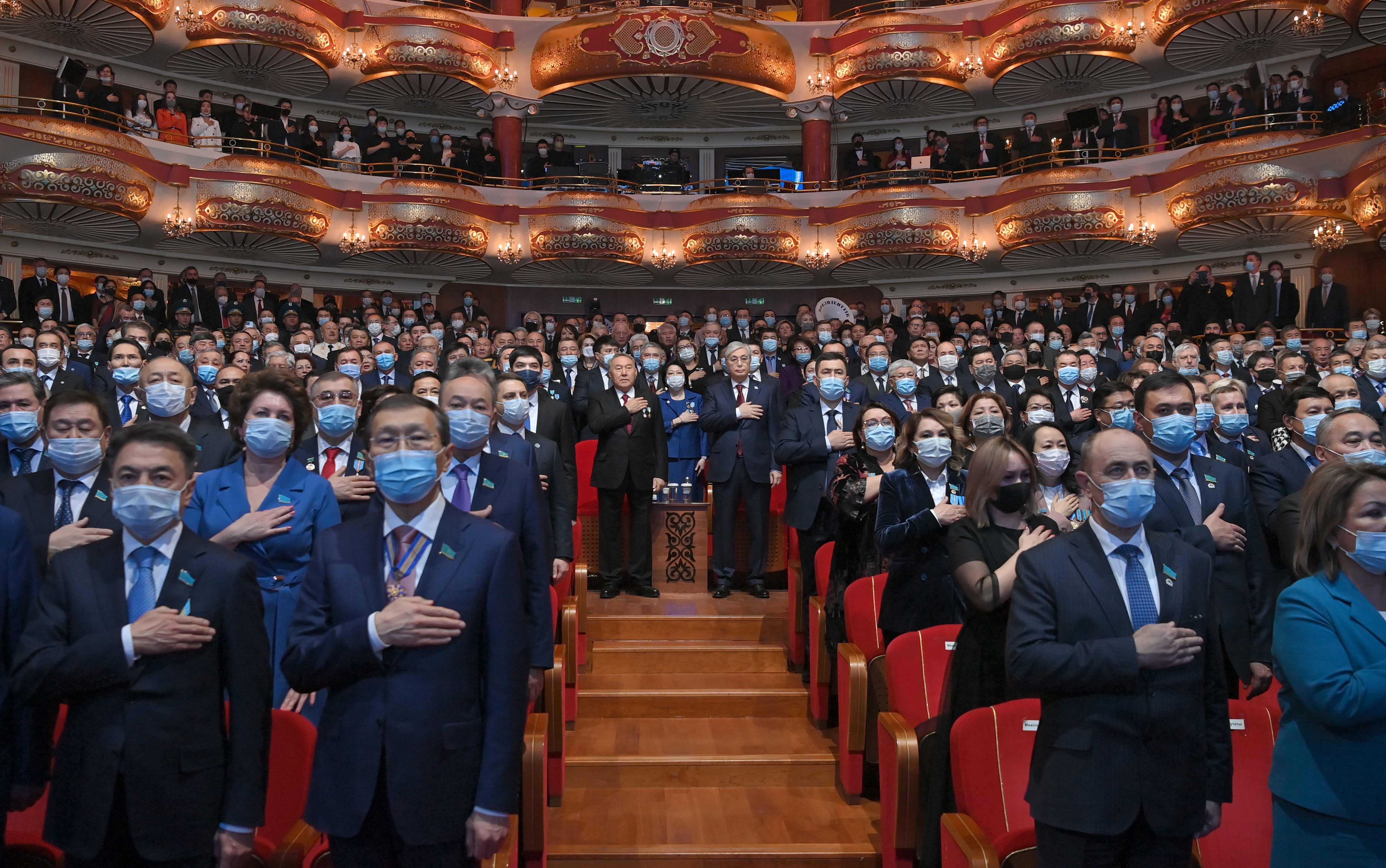 Касым-Жомарт Токаев акцентировал внимание на значимых вехах многовековой истории казахской государственности, важнейших достижениях Казахстана в социально-экономической, внешнеполитической, культурной, научной сферах. Особо были отмечены выдающиеся заслуги Первого Президента – Елбасы Нурсултана Назарбаева в построении суверенного Казахстана.