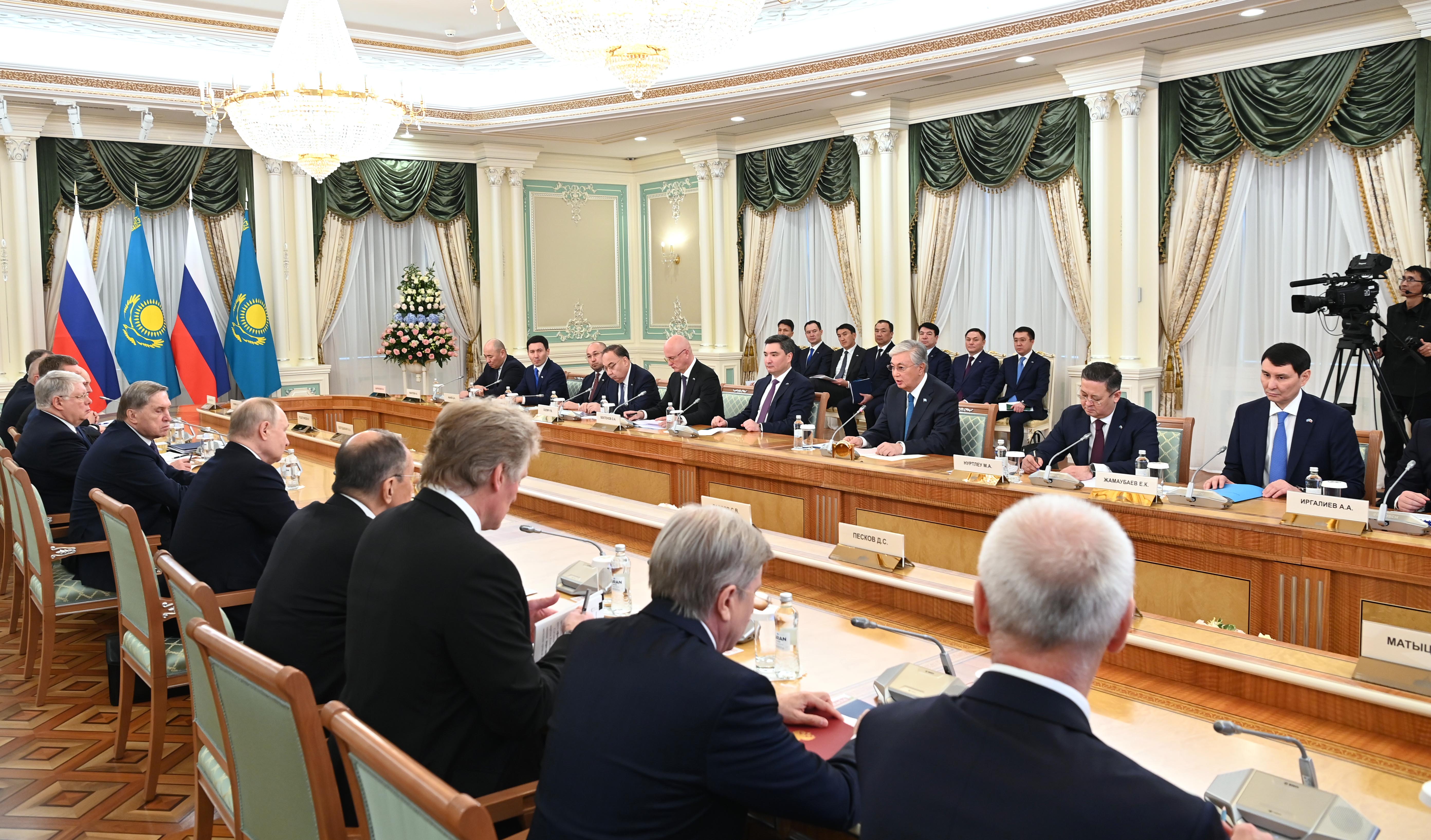 Президент Казахстана Касым-Жомарт Токаев и Президент России Владимир Путин провели переговоры с участием официальных делегаций двух стран.