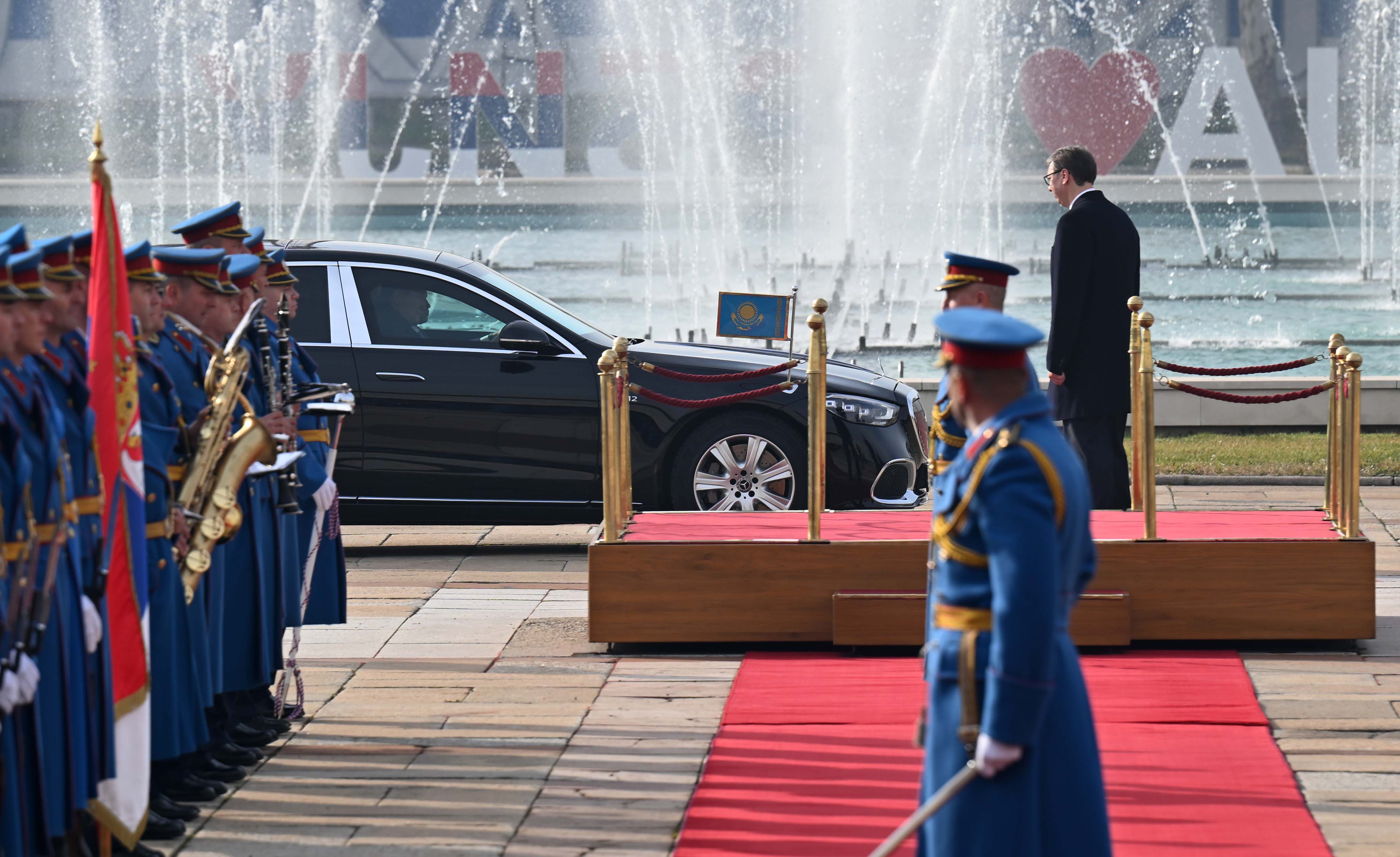 Переговорам предшествовала церемония официальной встречи на площади перед Дворцом Сербии. В честь прибытия Президента Казахстана был выстроен почетный караул. После рапорта начальника почетного караула прозвучали гимны обеих стран, а также было произведено 10 артиллерийских залпов. Затем президенты представили друг другу членов официальных делегаций.