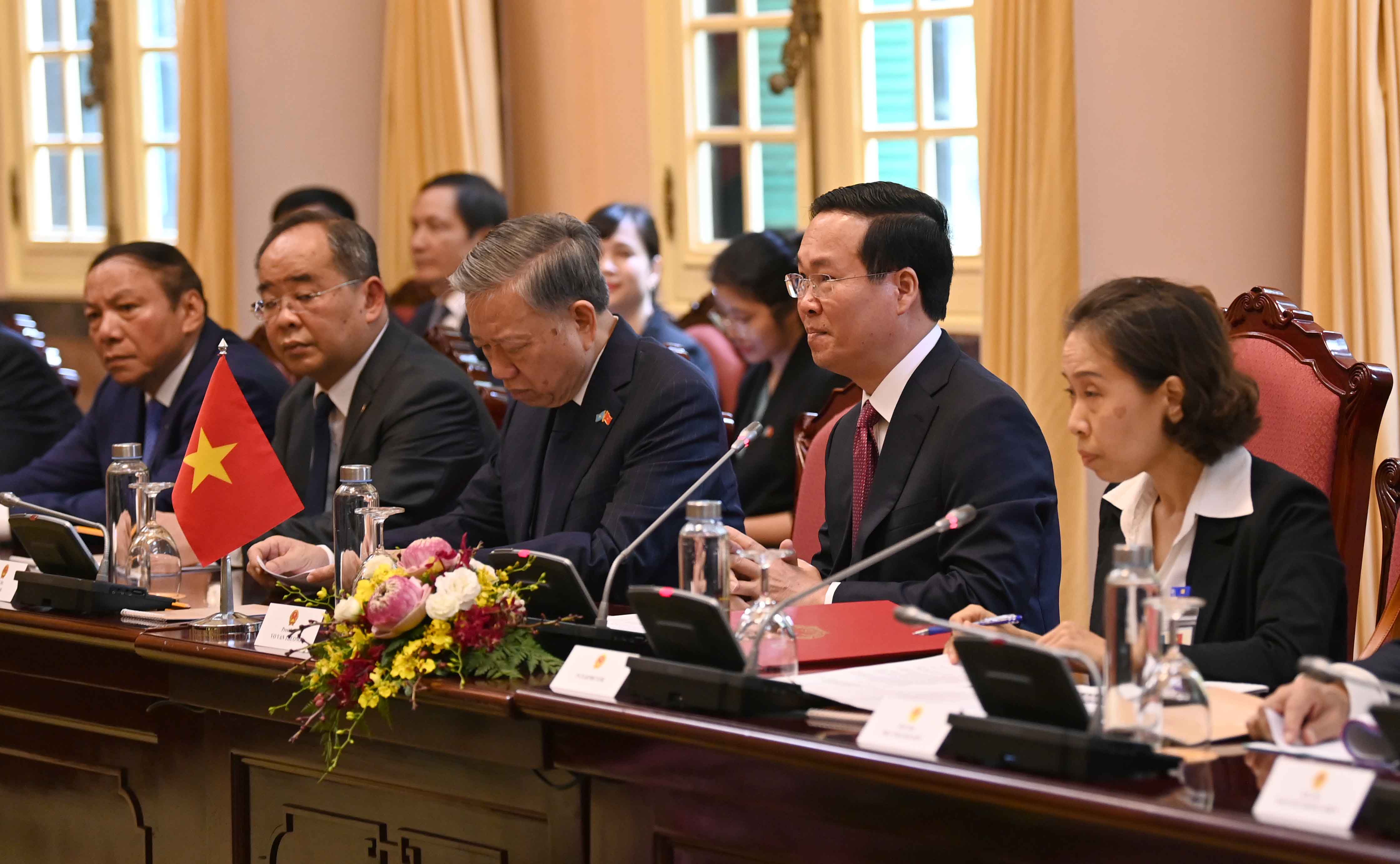 Затем президенты Казахстана и Вьетнама провели переговоры, в ходе которых были обсуждены перспективы развития сотрудничества в торгово-экономической, инвестиционной, энергетической, транспортно-логистической, агропромышленной и культурно-гуманитарной сферах.