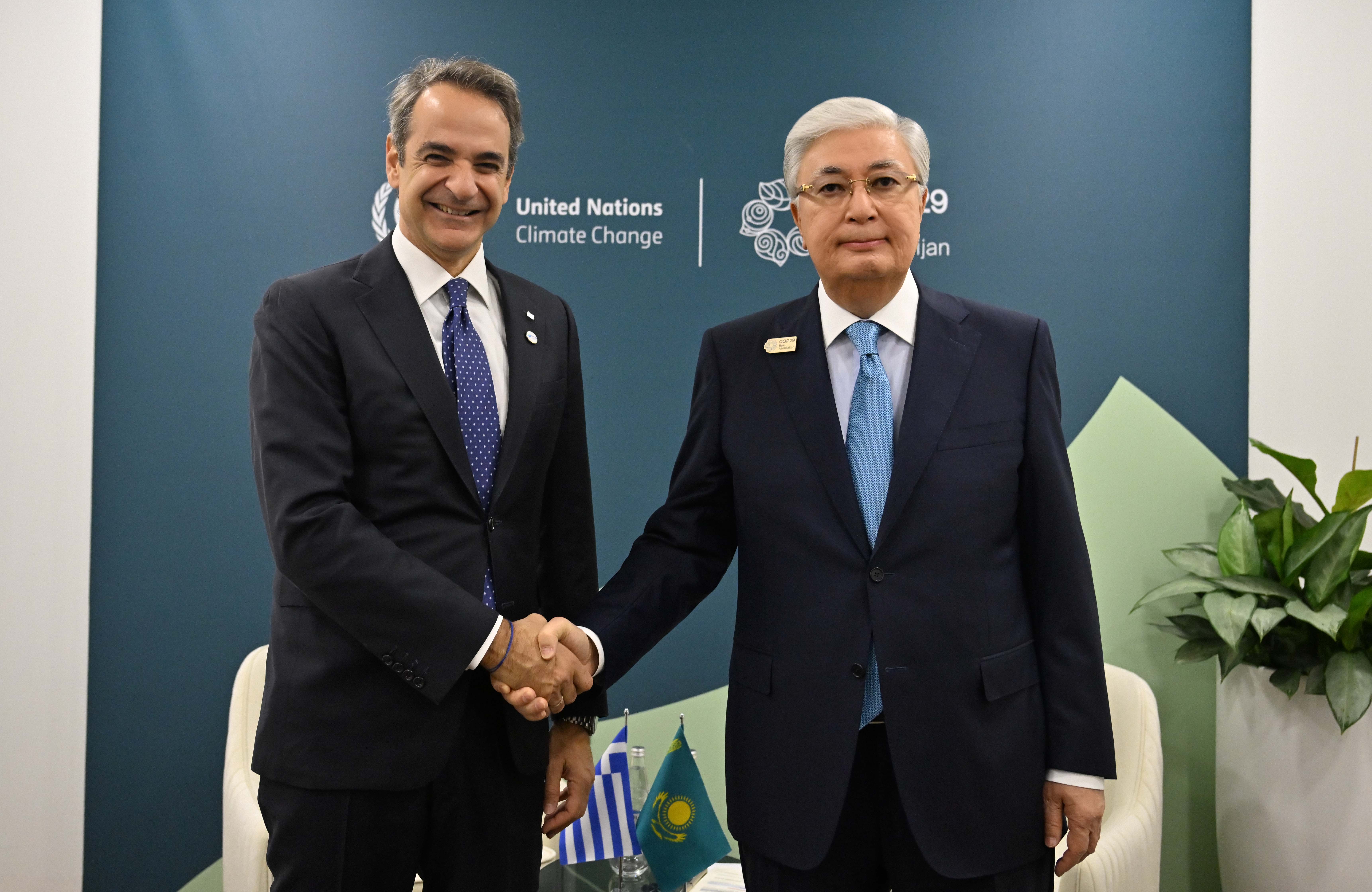 На полях Конференции сторон Рамочной конвенции ООН об изменении климата (COP29) Президент Касым-Жомарт Токаев провел встречу с Премьер-министром Греции Кириакосом Мицотакисом.