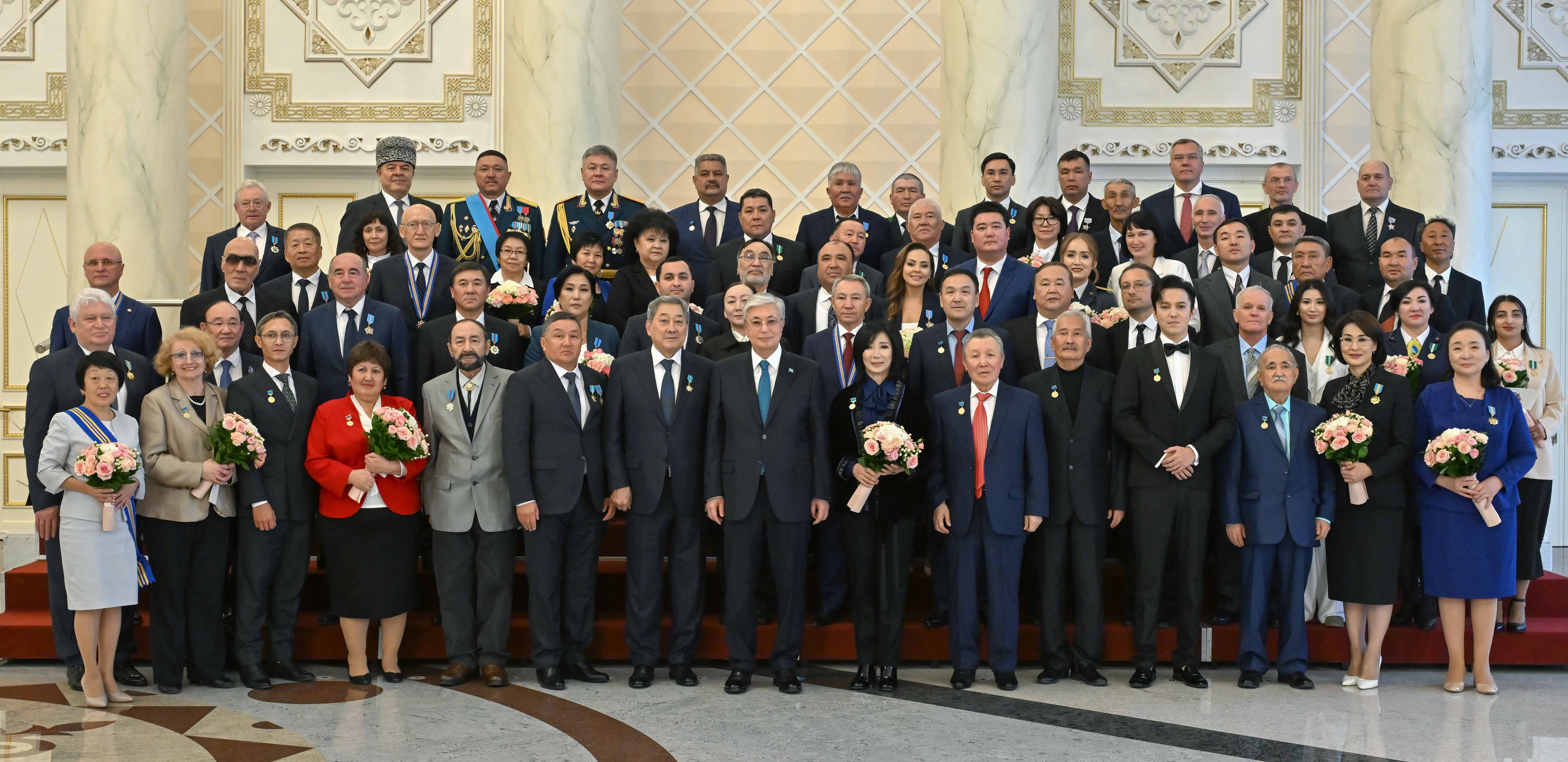 По завершении выступления Касым-Жомарт Токаев вручил высокие государственные награды, премии и звания ряду граждан за значительный вклад в развитие страны.