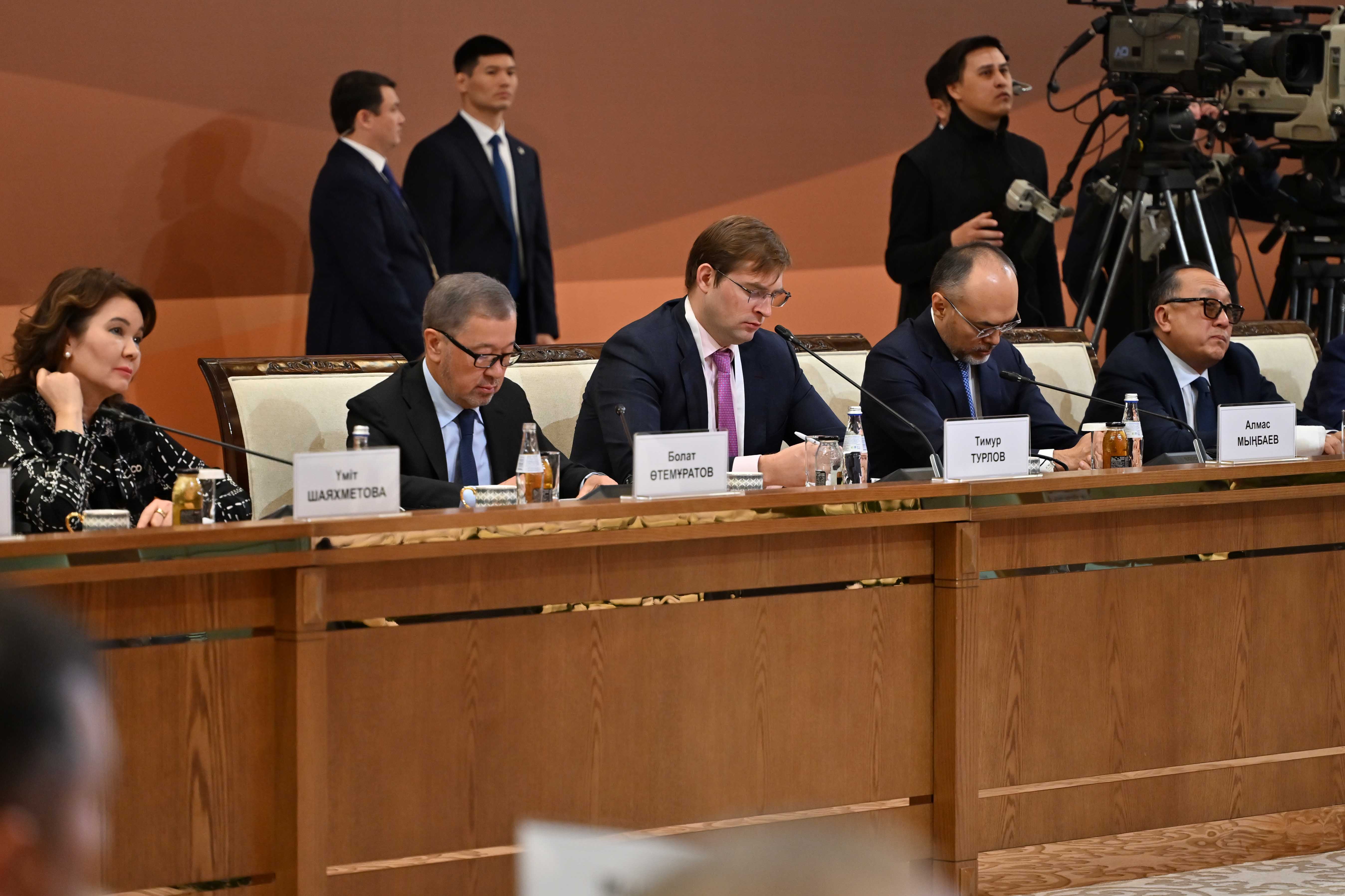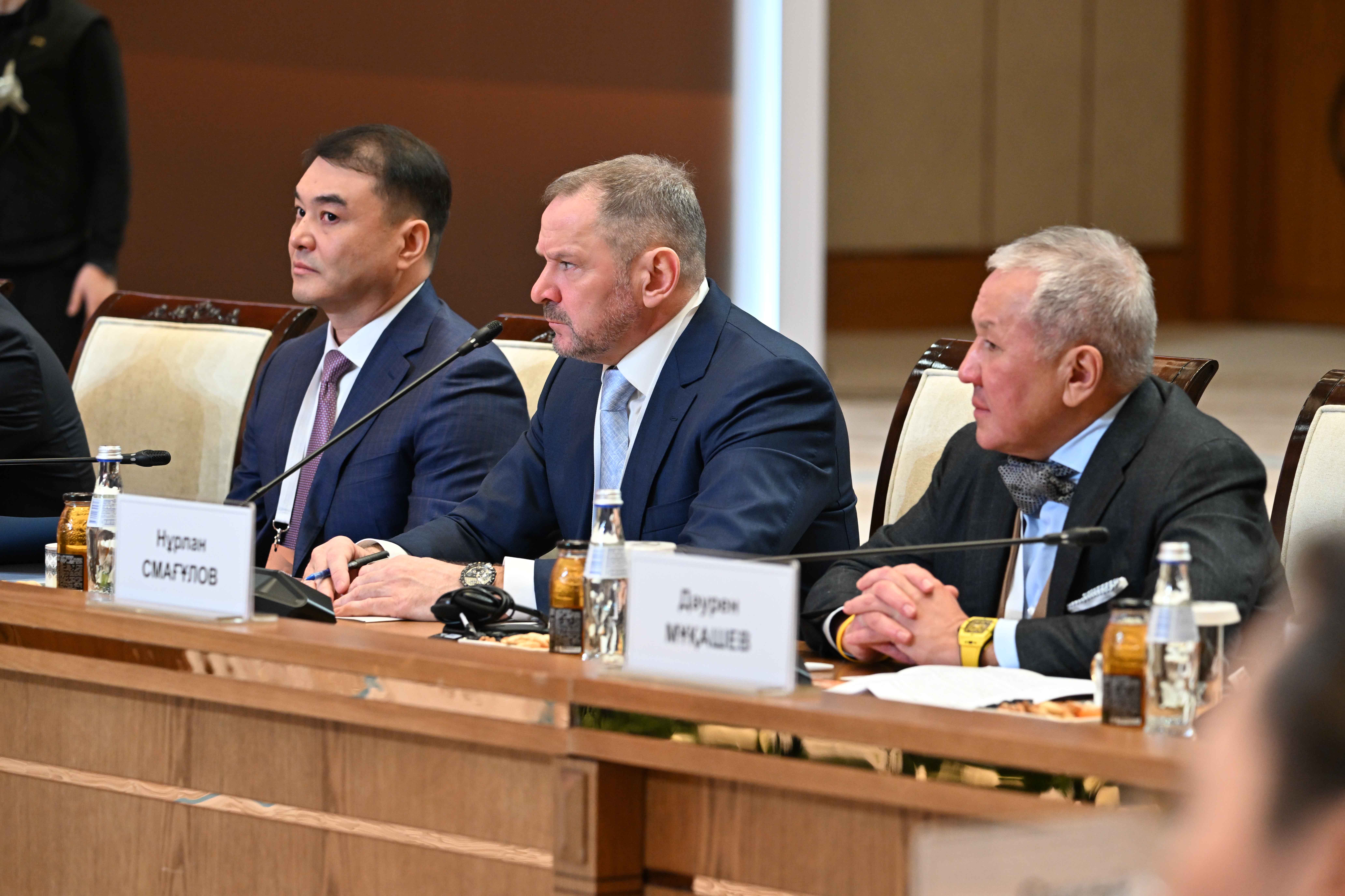 В ходе встречи с докладами выступили заместитель Премьер-министра – министр национальной экономики Серик Жумангарин, президент ТОО «Группа компаний Resmi», АО «RG Brands» Кайрат Мажибаев, председатель совета директоров ТОО «Казахмыс Холдинг» Эдуард Огай, главный исполнительный директор InDrive Арсен Томский, генеральный директор ТОО AUDACIA Express Бакытбек Кадиров, председатель правления АО «Народный Банк Казахстана» Умут Шаяхметова, председатель совета директоров холдинга BI-Group Айдын Рахимбаев, совладелец компании «Karazhal Operating», председатель президиума Национальной конфедерации работодателей Paryz Жумабек Жаныкулов, директор ТОО «Евразия инвест» Иван Георгиади, генеральный директор ТОО «Карагандинский фармацевтический комплекс» Сергей Барон, председатель президиума НПП «Атамекен» Раимбек Баталов.