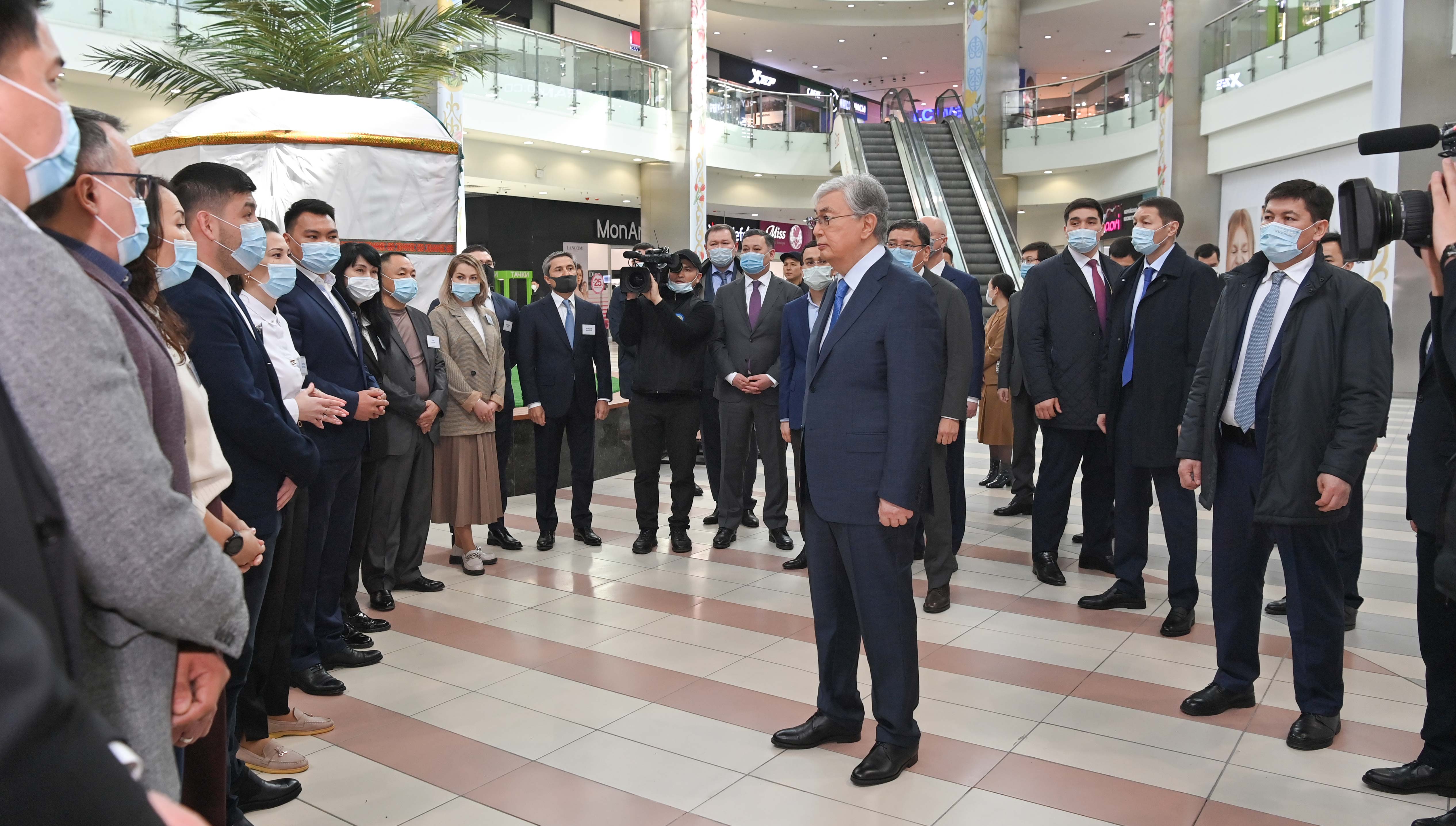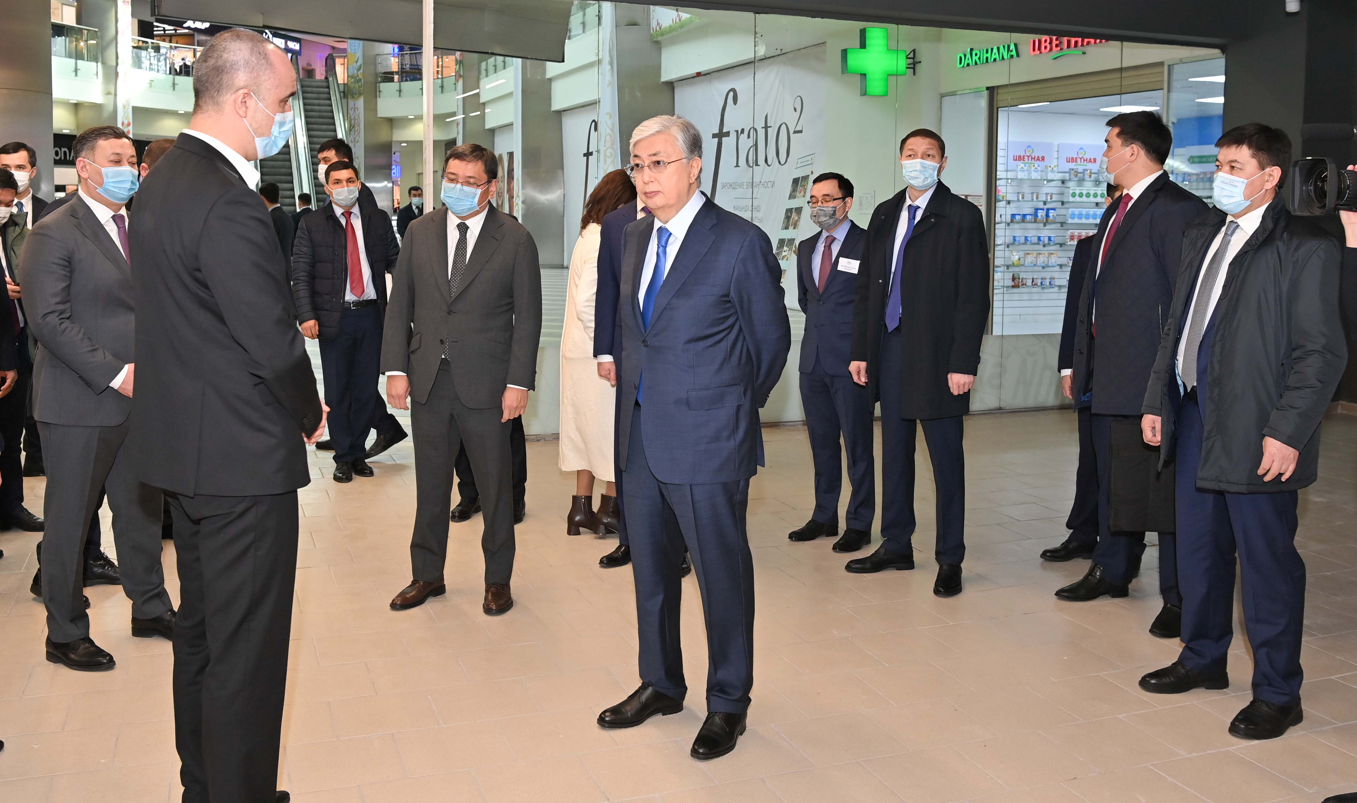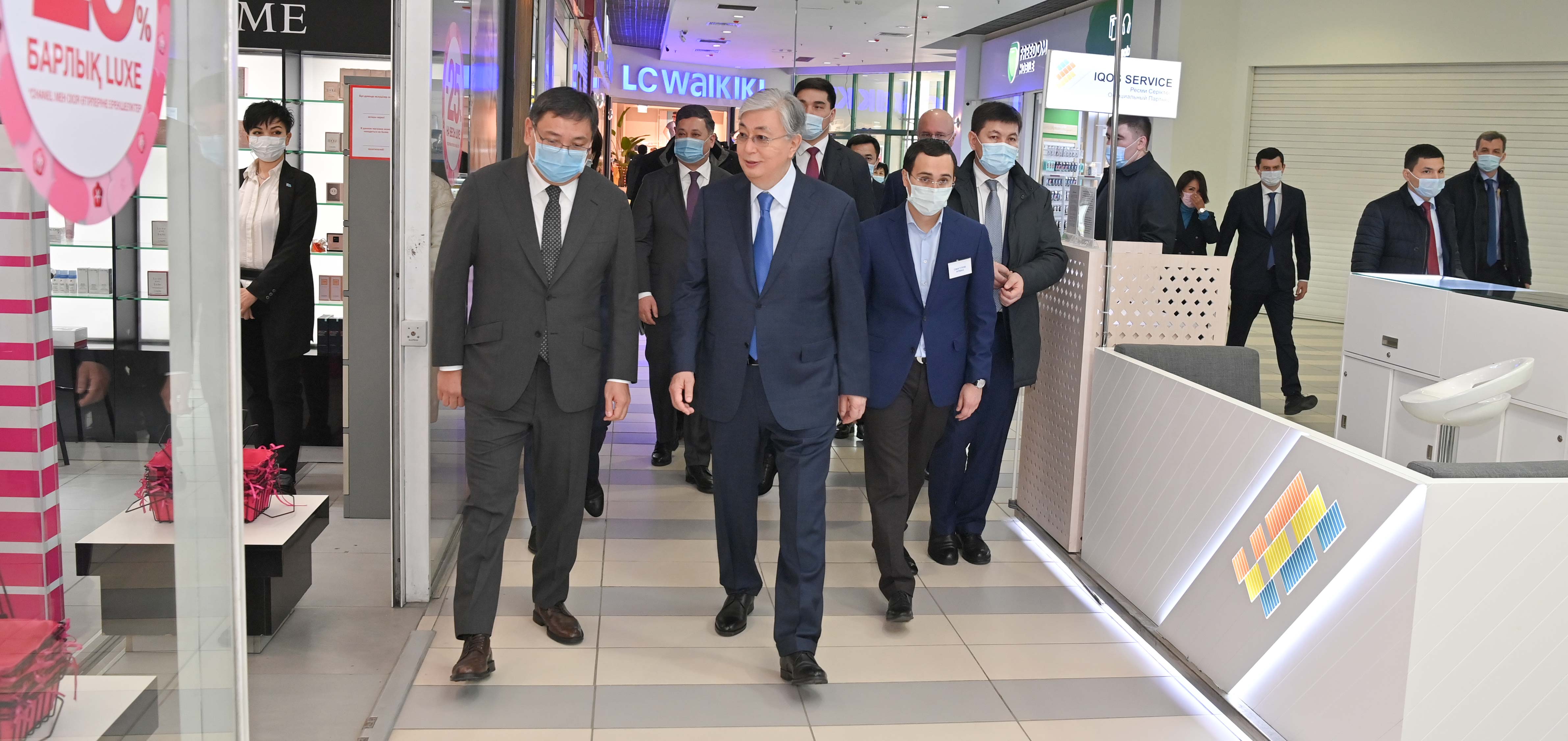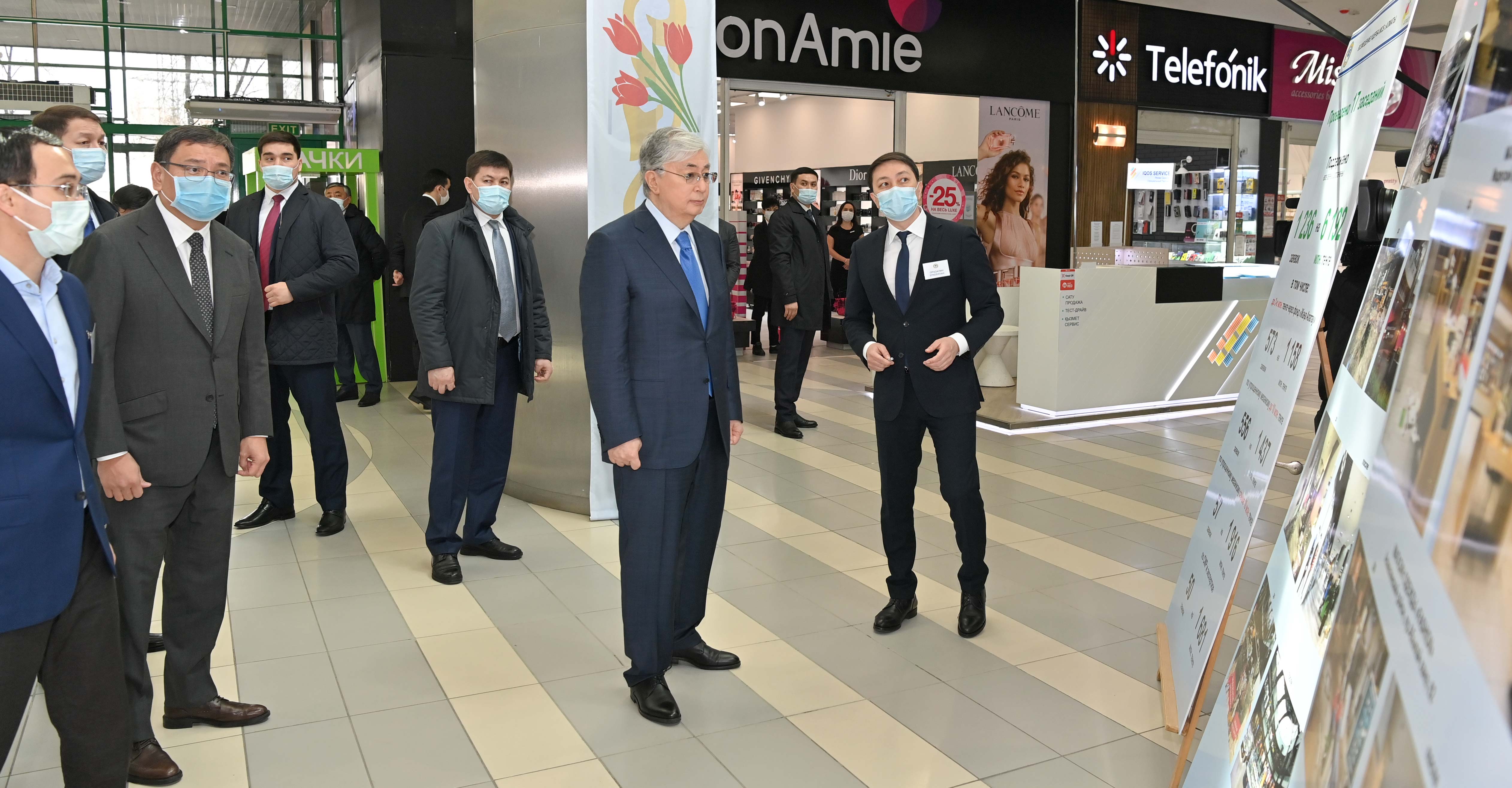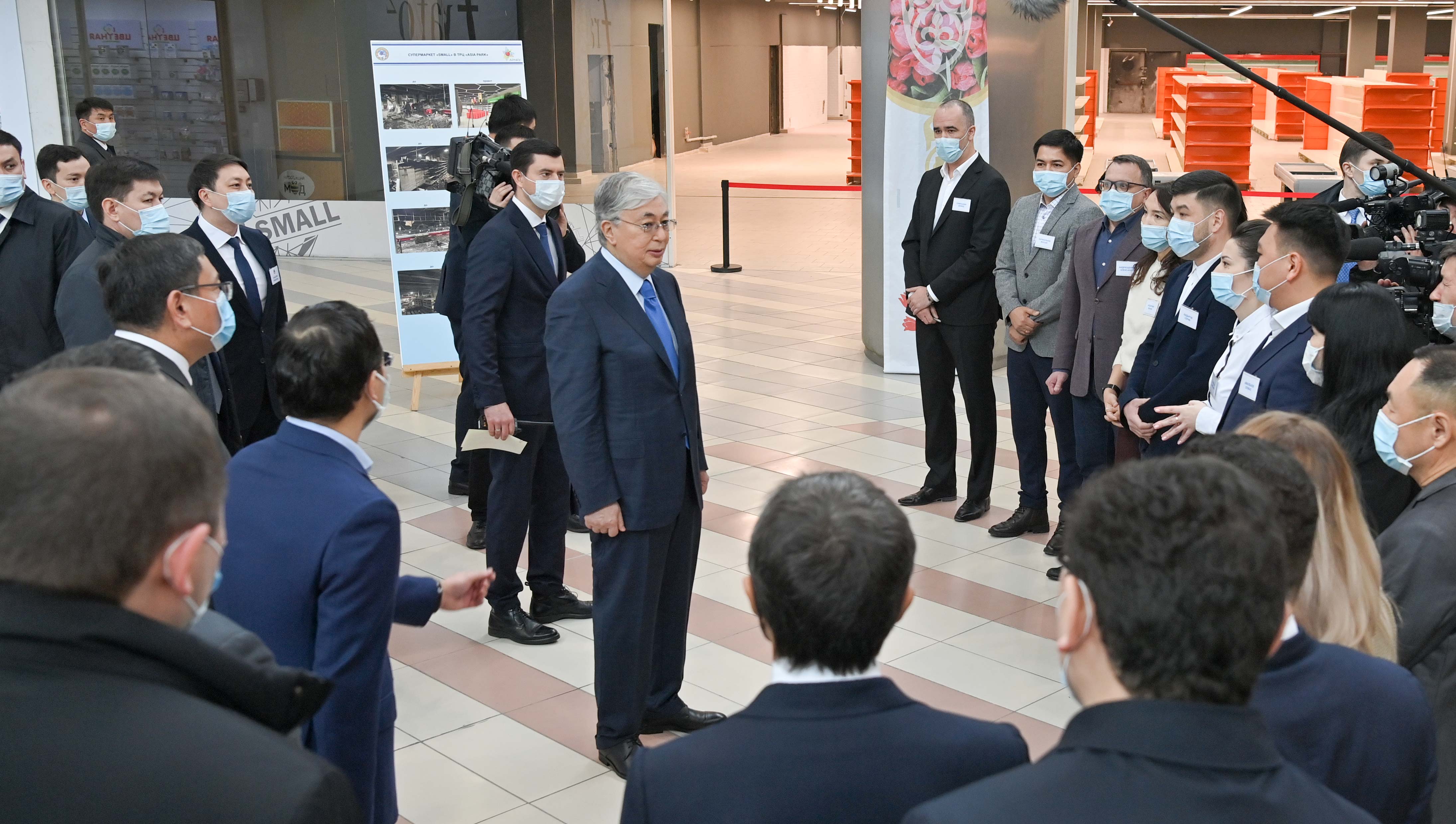 Касым-Жомарт Токаев посетил торгово-развлекательный центр «Asia Park» в Алматы, который пострадал в ходе январских беспорядков.