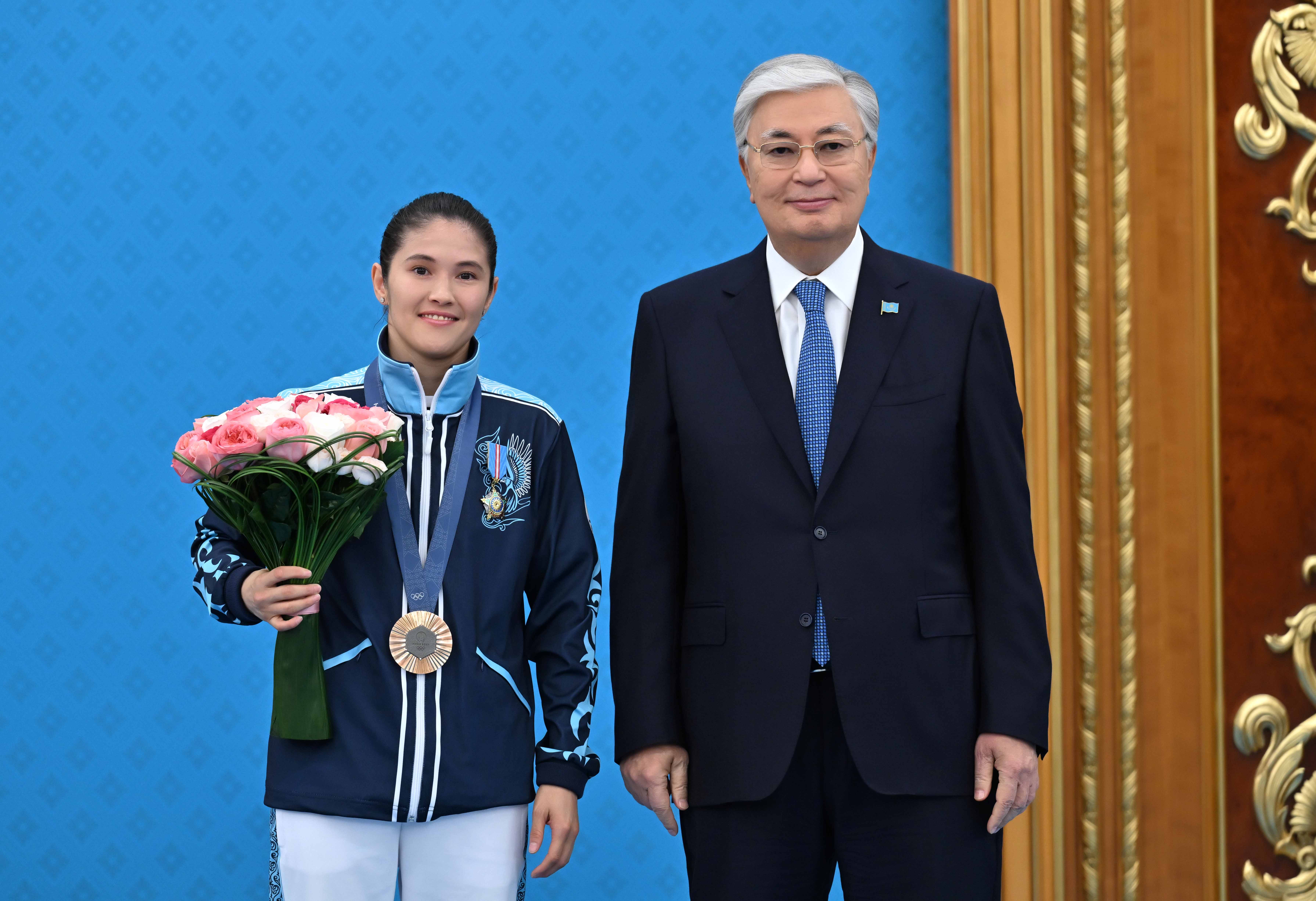 – Историческим достижением также можно назвать серебряную медаль Наримана Курбанова. Впервые представитель отечественной гимнастики поднялся на олимпийский пьедестал. Замечательно выступили в Париже Демеу Жадыраев и Нурбек Оралбай. Наши стрелки Александра Ле и Ислам Сатпаев завоевали бронзу в стрельбе из пневматической винтовки. Это первая за 28 лет награда нашей страны в этом виде спорта. Дзюдоист Гусман Кыргызбаев и представительница сборной по боксу Назым Кызайбай вошли в число призеров. Каждая страна отправляет на Олимпиаду своих сильнейших спортсменов. Одержать победу на международном турнире и стать лучшим среди тысяч атлетов – задача не из легких. В таких соревнованиях планетарного масштаба каждая медаль в копилку страны имеет особое значение. Поэтому сегодня я хотел бы выразить искреннюю благодарность всем нашим спортсменам, завоевавшим награды на Олимпийских играх. Победы на аренах достигаются большими усилиями не только спортсменов, но и многих специалистов этой сферы. Выражаю благодарность тренерам и другим профессионалам, внесшим вклад в подготовку олимпийцев. Руководители Национального олимпийского комитета придали новый импульс развитию международного сотрудничества. В ответственные моменты вы были рядом с нашими спортсменами и оказывали им необходимую поддержку. Убежден, Национальный олимпийский комитет продолжит начатую работу и добьется конкретных результатов в будущем, – отметил Глава государства.