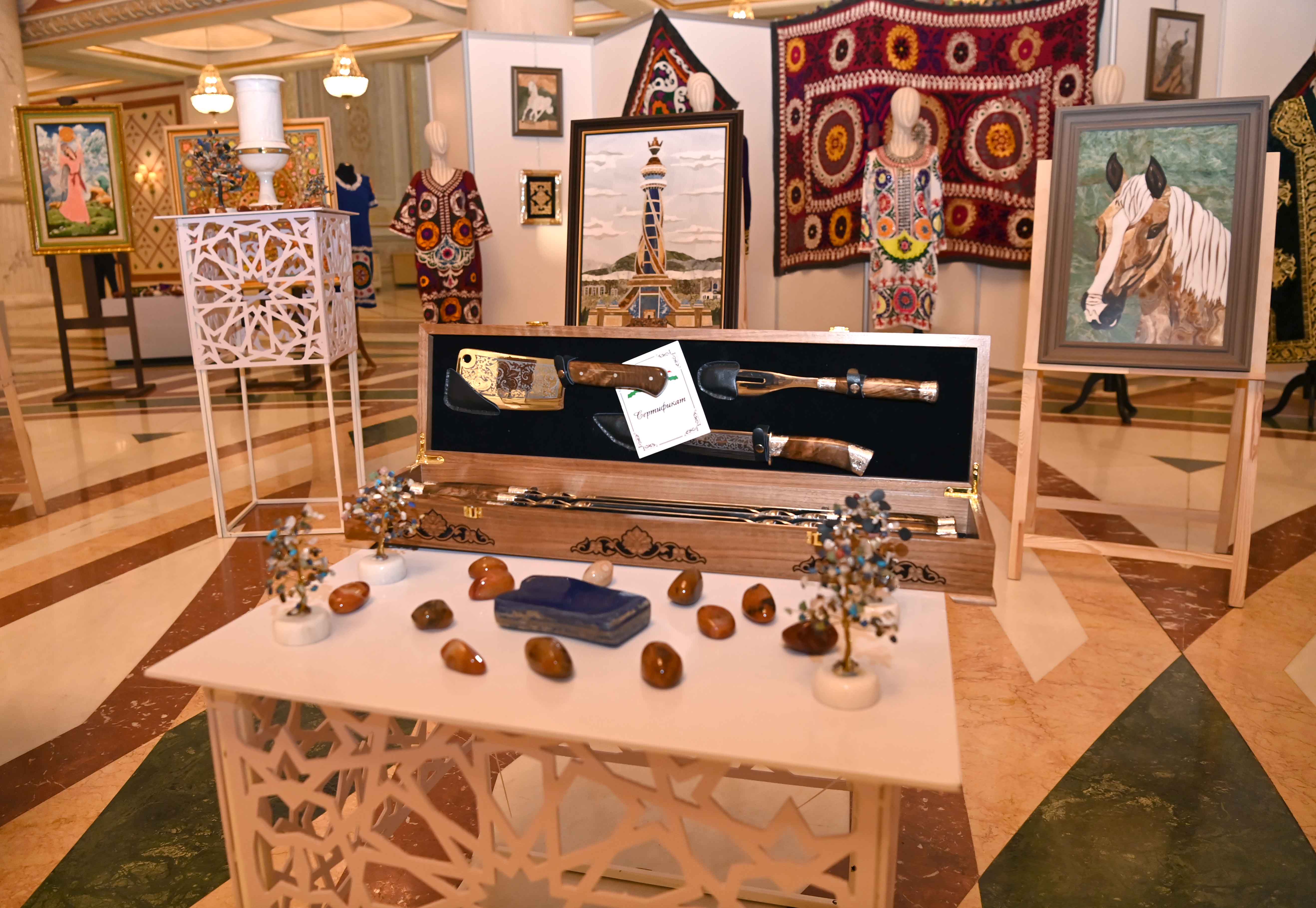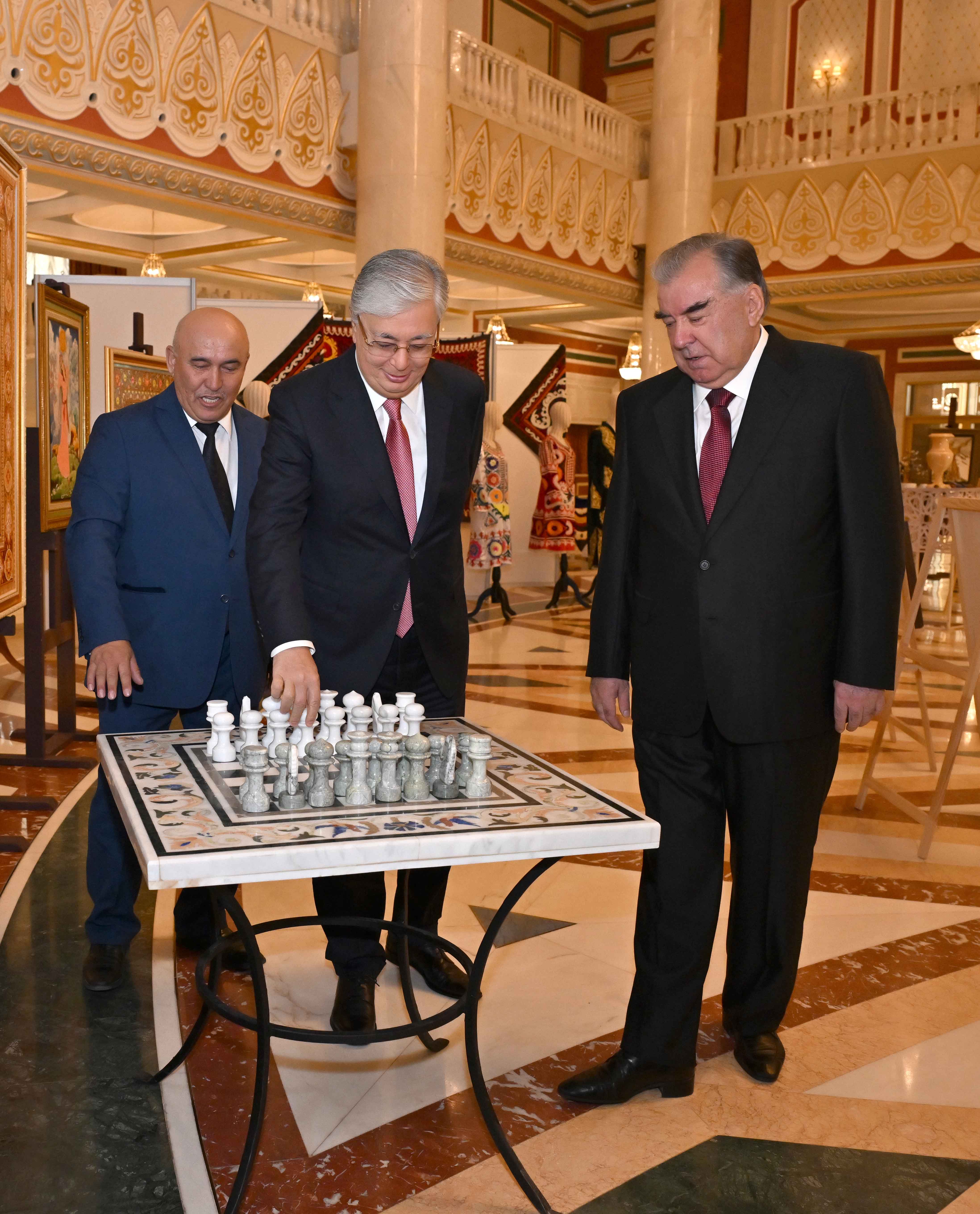 В рамках мероприятия Касым-Жомарт Токаев и Эмомали Рахмон осмотрели выставку народного творчества Таджикистана, организованную  в театре  «Астана Опера». В экспозицию вошли более 200 ремесленных изделий, изготовленных из камня, дерева, глины и драгоценных металлов. Также были представлены национальные костюмы с использованием традиционных орнаментов, картины известных таджикских художников и фотографии знаковых объектов Таджикистана.