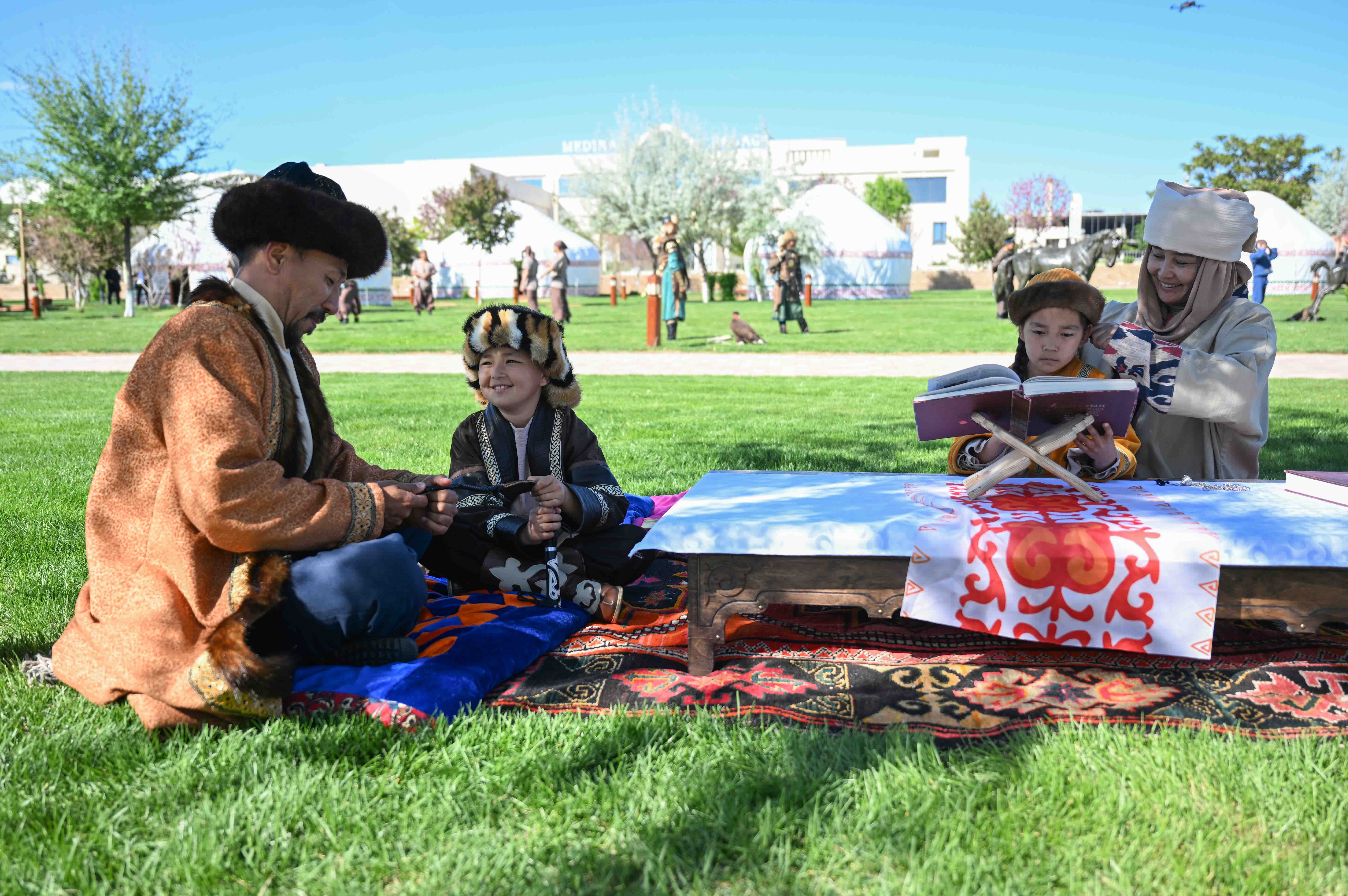 Продолжением программы стала театрализованная постановка, посвященная казахским обычаям и обрядам.