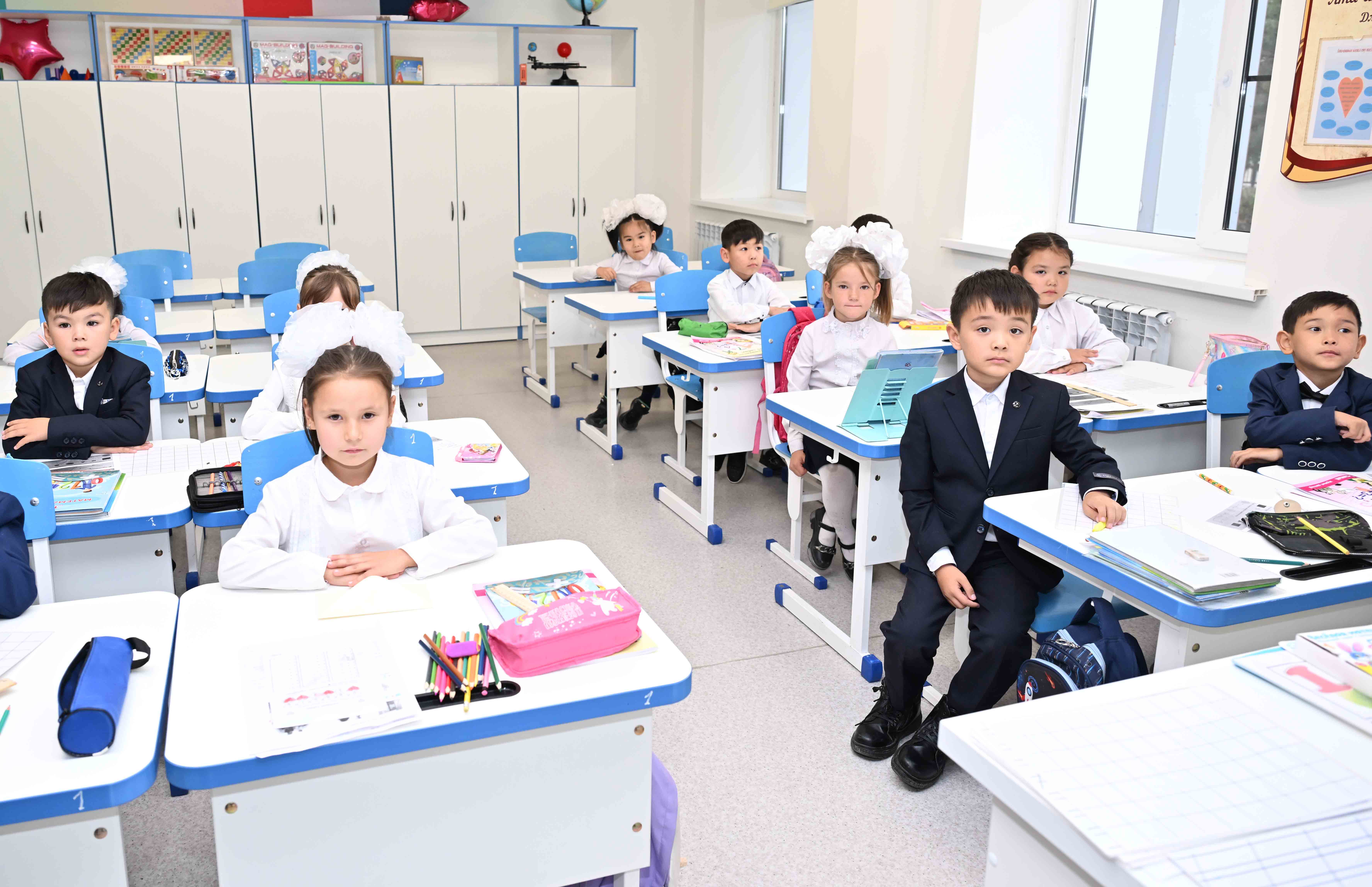 Затем Глава государства посетил среднюю школу в Уштобе.