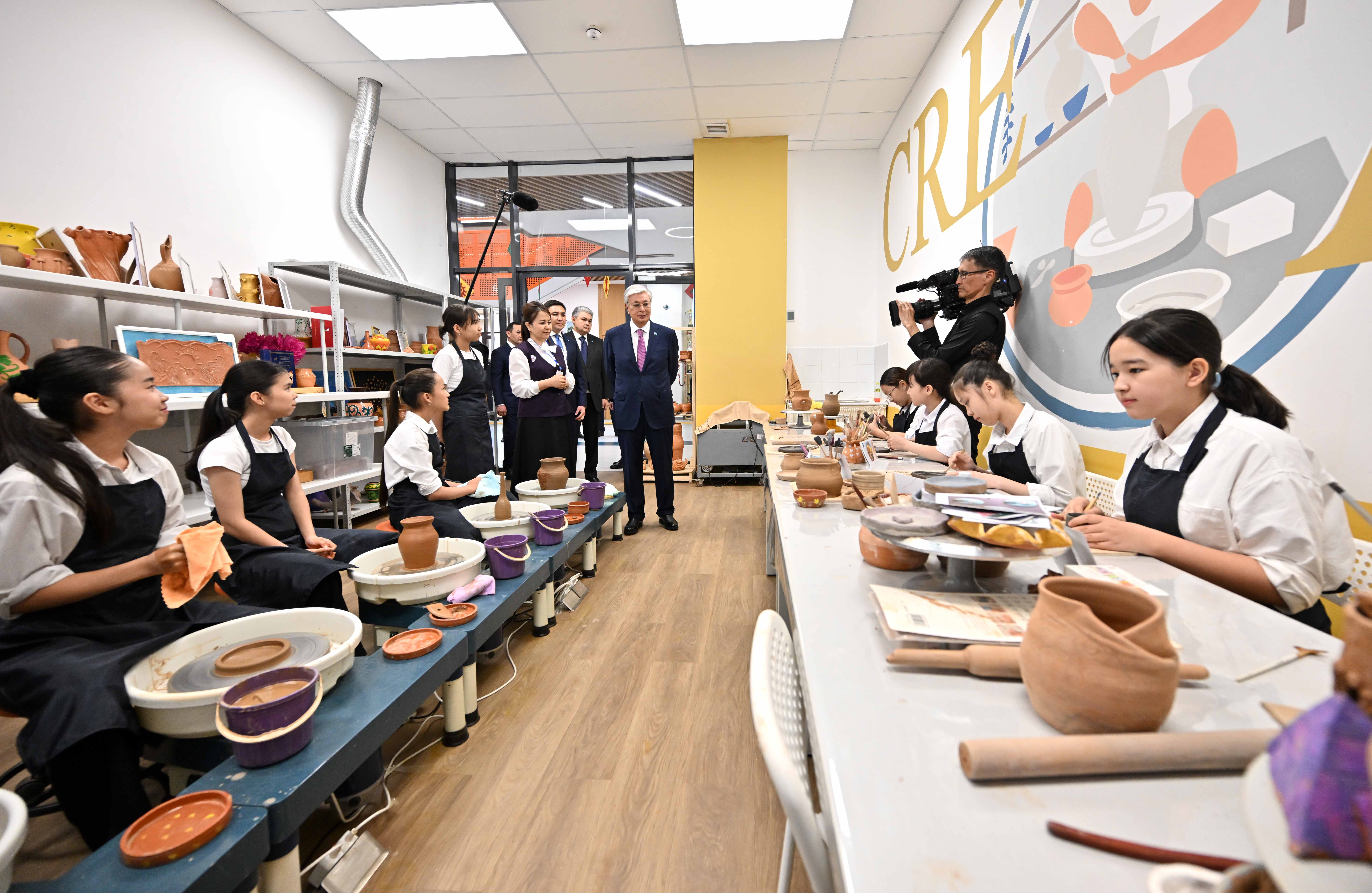 Глава государства осмотрел центр и побеседовал с учащимися.