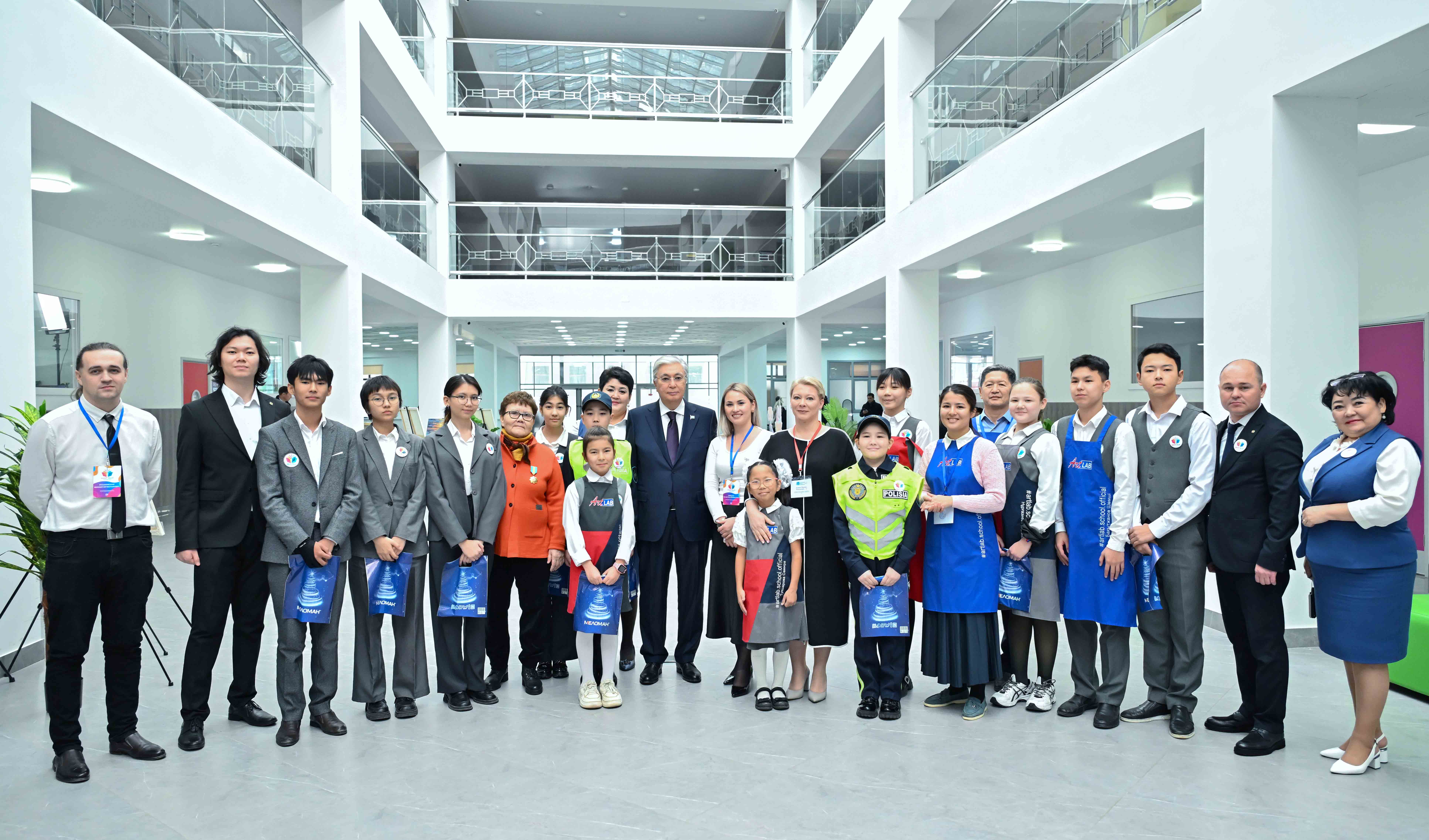 Глава государства посетил школу-гимназию Smart Bilim в Актобе, построенную за счет частных инвестиций.
