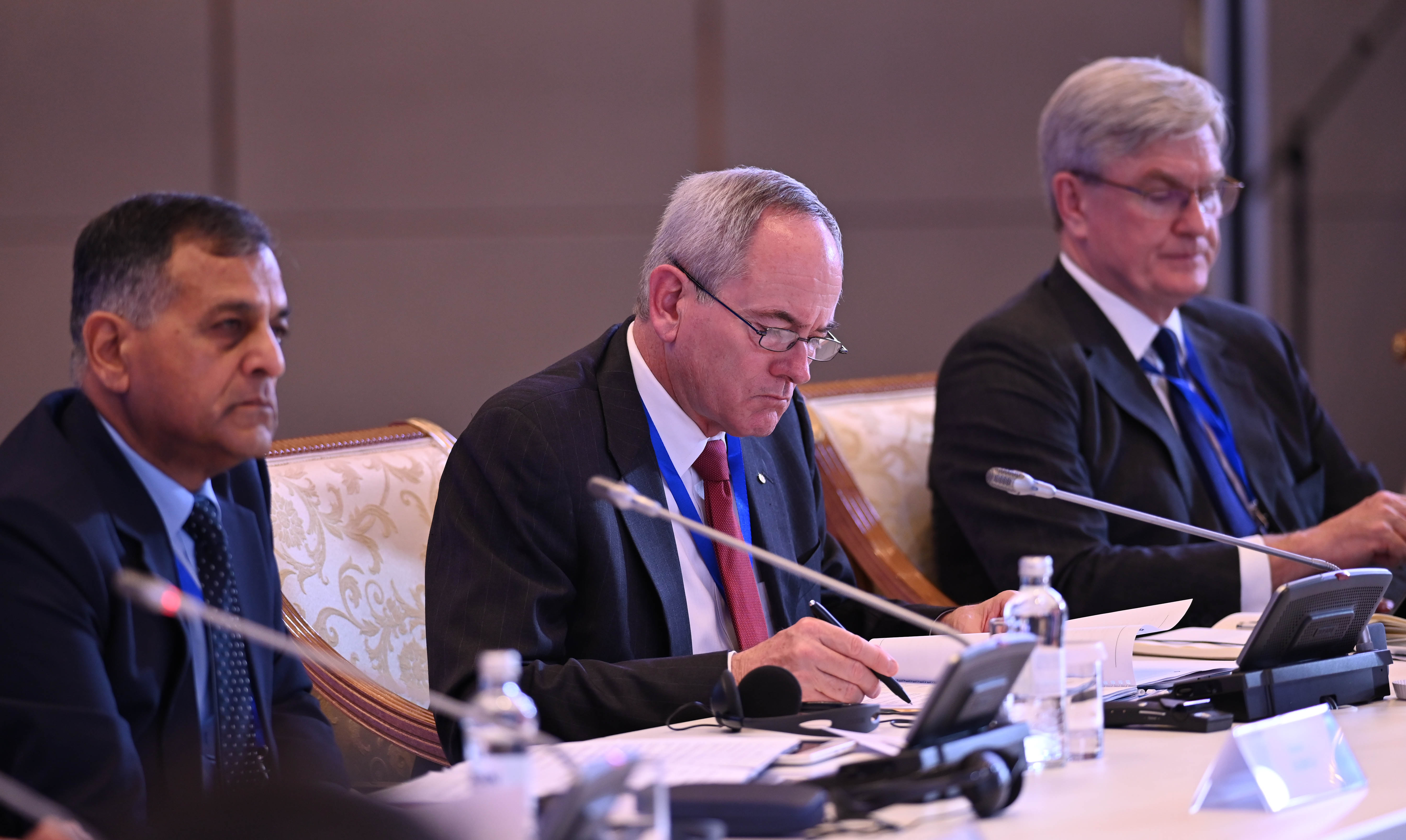 В ходе заседания также выступили Президент Европейского банка реконструкции и развития Одиль Рено-Бассо, заместитель Премьер-министра – министр торговли и интеграции Бахыт Султанов, министр национальной экономики Алибек Куантыров, председатель правления Ассоциации «Казахстанский Совет иностранных инвесторов» Ерлан Досымбеков, вице-президент Азиатского банка развития Ашок Лаваса, исполнительный вице-президент корпорации Chevron Джеймс Джонсон, главный исполнительный директор компании Citigroup в странах Европы, Ближнего Востока и Африки Дэвид Ливингстон, председатель Совета директоров ERG Sarl Александр Машкевич, старший вице-президент корпорации Exxon Mobil Нил Чапман, президент компании General Electric в России и СНГ Бела Ференци, президент компании Philip Morris International по Восточной Европе Марко Мариотти, президент АО «Полиметалл УК» Игорь Финогенов, управляющий партнер PwC в странах Центральной и Восточной Европы Ник Кош, главный исполнительный директор группы Veon Ltd Каан Терзиоглу, старший вице-президент по Азиатско-Тихоокеанскому региону TotalEnergies Жулиен Пуже.