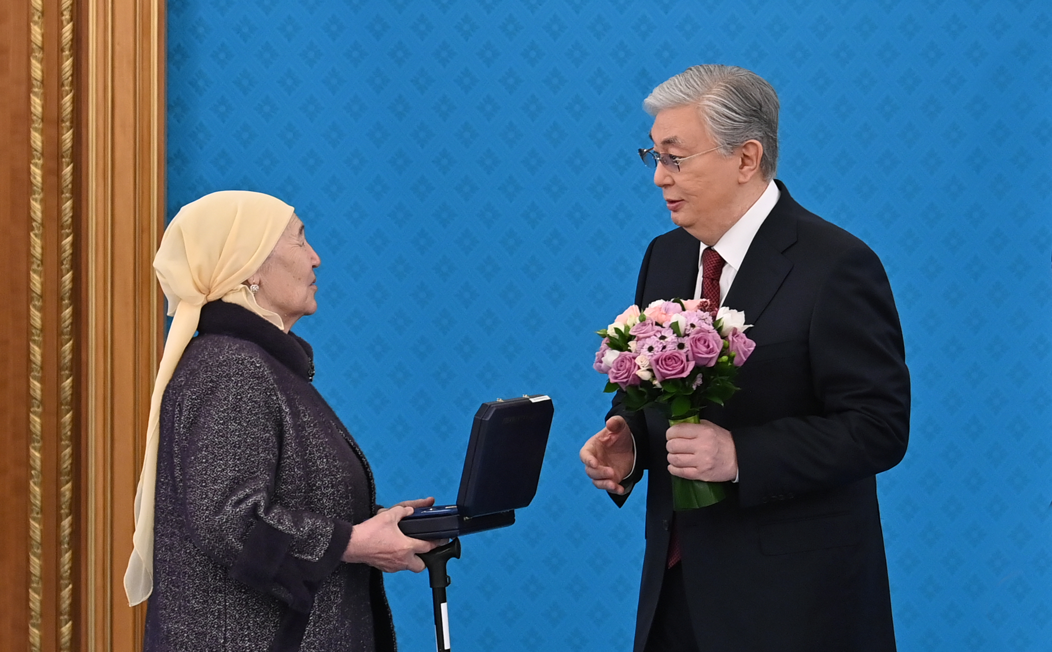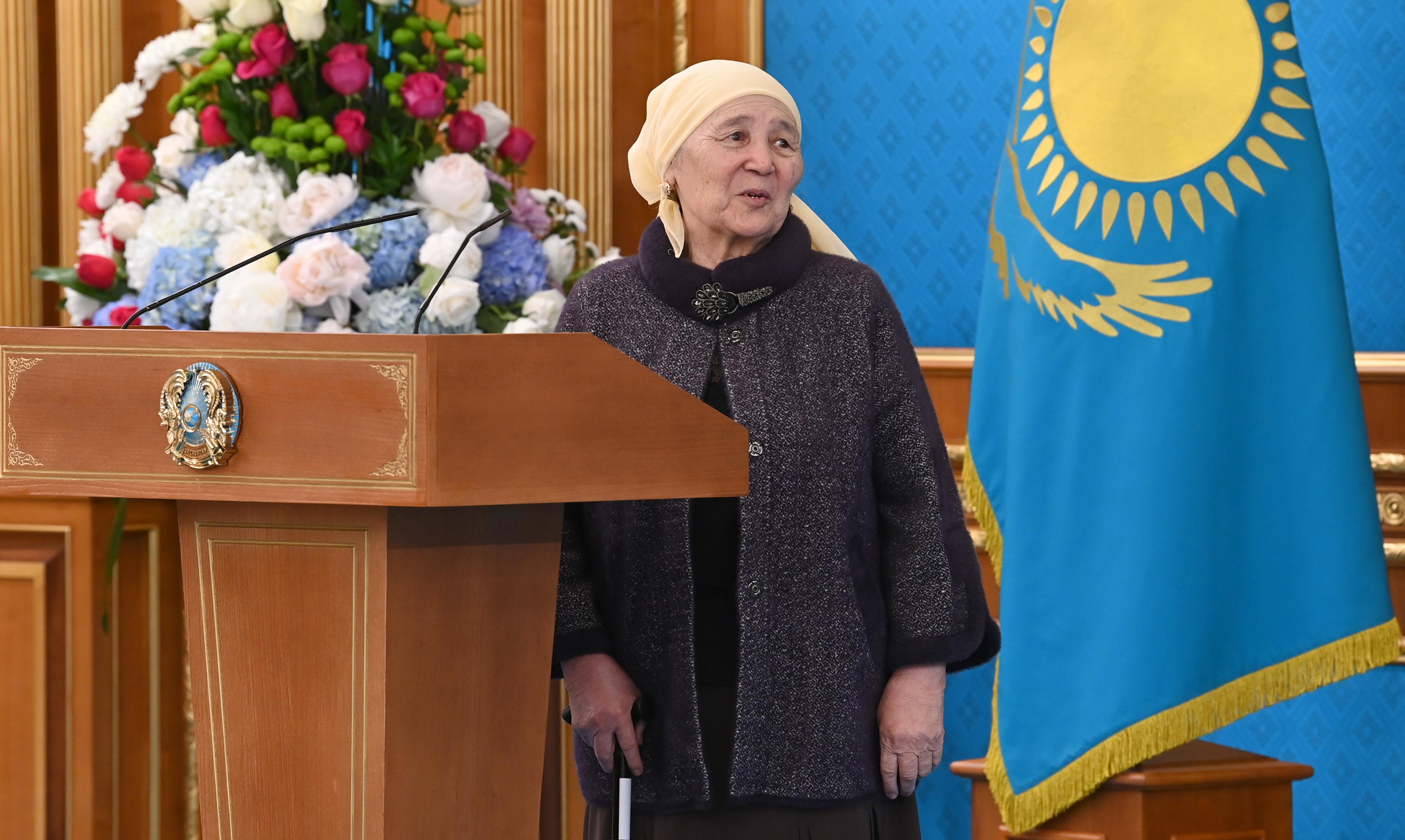 На торжественной церемонии присутствовали родственники Тулеугали Абдыбекова и Ибраима Сулейменова, которым Касым-Жомарт Токаев вручил знаки особого отличия – Золотую звезду и орден «Отан». Награда Александра Несмиянова займет почетное место в музее. Родственница Тулеугали Абдыбекова Айгуль Кемелбаева поблагодарила Касым-Жомарта Токаева и всех отвественных лиц, внесших вклад в увековечивание имени ее прославленного деда. Младшая сестра Ибраима Сулейменова Айткуль Сулейменова выразила искреннюю признательность Главе государства и пожелала ему крепкого здоровья и успехов в построении Нового Казахстана.