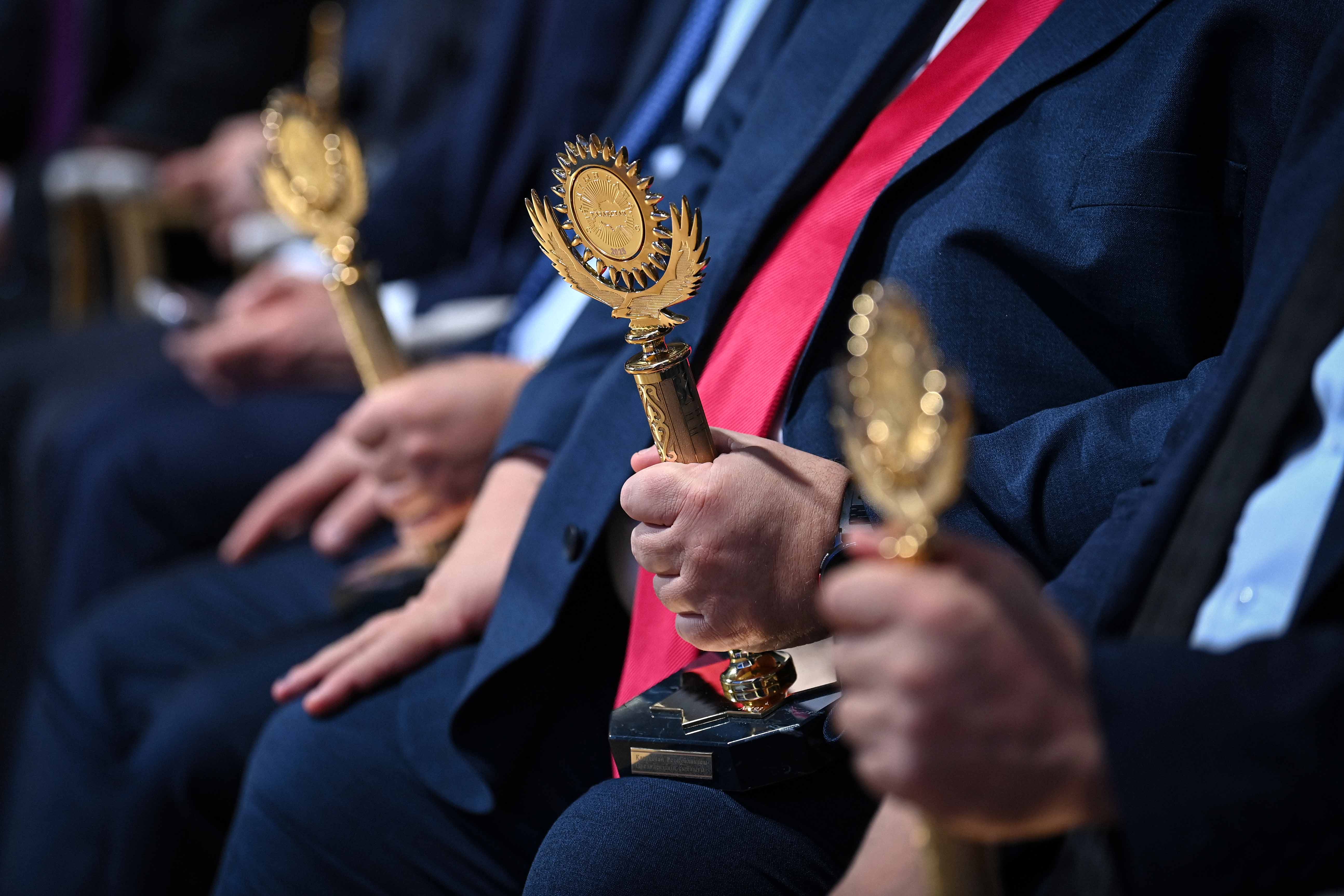 Искренне поздравляю победителей конкурсов «Алтын сапа», «Парыз» и «Лучший товар Казахстана», которых мы вновь чествуем согласно сложившейся традиции.