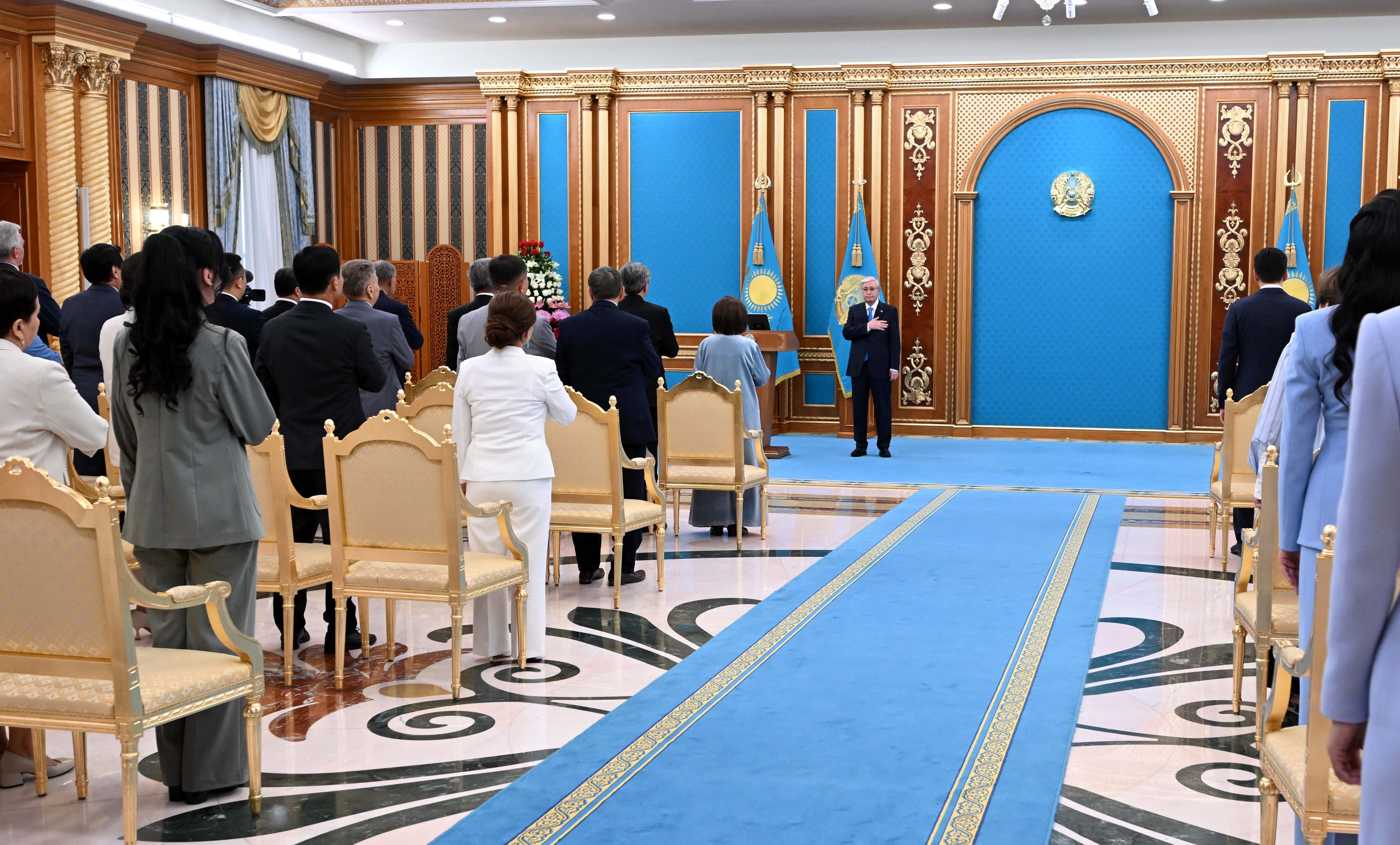 Затем по ежегодной традиции Касым-Жомарт Токаев вручил группе журналистов государственные награды. Многие представители медиа-отрасли были отмечены премиями, грантами и благодарностью Президента.
