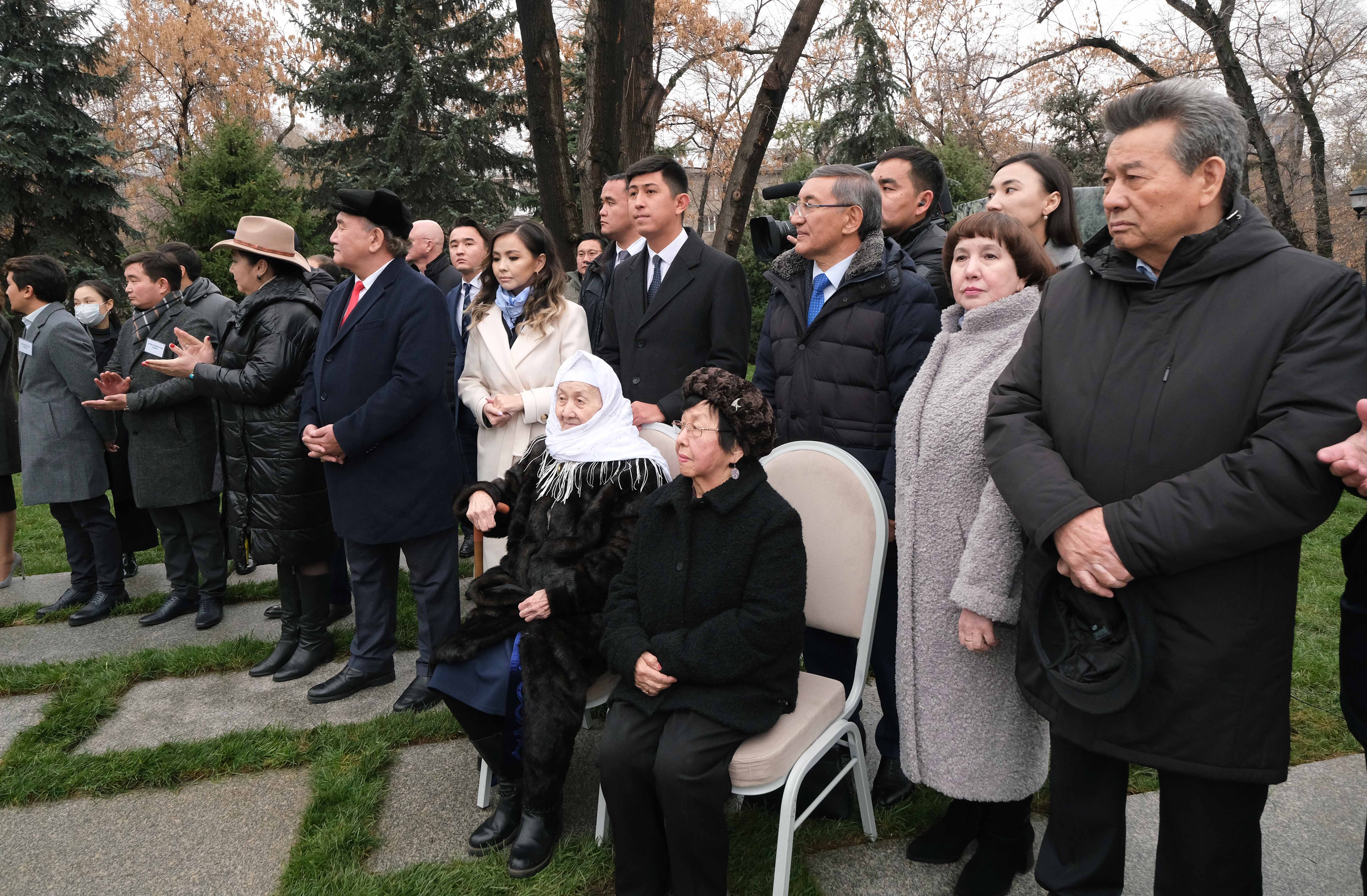 По завершении торжественной церемонии Глава государства побеседовал с потомками великого деятеля, представителями творческой интеллигенции, а также авторами памятника Айдосом Буркитбаевым и Тимуром Ермухаметовым.