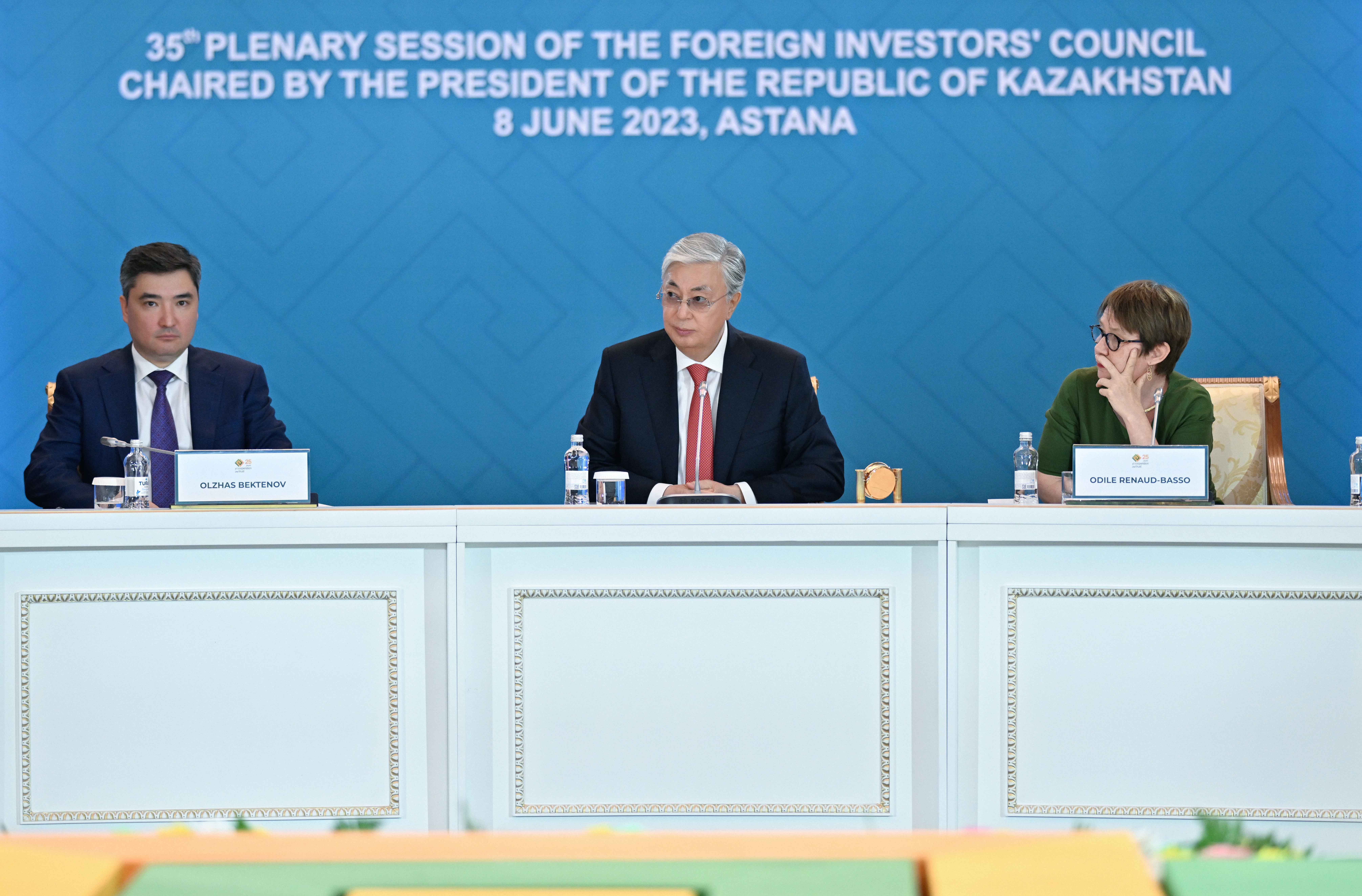 Открывая мероприятие, Глава государства выразил признательность всем делегатам за участие в 35-м пленарном заседании Совета иностранных инвесторов и отметил символичность его проведения вместе с первым Международным форумом Астана. Он также сообщил, что в этом году отмечается 25-летие Совета иностранных инвесторов.