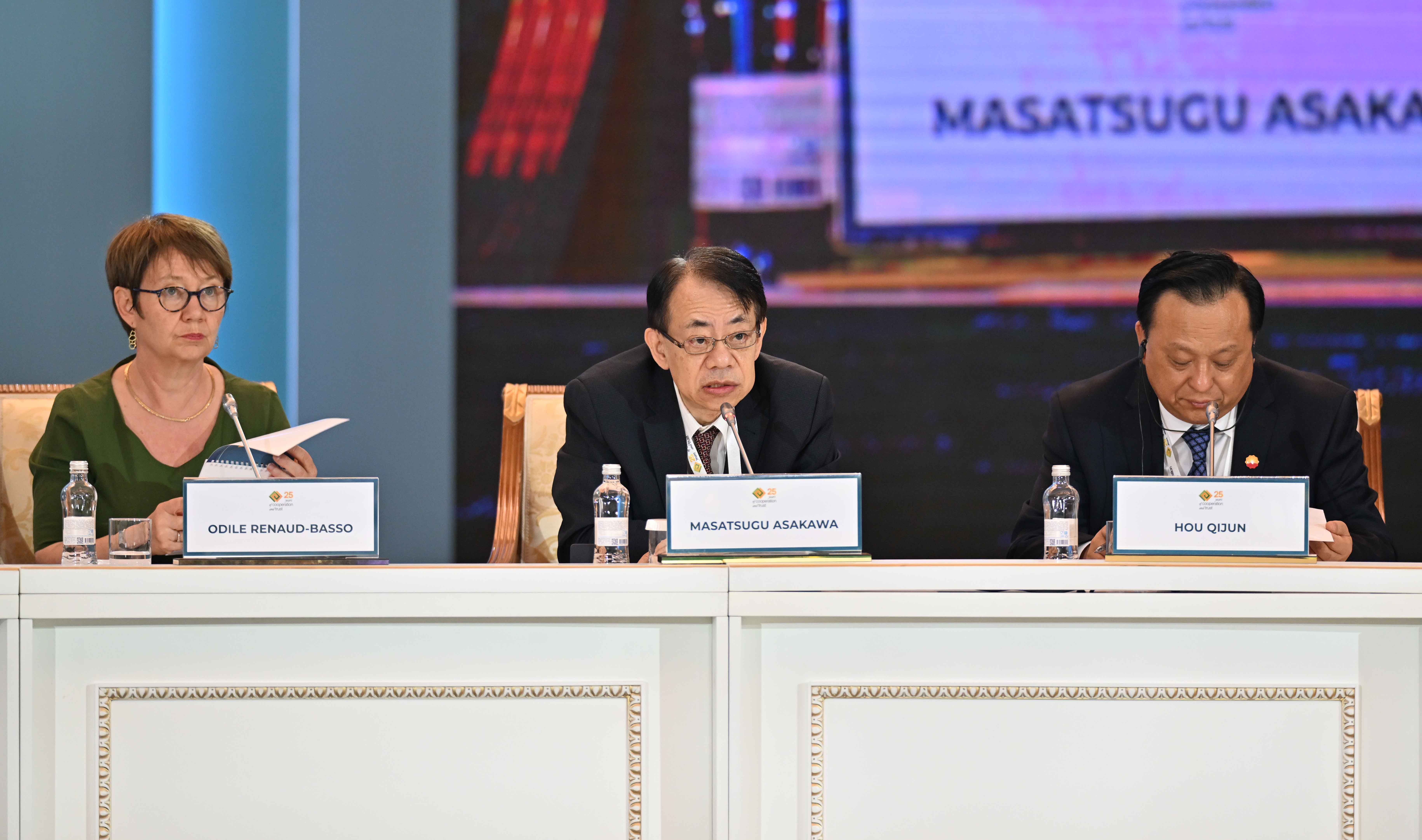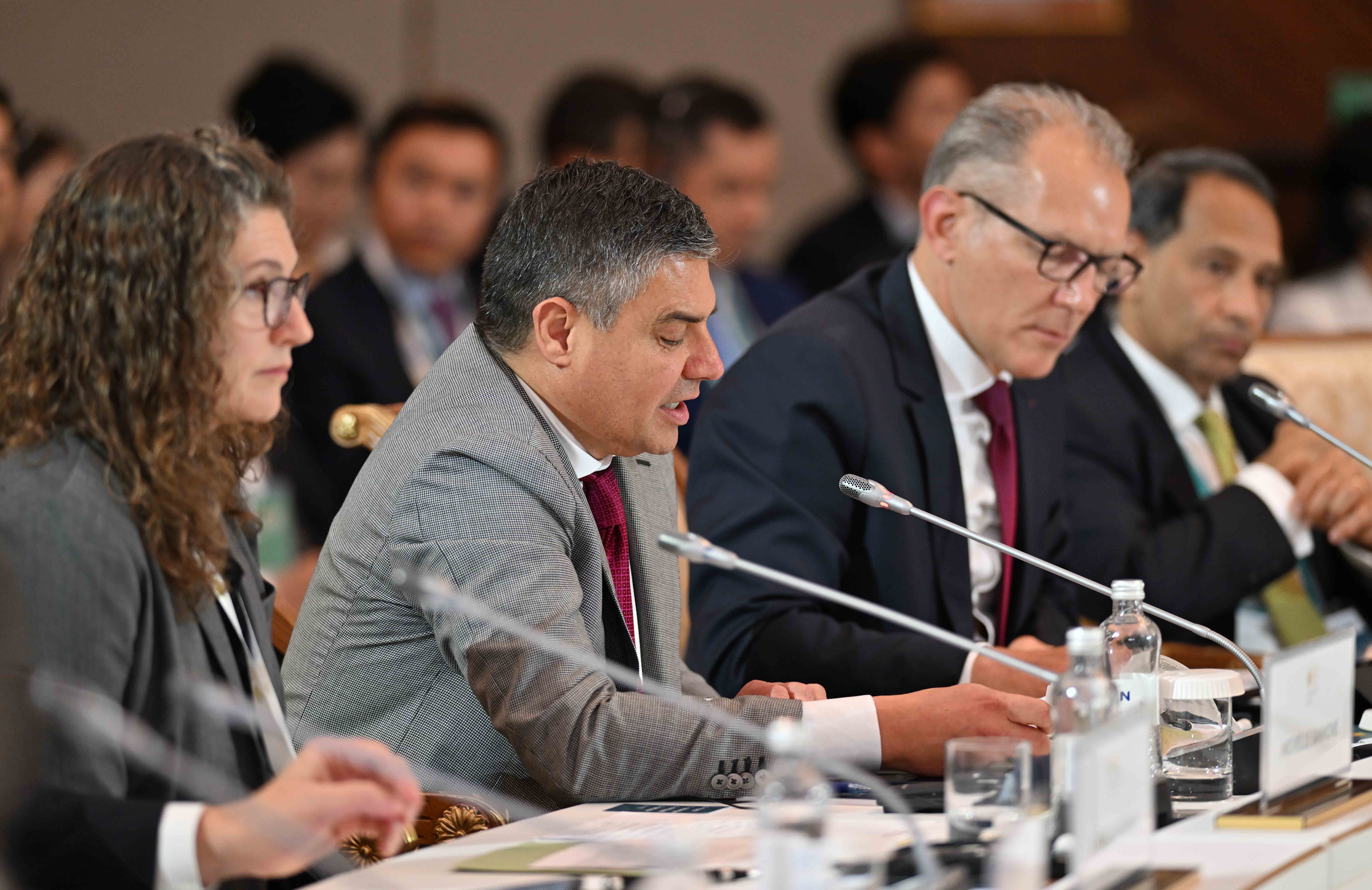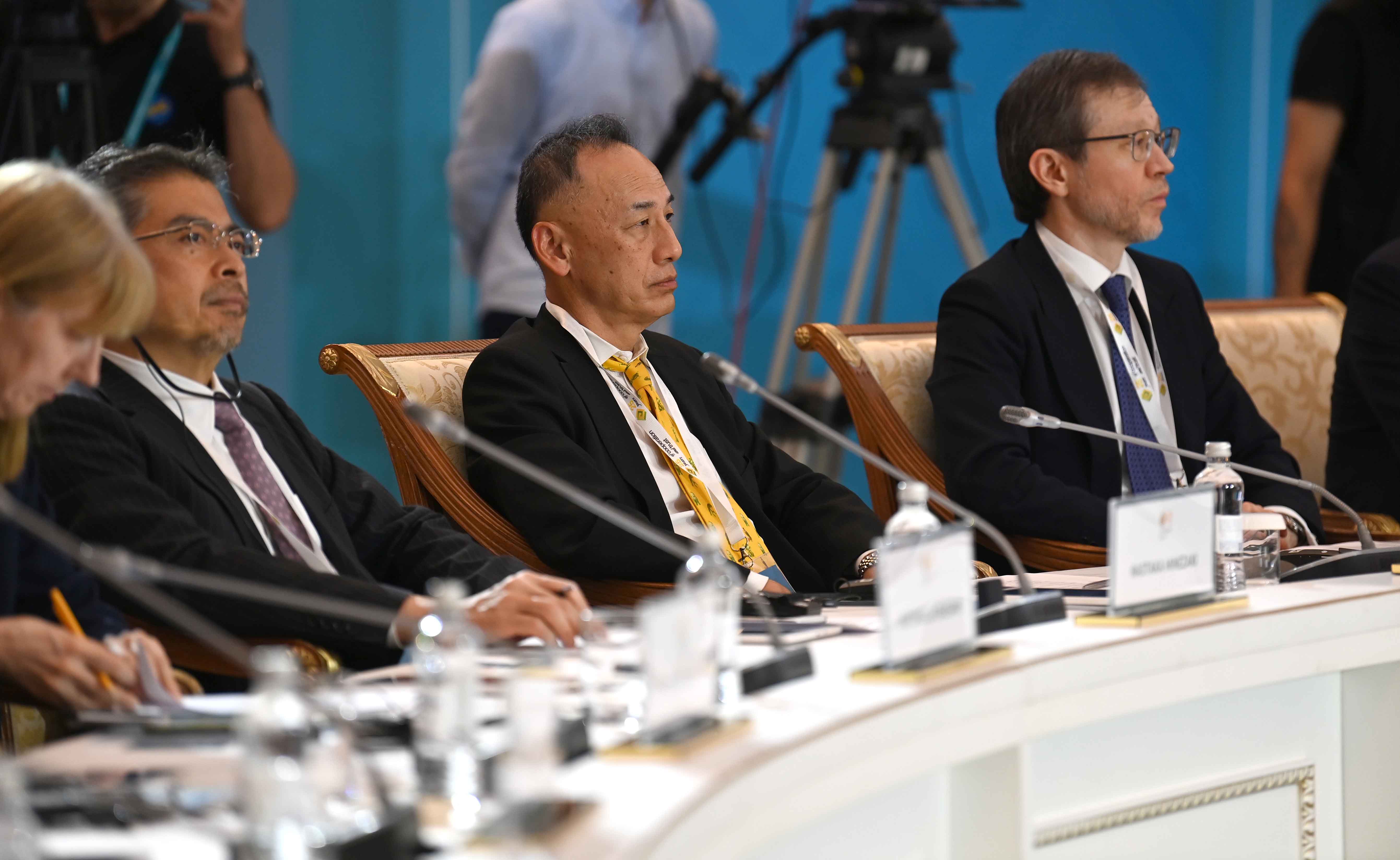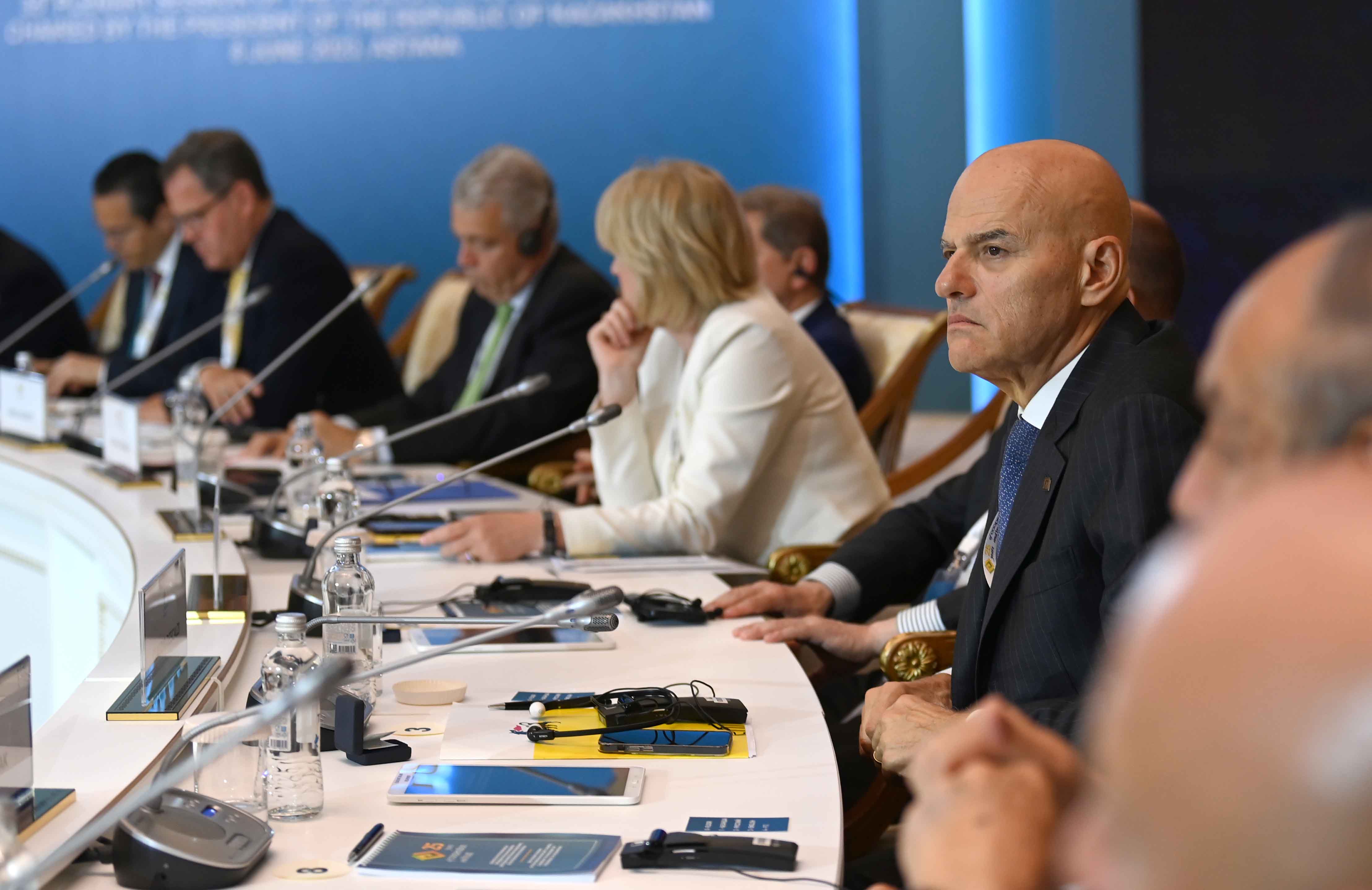 На заседании также выступили президент Европейского банка реконструкции и развития Одиль Рено-Бассо, заместитель Премьер-министра – министр иностранных дел Мурат Нуртлеу, министр цифрового развития, инноваций и аэрокосмической промышленности Багдат Мусин, председатель правления Ассоциации «Казахстанский совет иностранных инвесторов» Ерлан Досымбеков, президент Азиатского банка развития Масацугу Асакава, президент компании CNPC Хоу Цзицзюнь, главный исполнительный директор компании Shell plc Уаэл Сауан, исполнительный вице-президент корпорации Chevron Найджел Хирн, президент по СНГ и Центральной Азии Philip Morris International Марко Мариотти, главный исполнительный директор компании «ЛУКОЙЛ» Вадим Воробьев, управляющий партнер компании Ernst&Young по региону Европы, Ближнего Востока и Африки Джули Линн Тигланд, главный исполнительный директор Air Liquide Франсуа Жаков, председатель и главный исполнительный директор Baker Hughes Лоренцо Симонелли, генеральный директор подразделения Microsoft по Центральной и Восточной Европе Мишель Симмонс, президент и главный исполнительный директор Wabtec Corporation Рафаэль Сантана.