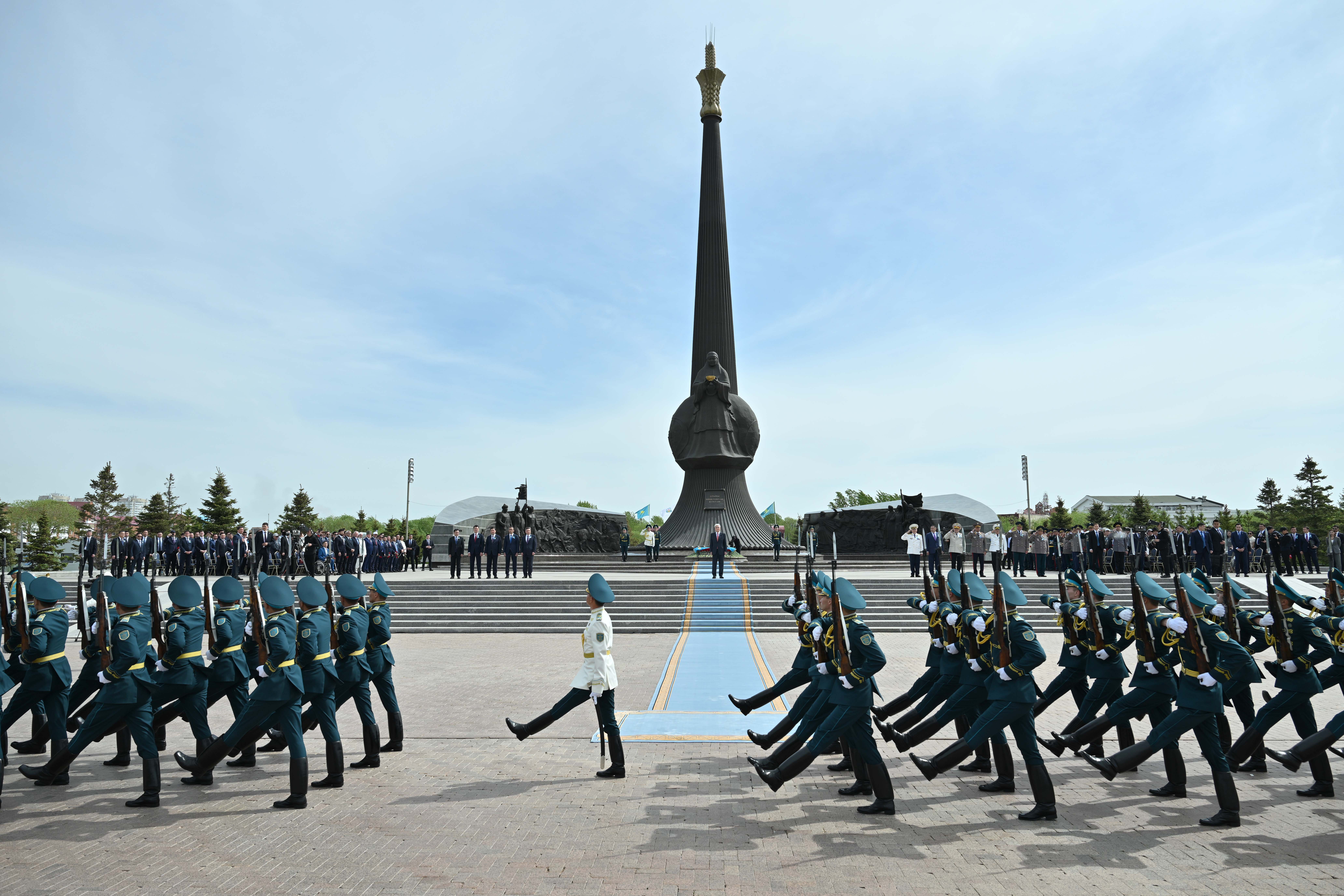Глава государства возложил цветы к столичному монументу «Отан Ана» по случаю 80-летия Великой Победы и почтил минутой молчания память воинов-казахстанцев.