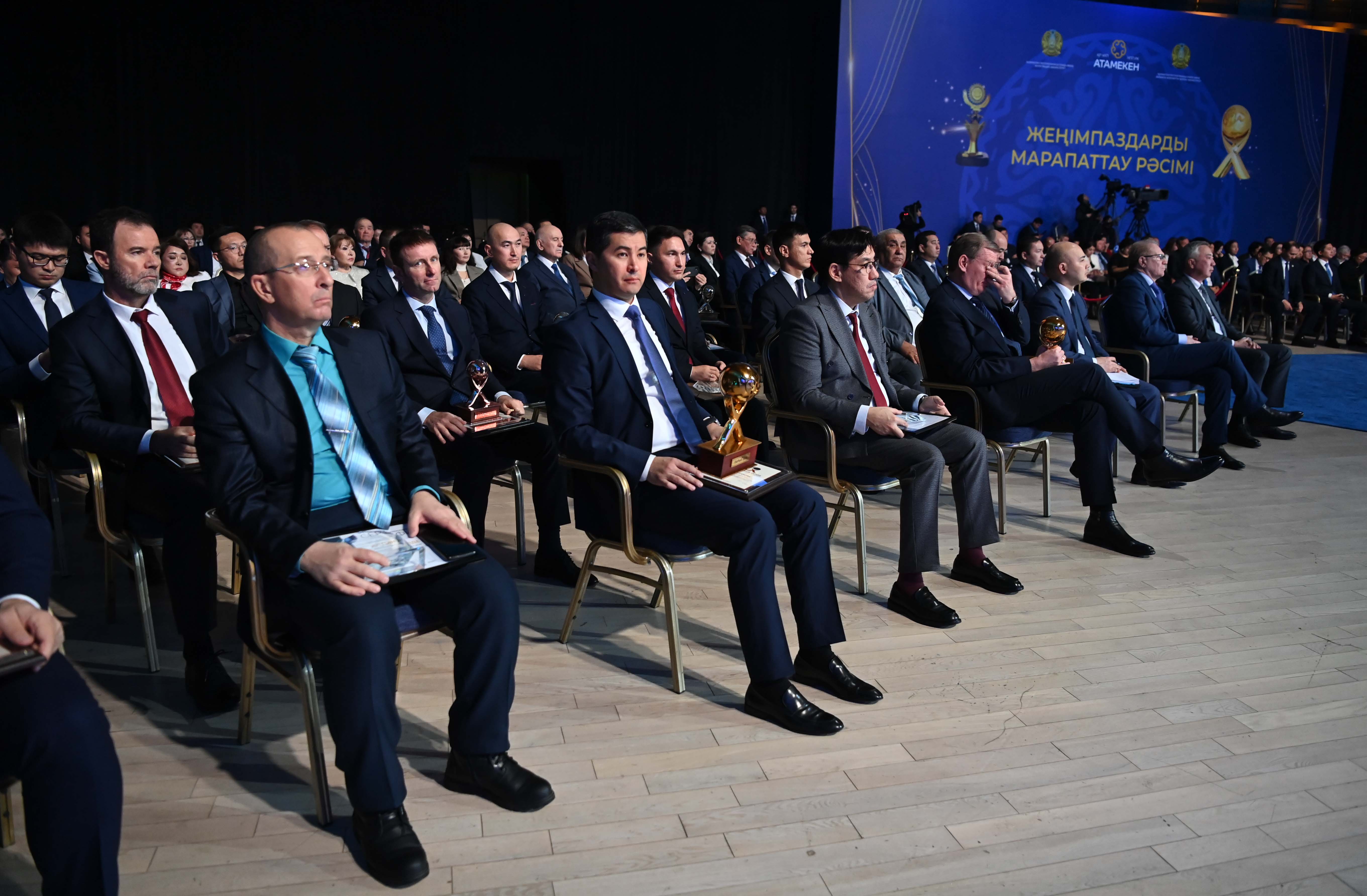 Глава государства поздравил участников торжественной церемонии награждения победителей конкурсов «Алтын сапа», «Парыз» и «Лучший товар Казахстана» – предпринимателей, внесших особый вклад в развитие страны.