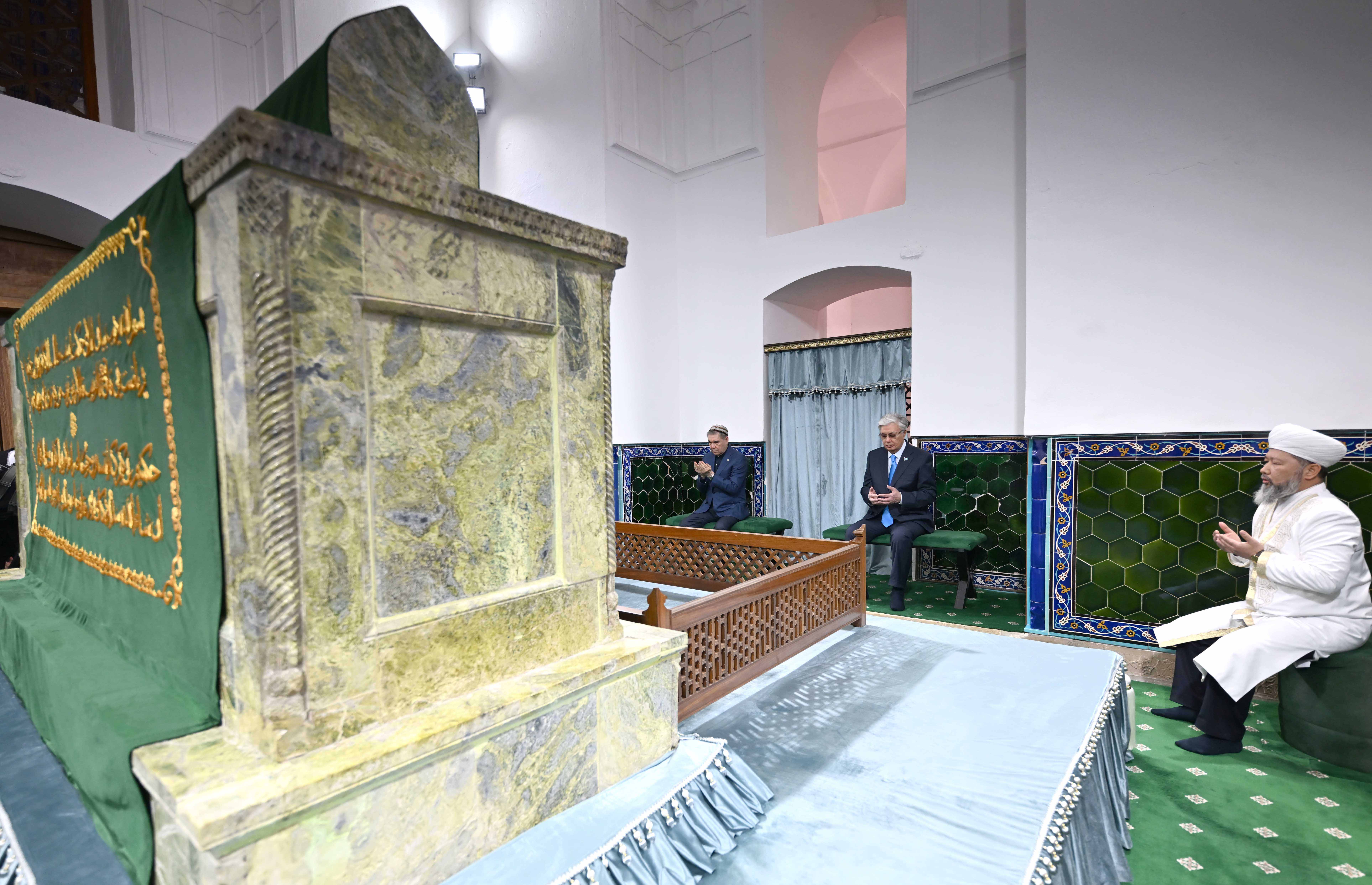 Касым-Жомарт Токаев и Гурбангулы Бердымухамедов посетили одну из величайших духовных и историко-культурных святынь тюркского мира – мавзолей Ходжи Ахмеда Яссауи, внесенный в список Всемирного наследия ЮНЕСКО.