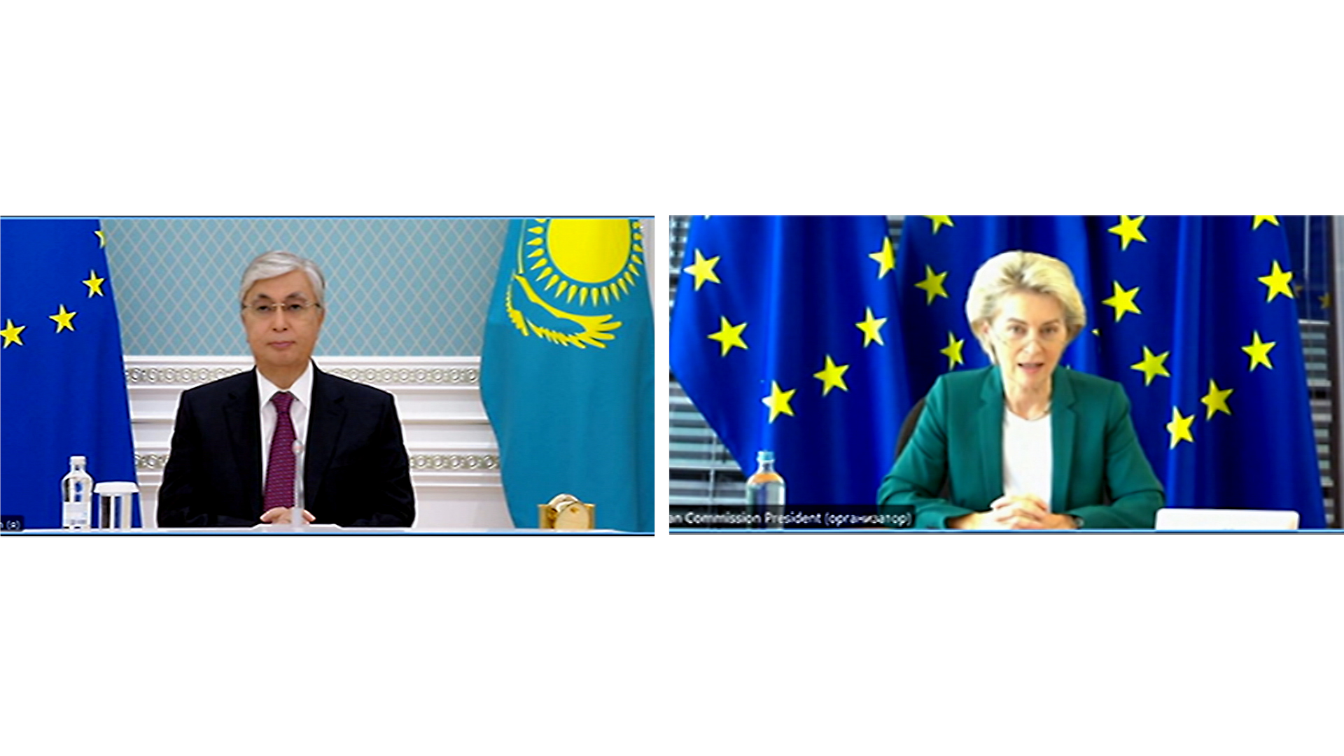Глава государства Касым-Жомарт Токаев в формате видеоконференции провел встречу с Президентом Европейской комиссии Урсулой фон дер Ляйен.